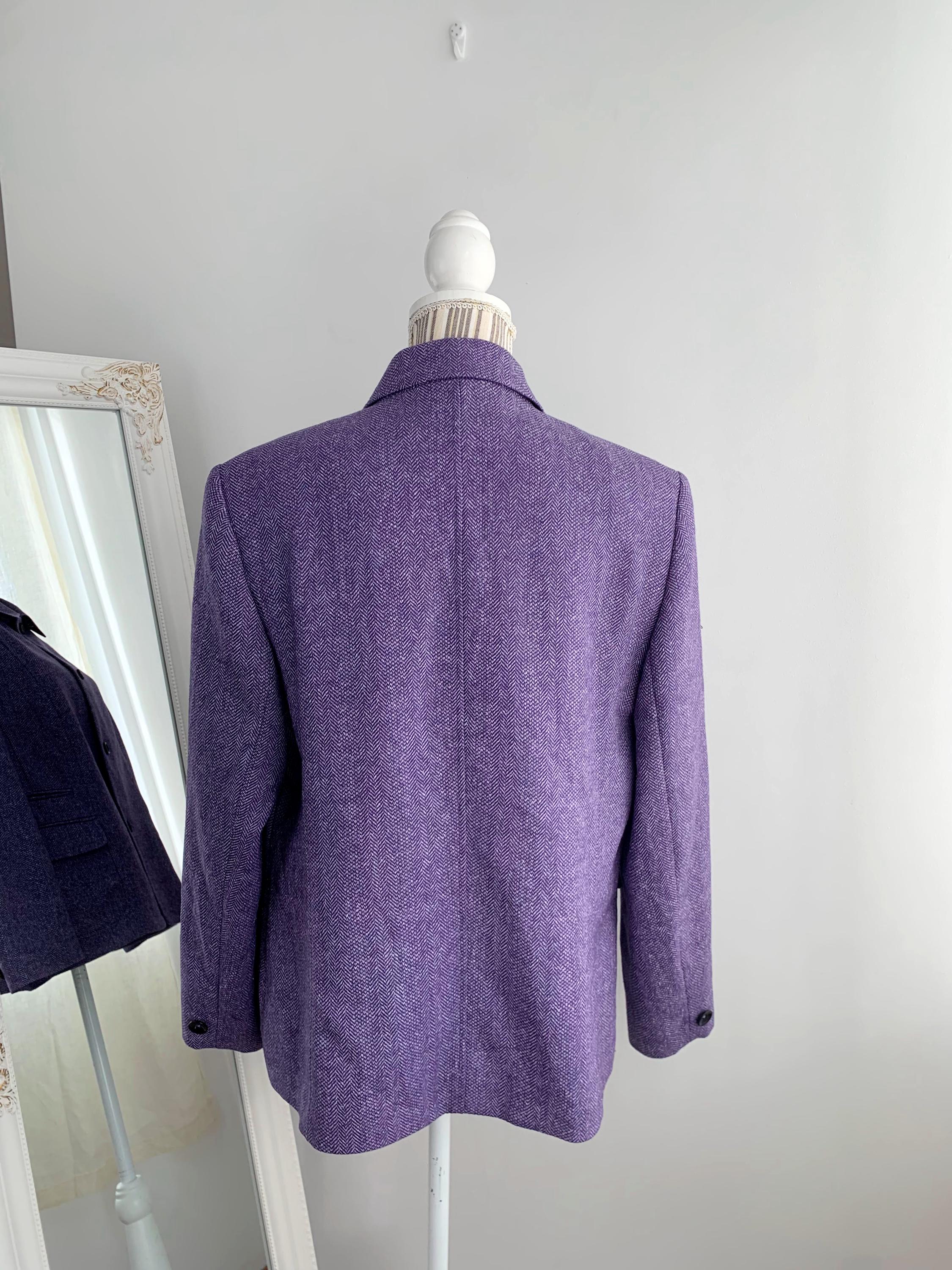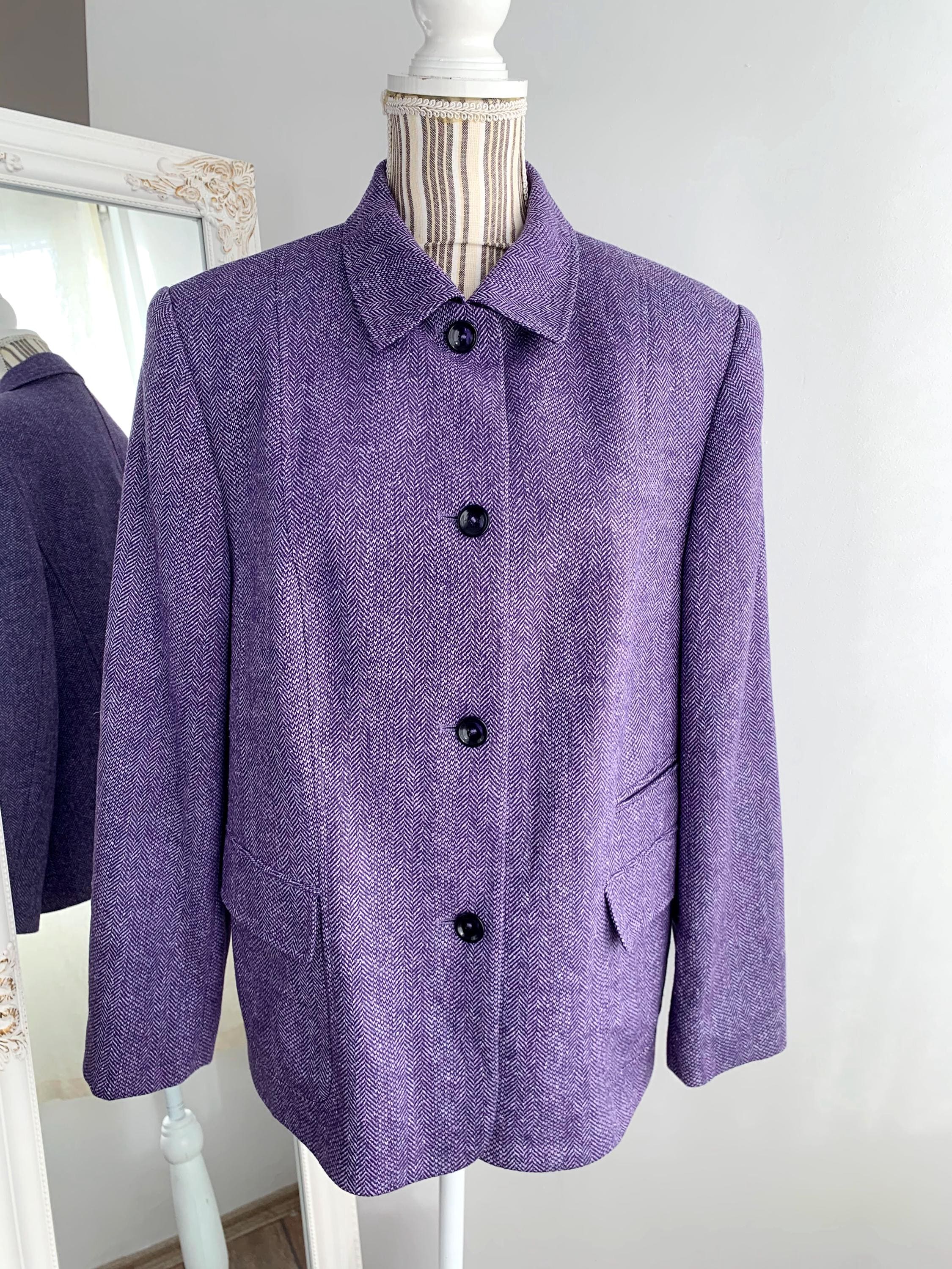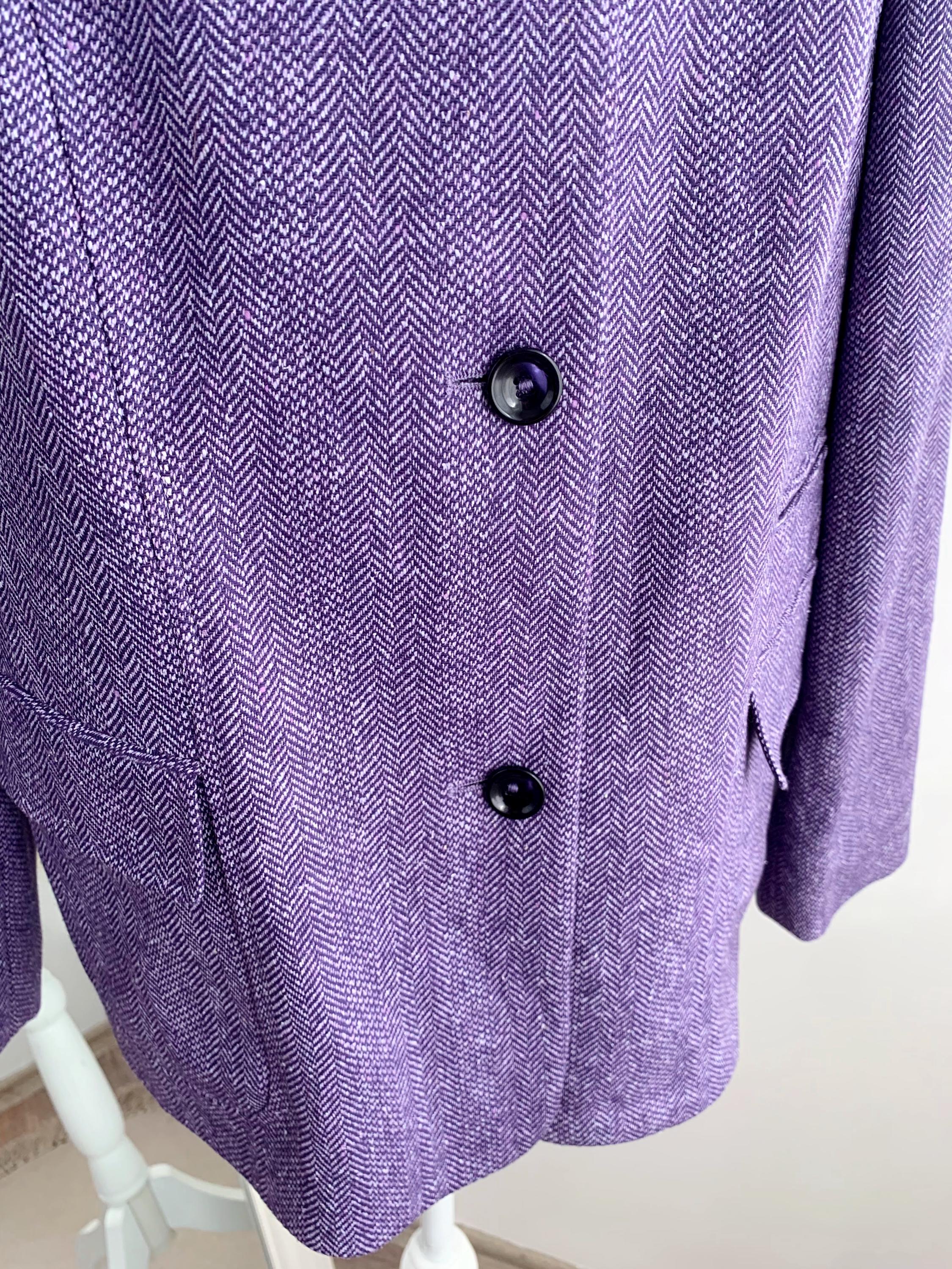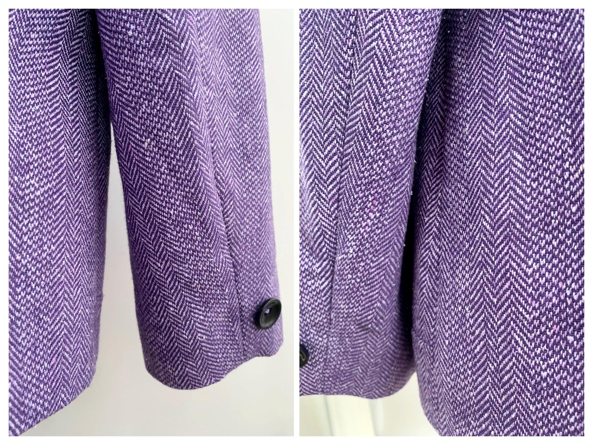 This is s beautiful vintage 90s MARCONA wool and silk blend purple tweed herringbone blazer for women size L. This tweed blazer coat has button front closure and two pockets. This tweed blazer jacket is made of high quality tweed fabric made of 78% wool, 21% silk and 1% elastane. This purple herringbone blazer is perfect for the fall spring season. This relaxed fit blazer coat fits like size L/ XL. Please check the measurements below.