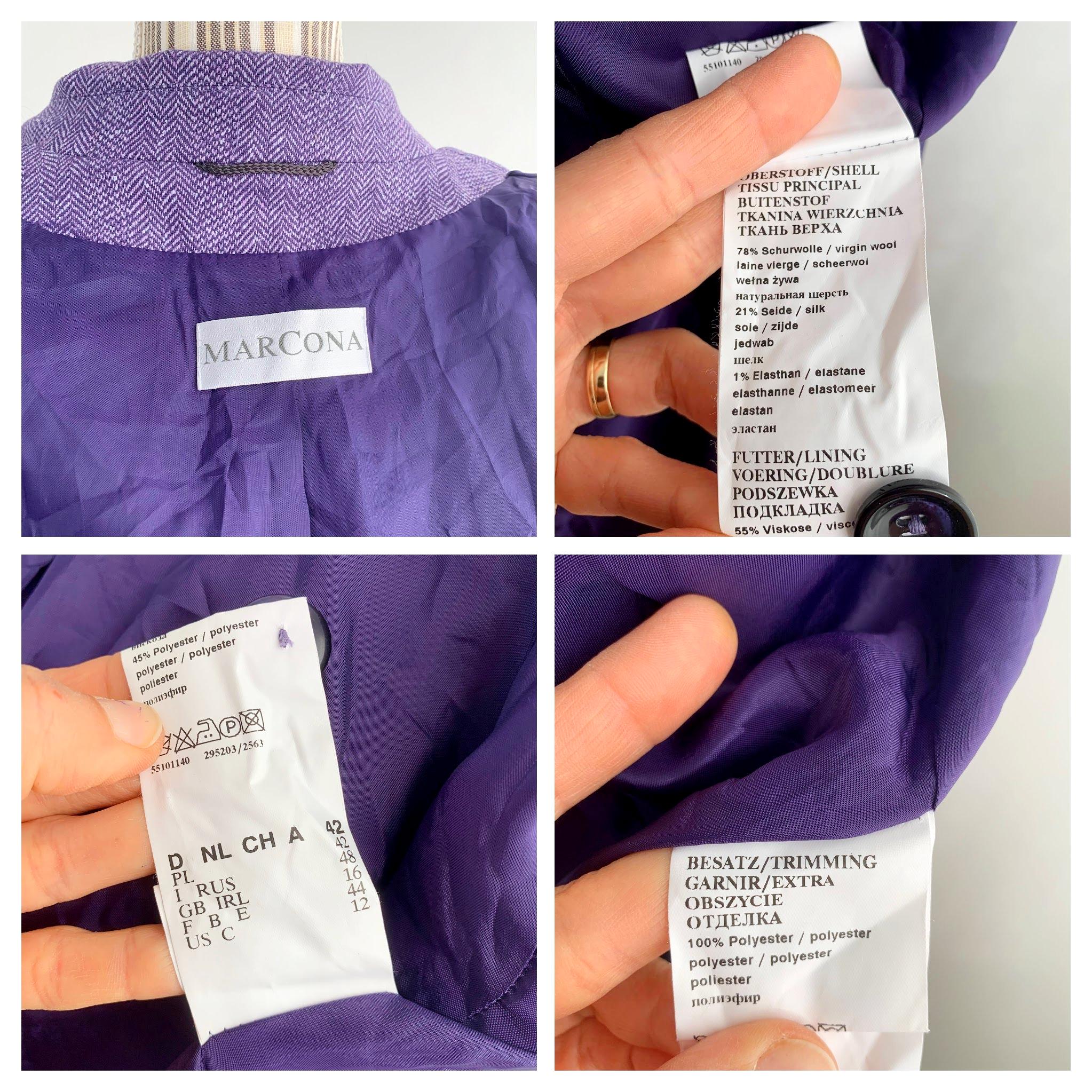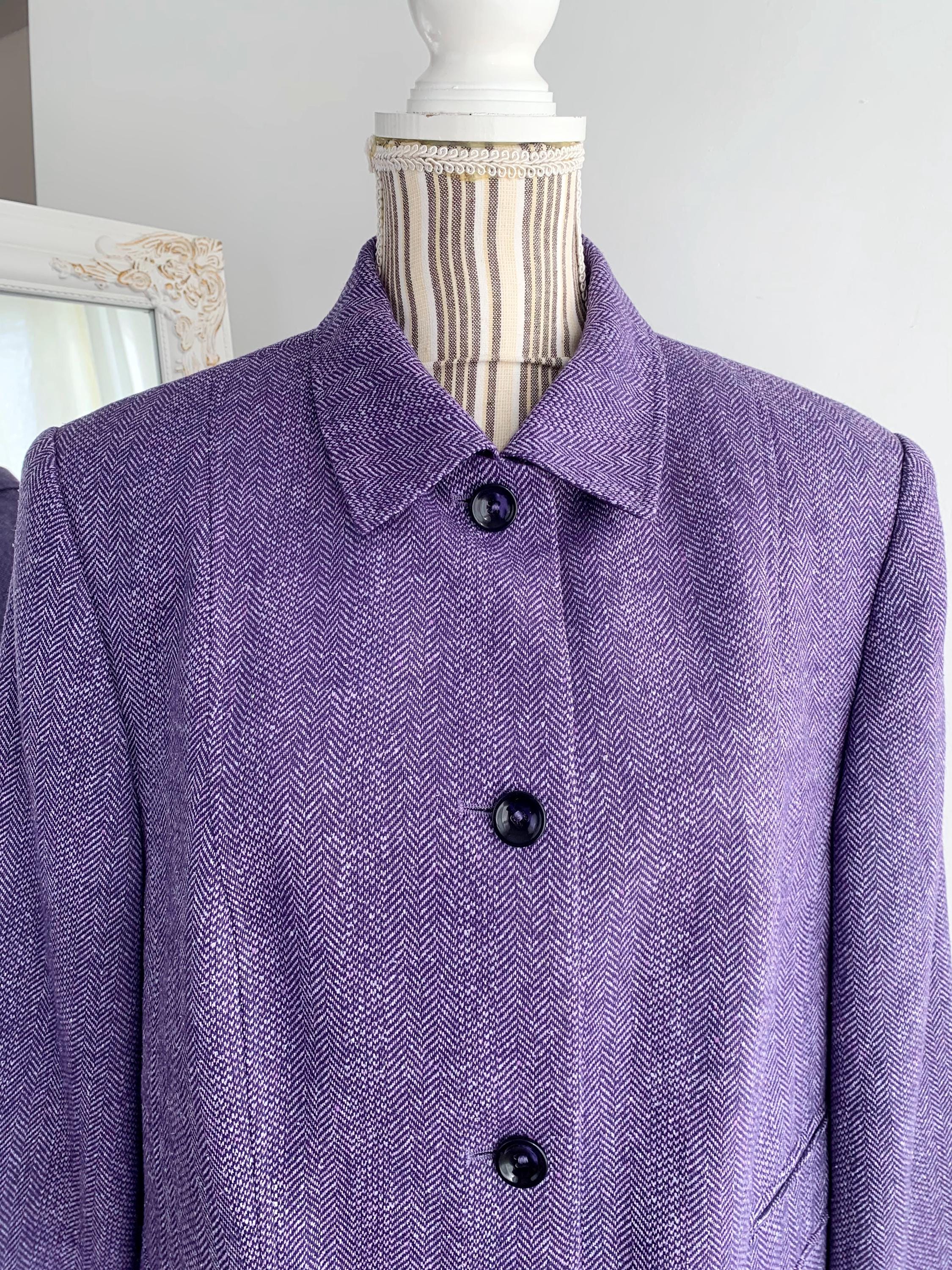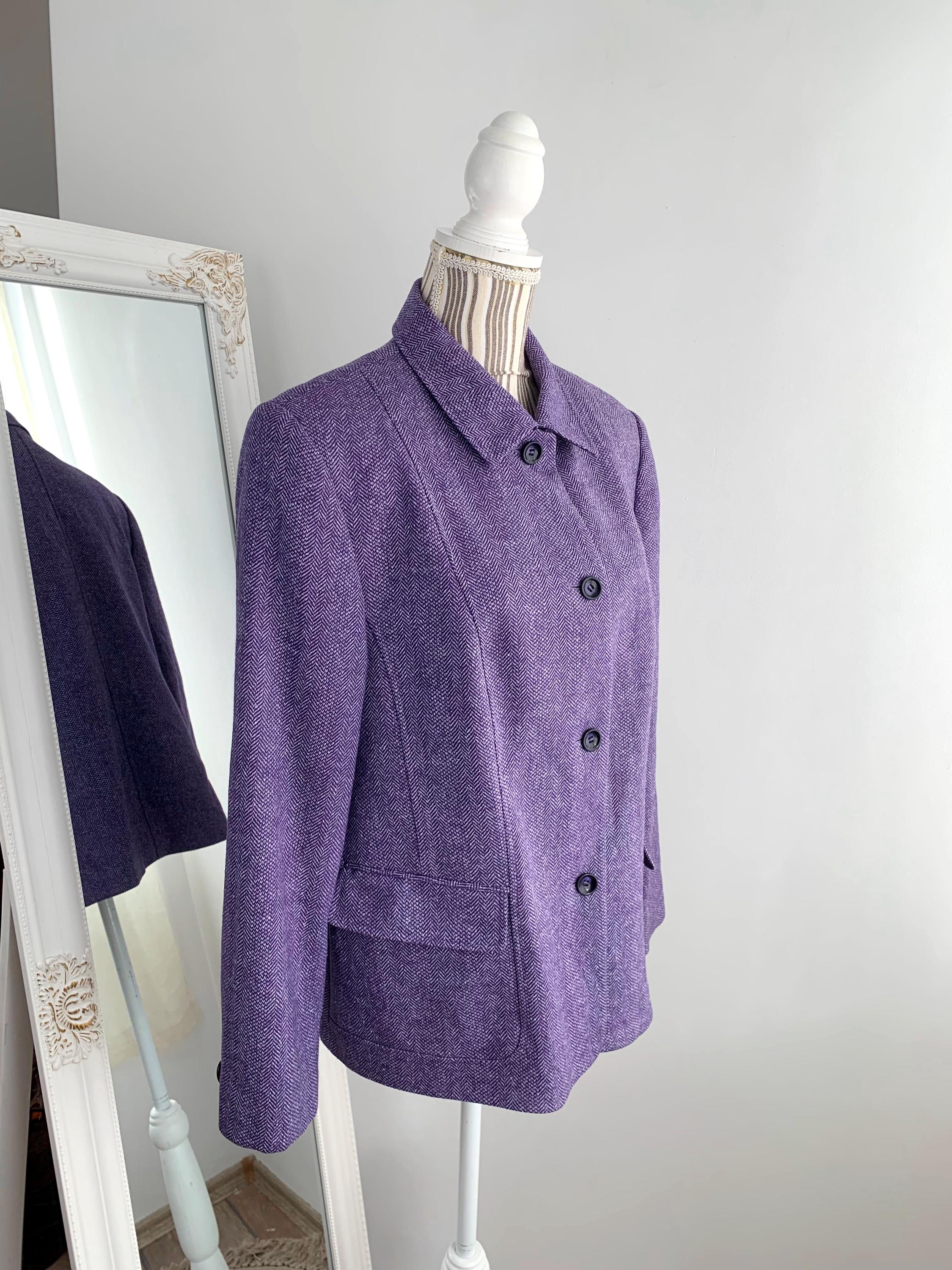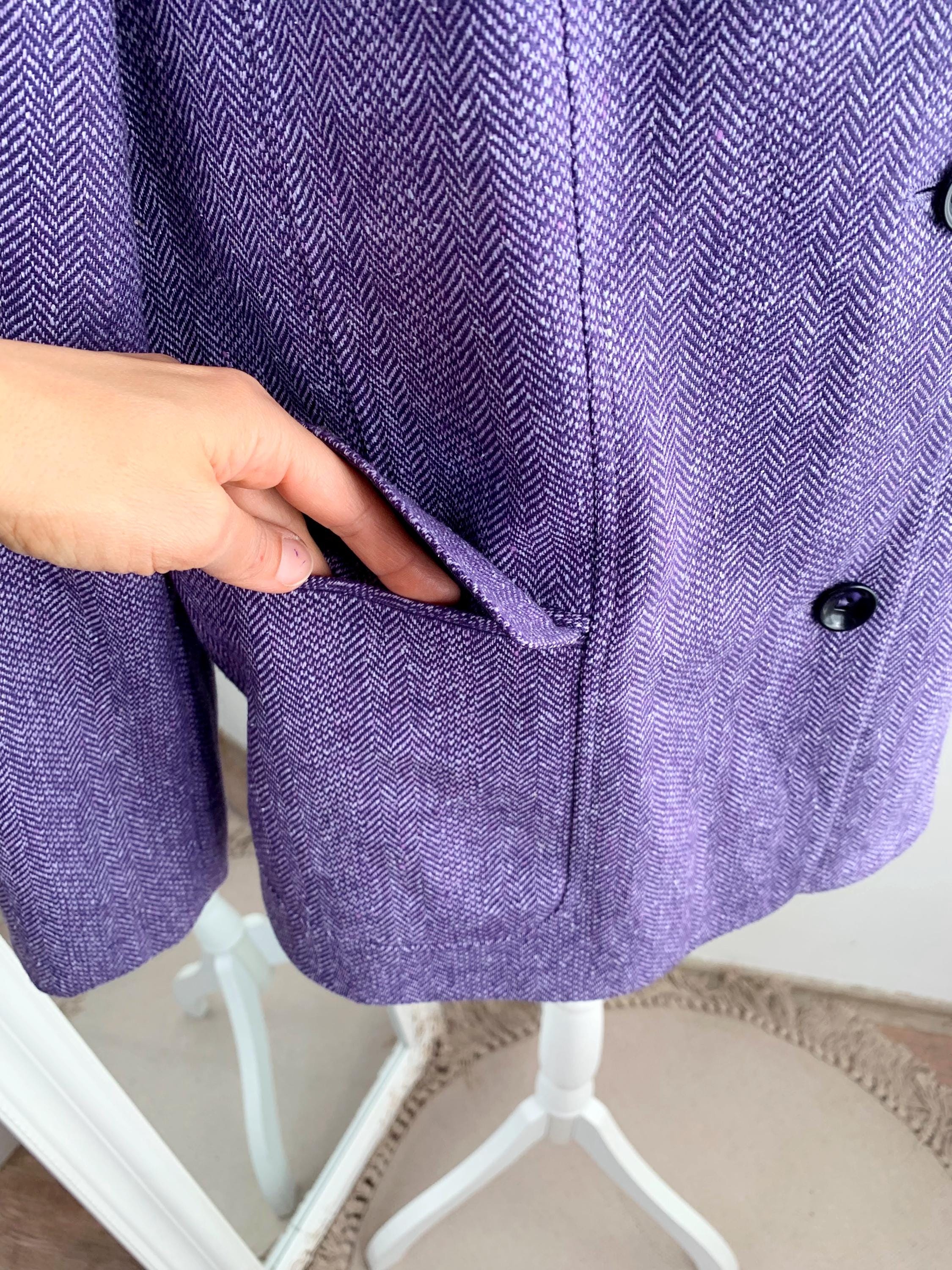 This is s beautiful vintage 90s MARCONA wool and silk blend purple tweed herringbone blazer for women size L. This tweed blazer coat has button front closure and two pockets. This tweed blazer jacket is made of high quality tweed fabric made of 78% wool, 21% silk and 1% elastane. This purple herringbone blazer is perfect for the fall spring season. This relaxed fit blazer coat fits like size L/ XL. Please check the measurements below.