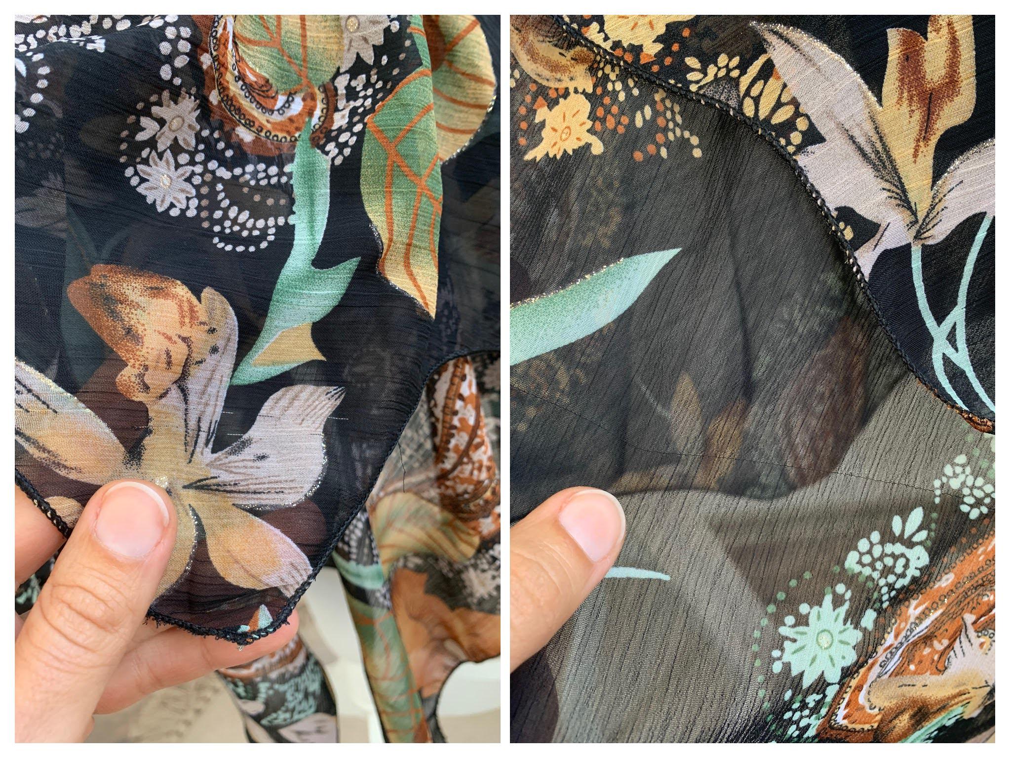 Material: feels like viscose or polyester (the label with the materials has been cut off)