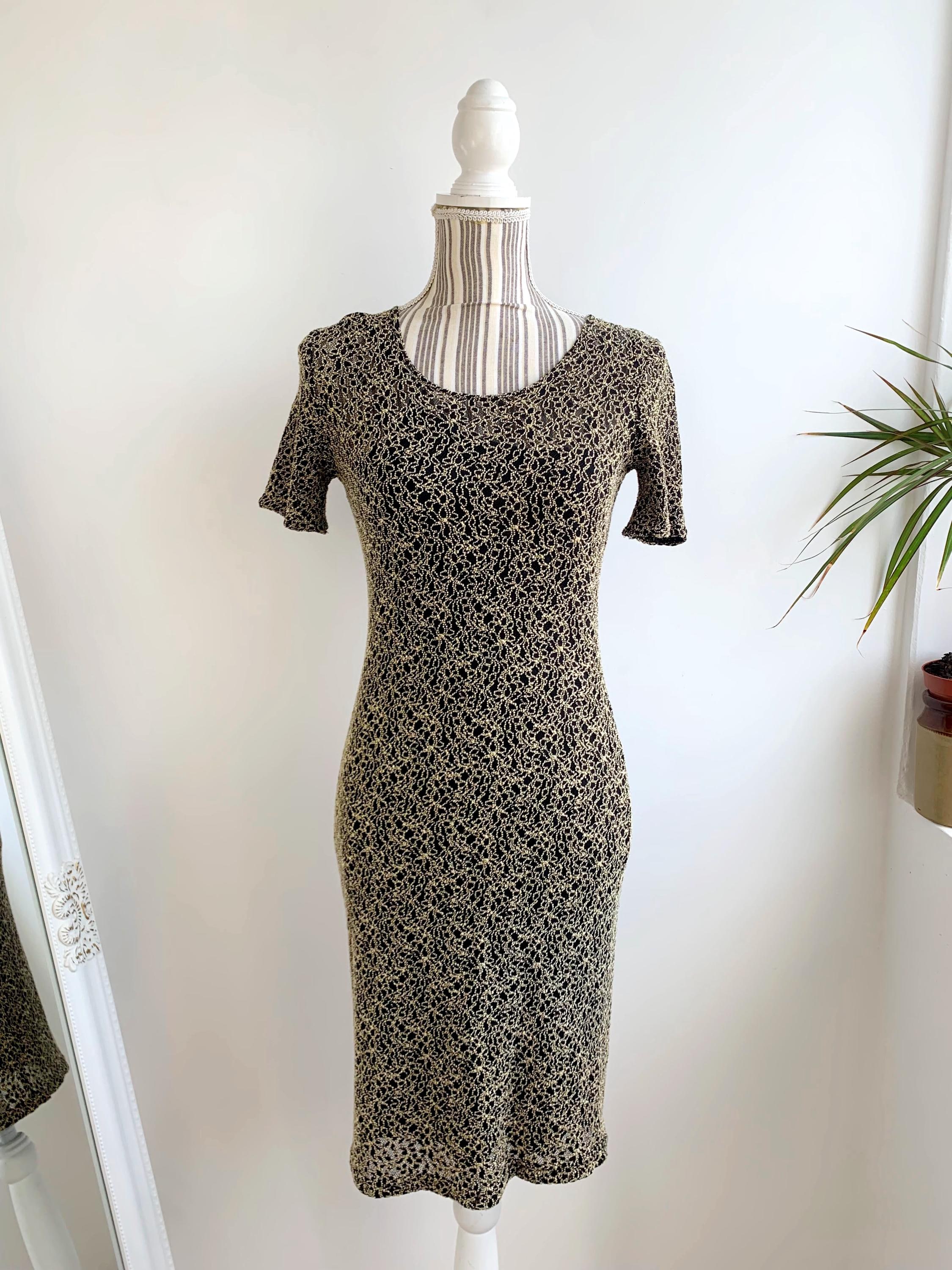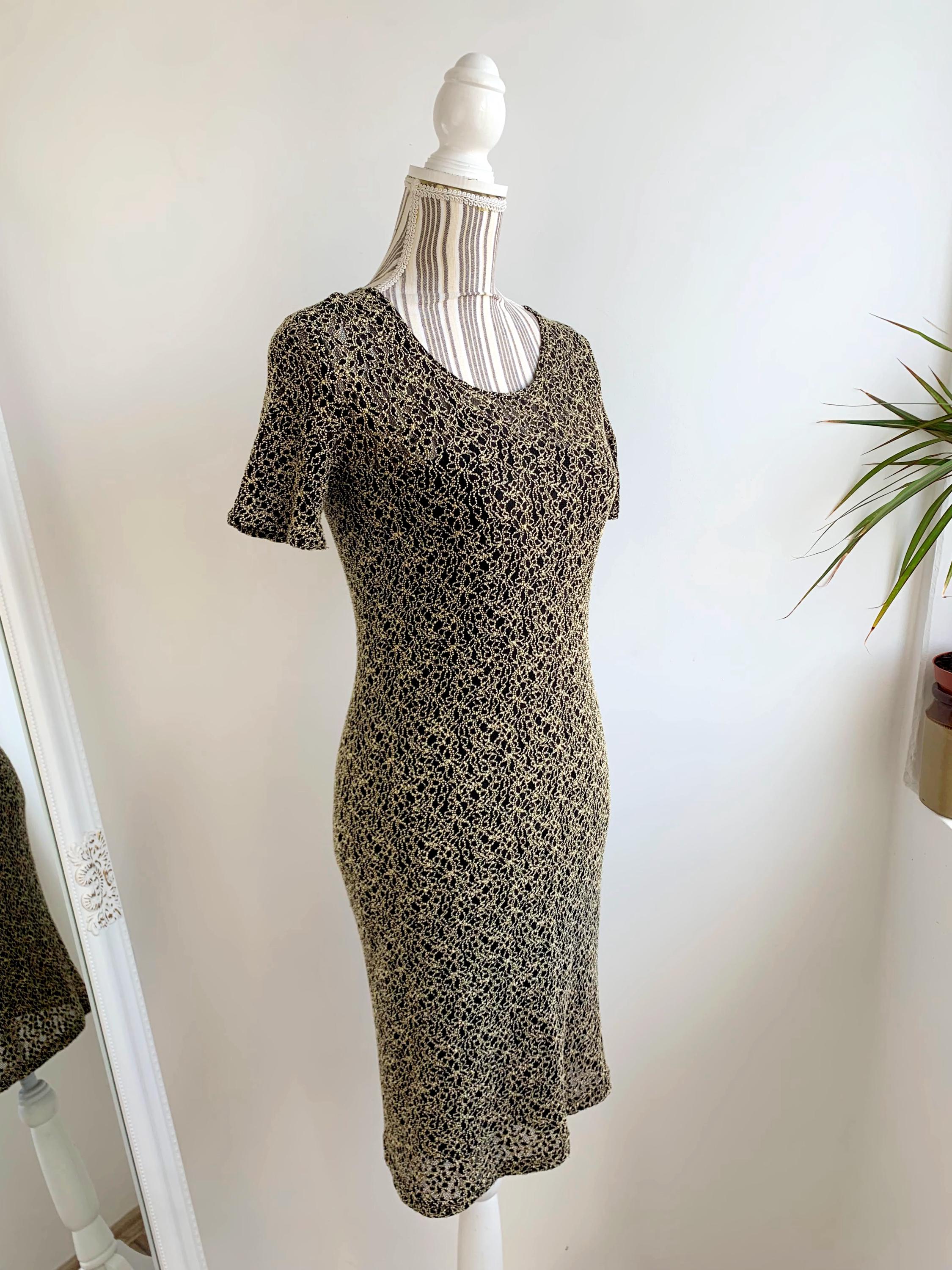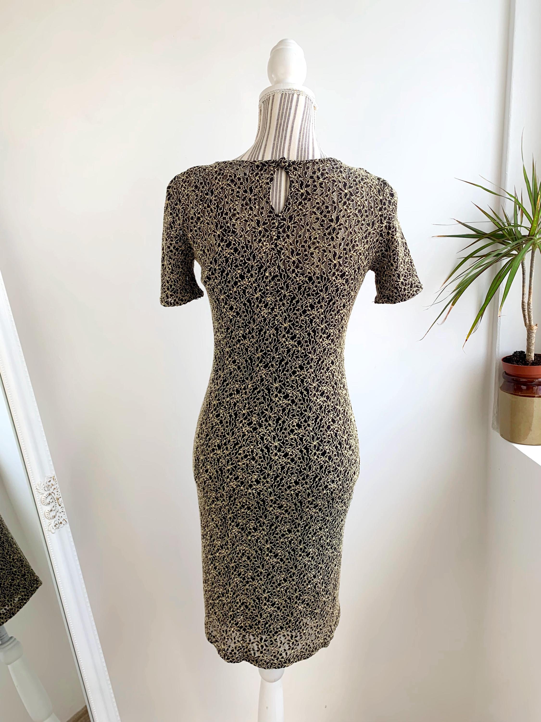 This is a beautiful vintage 90s Y2K black and beige lace dress made of stretchy lacy fabric with floral pattern. This slim fit sexy black mini dress has back button closure. The size marked is 38, fits like S/M.