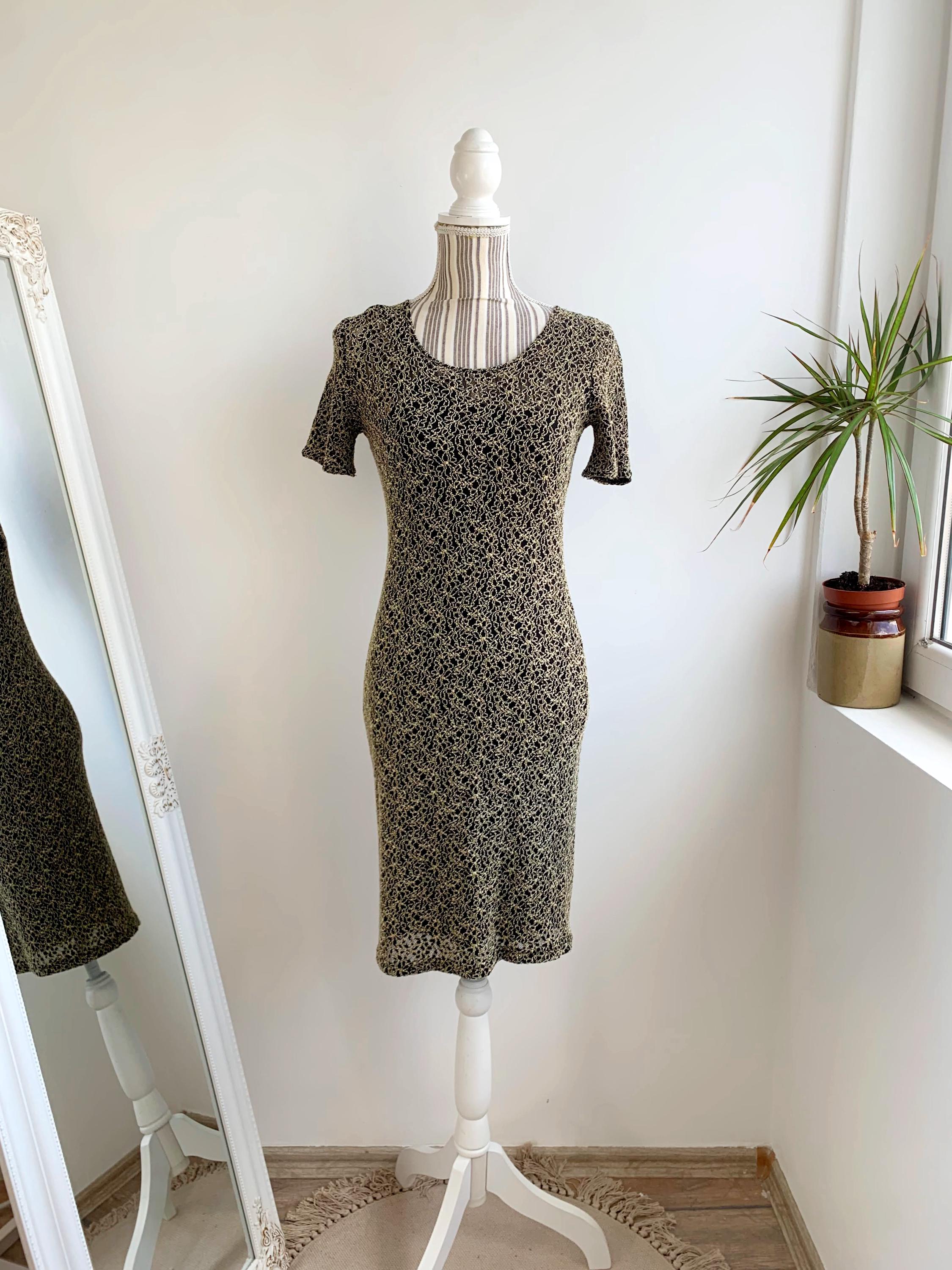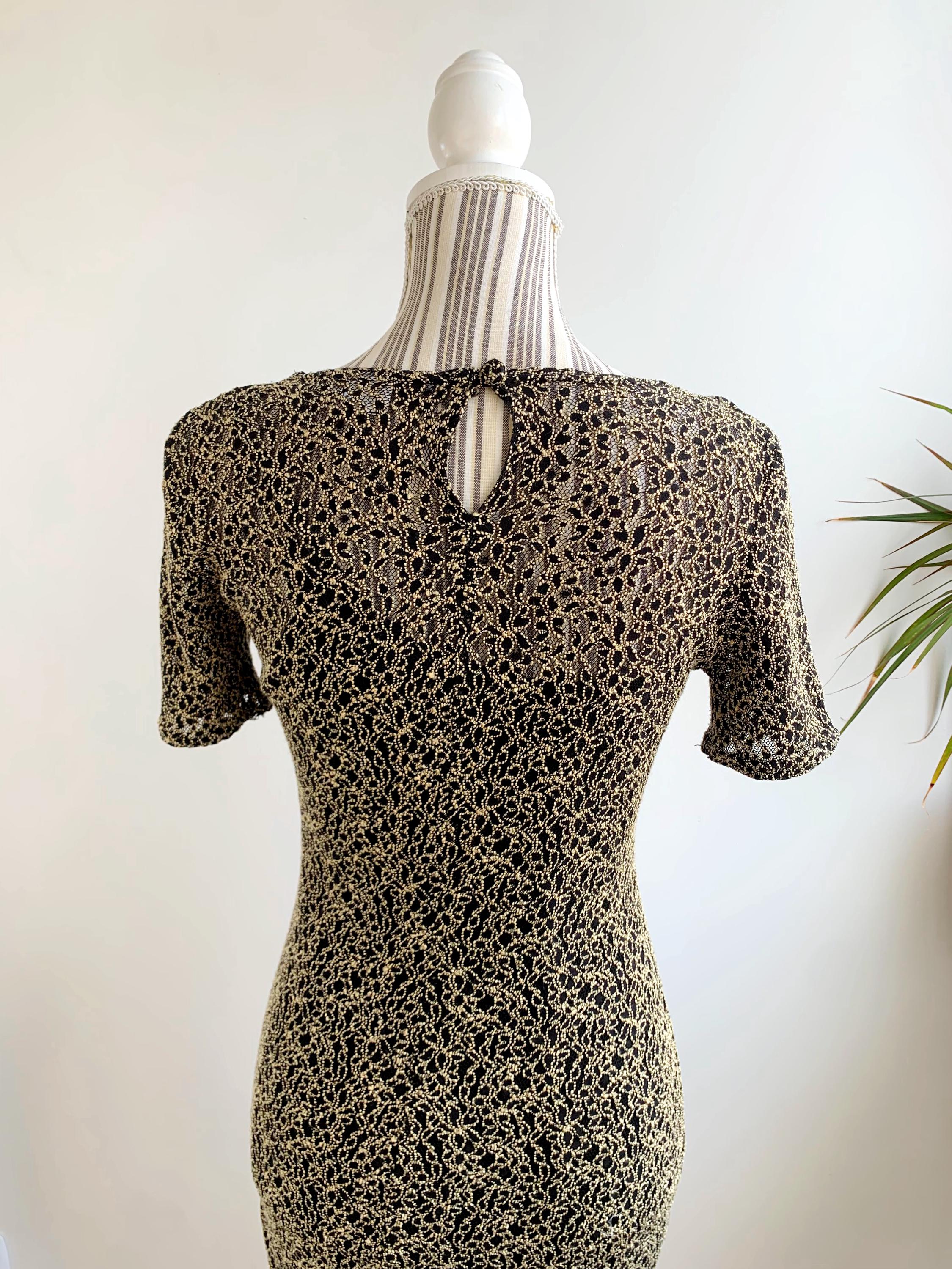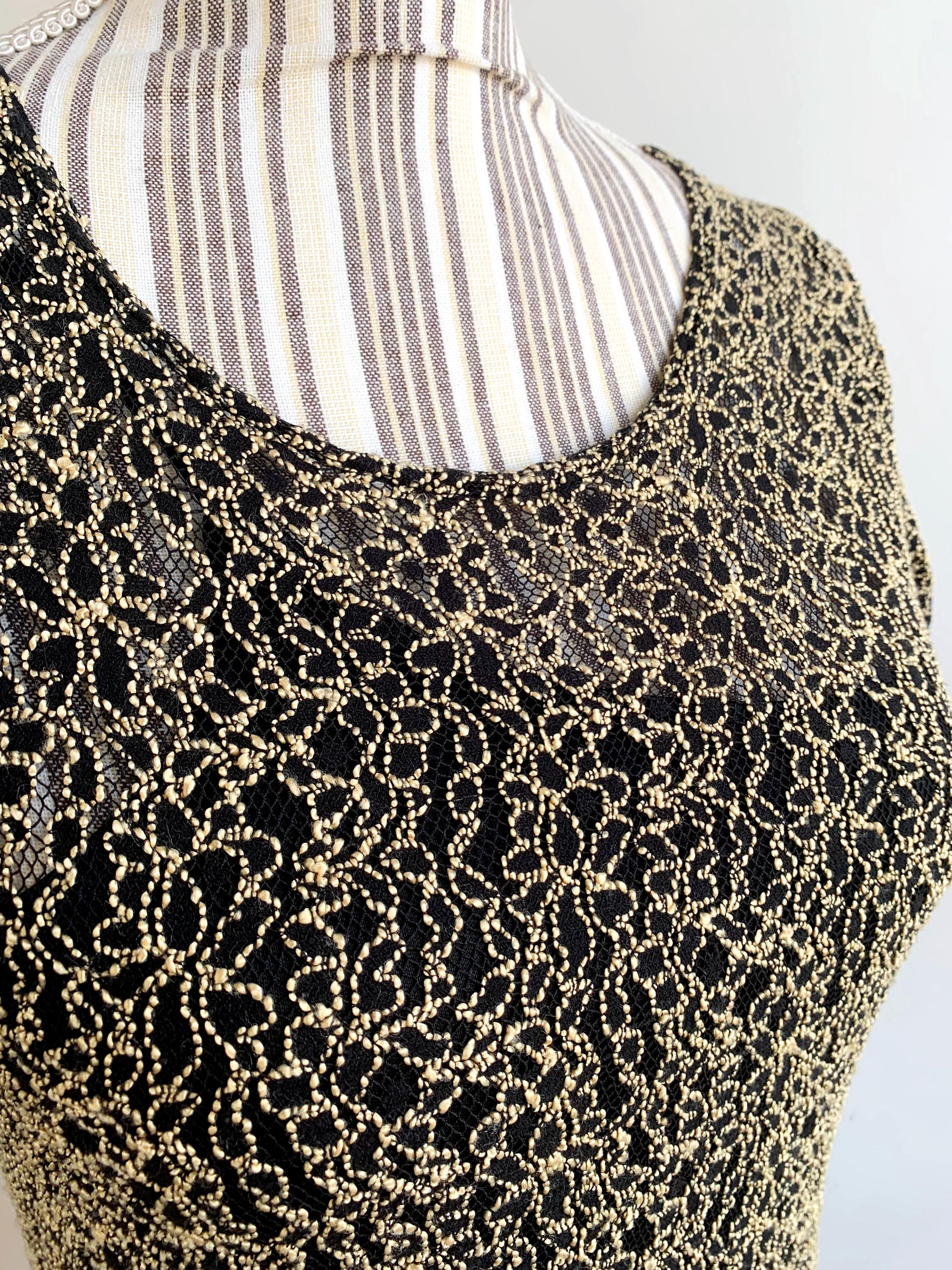 This is a beautiful vintage 90s Y2K black and beige lace dress made of stretchy lacy fabric with floral pattern. This slim fit sexy black mini dress has back button closure. The size marked is 38, fits like S/M.