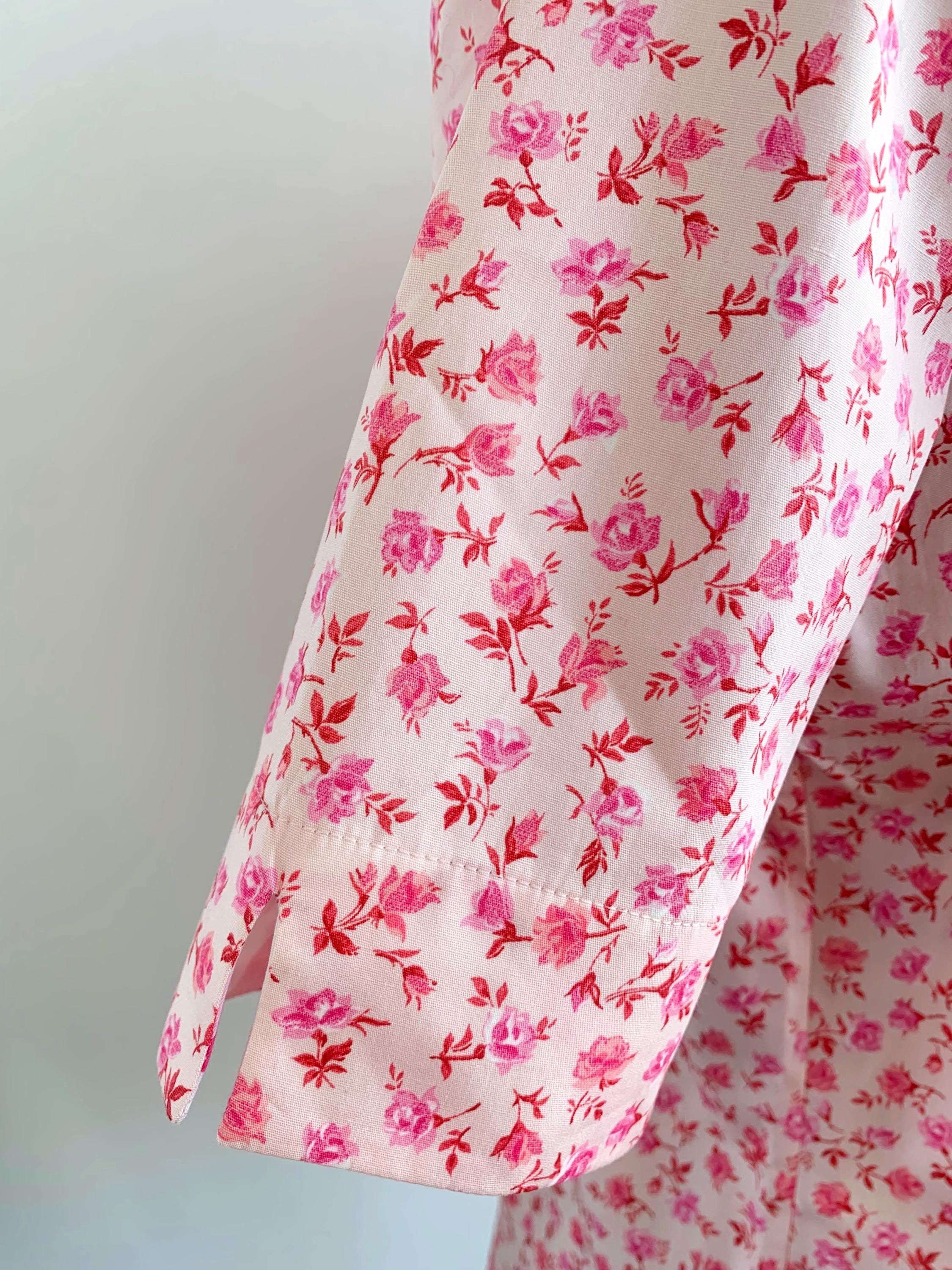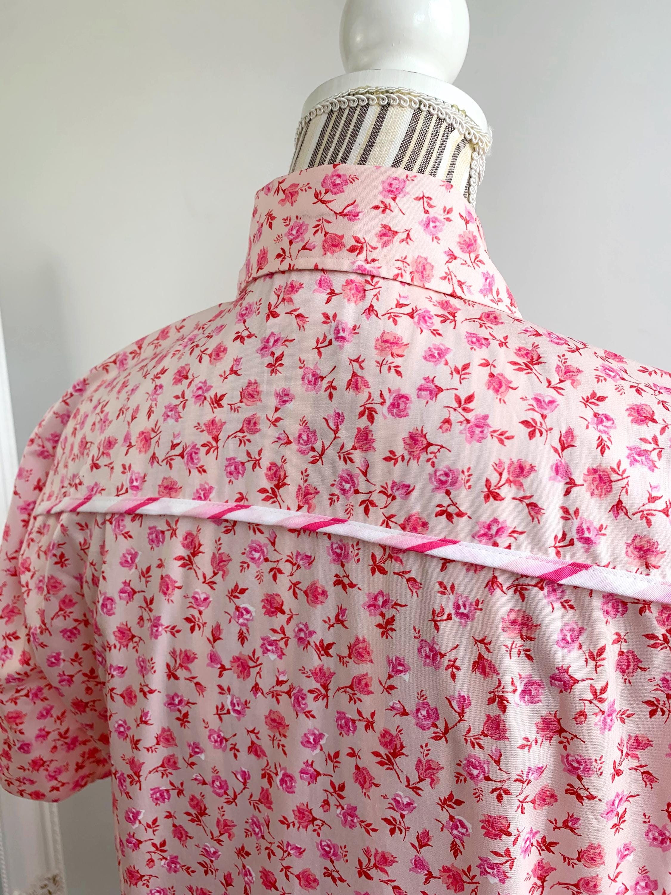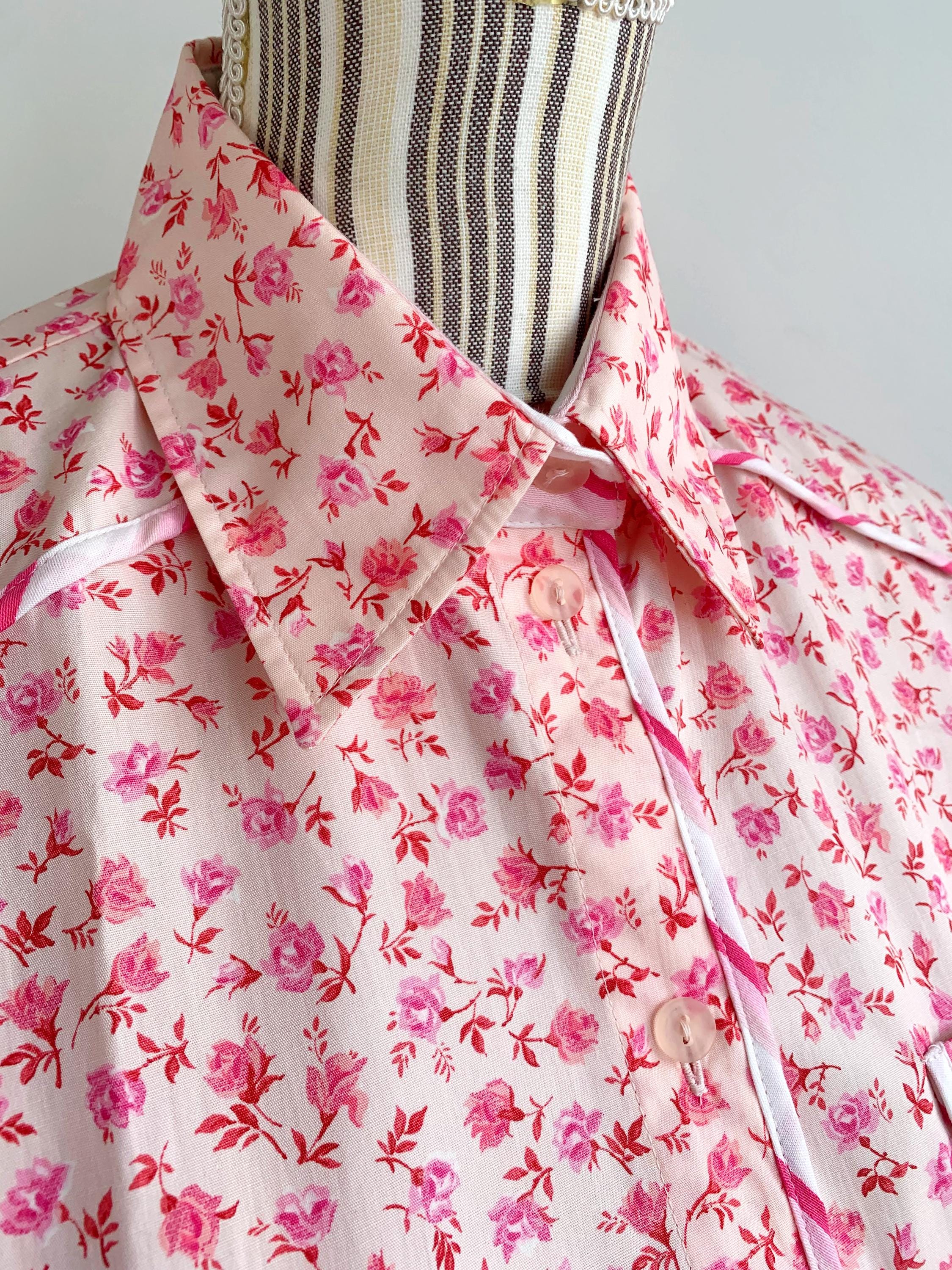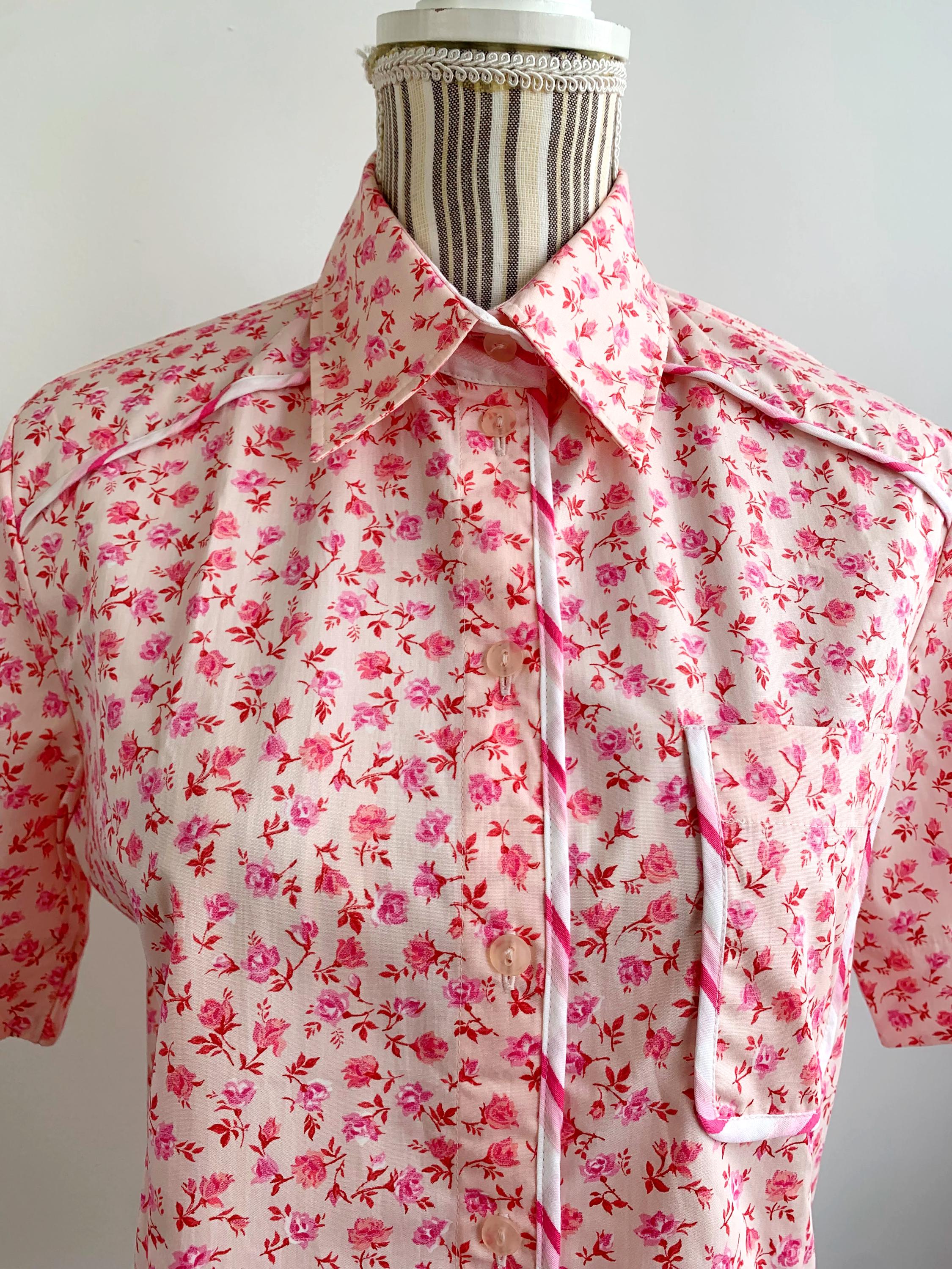 This is a vintage 90s short sleeve ditsy floral pink cotton shirt for women with button front closure and collar size M. This pure cotton floral shirt is made of 100% cotton fabric in pink. This summer cotton shirt has a casual minimalist design and vibrant 90s print. This cotton tartan shirt is size 38, which fits like size M, please check the measurements below.
