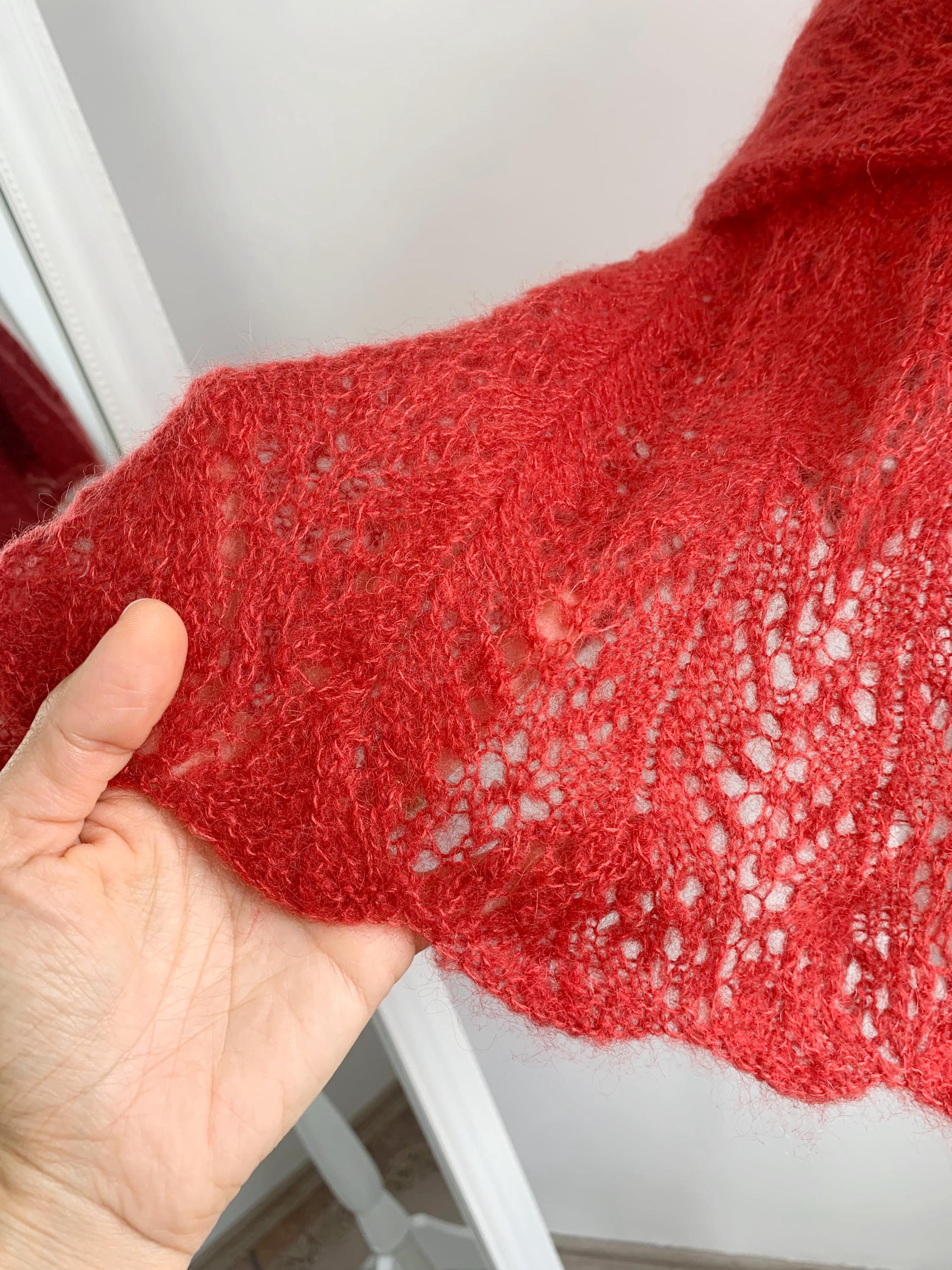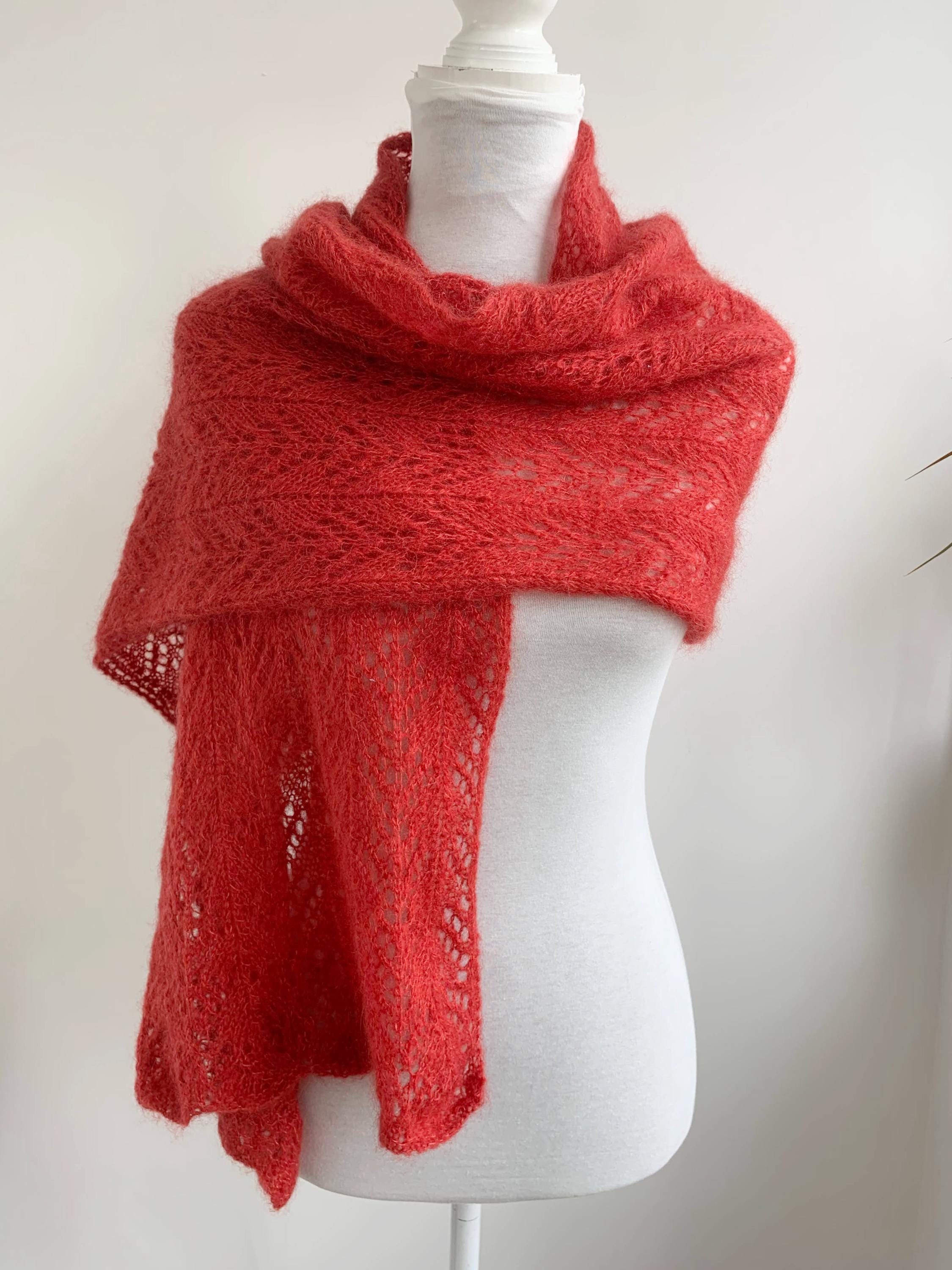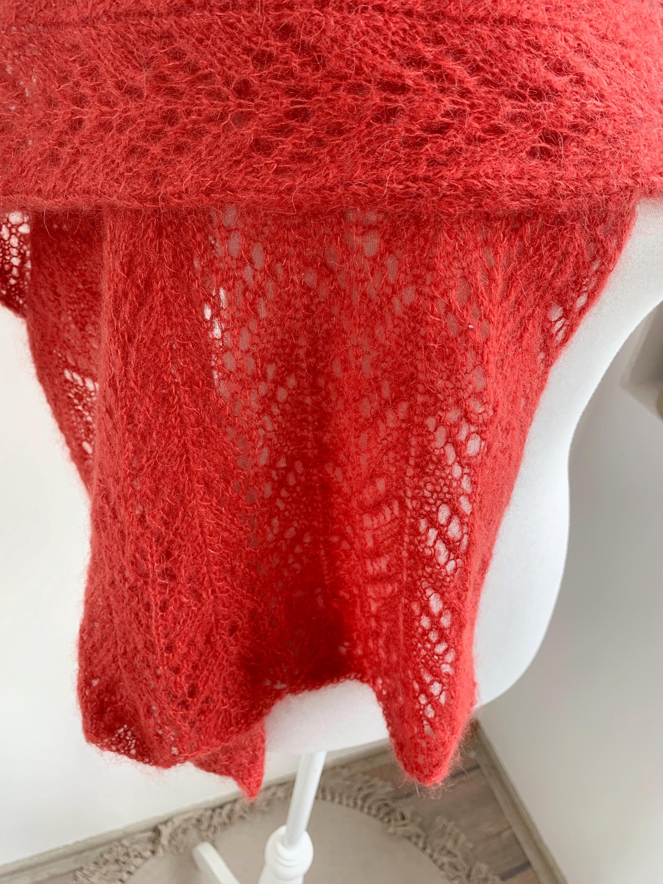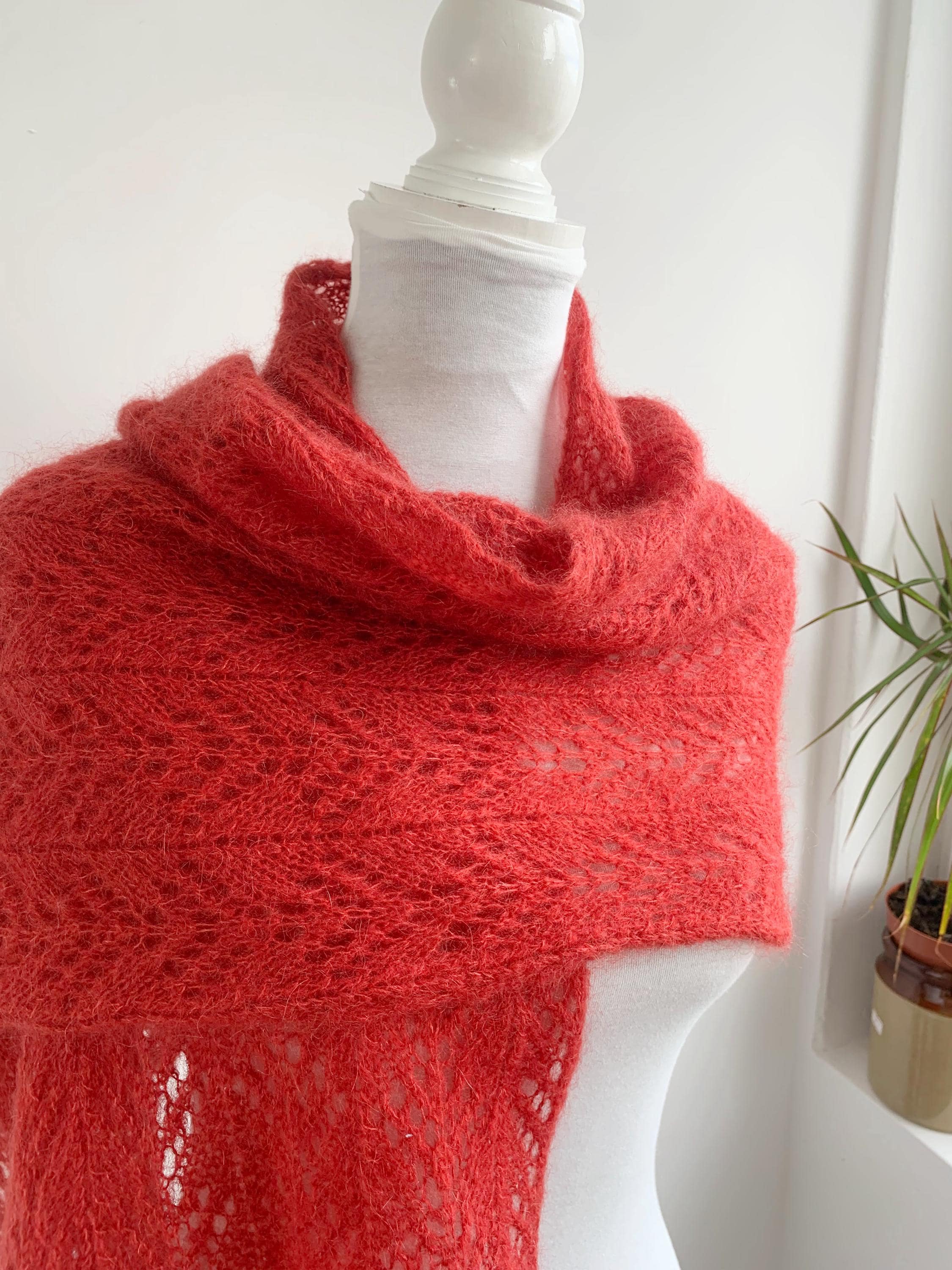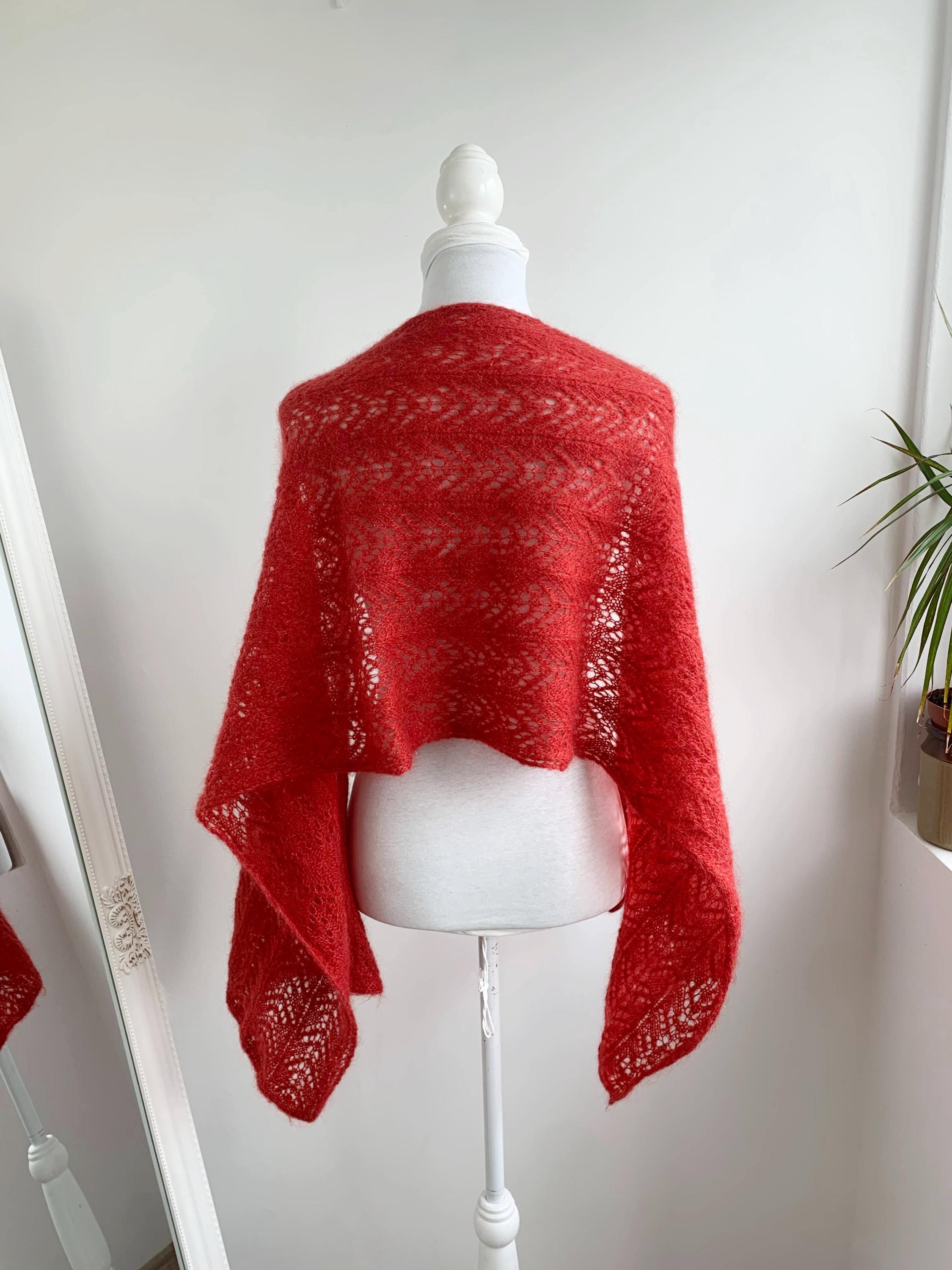 This is a beautiful vintage soft mohair wool knited lace shawl in dark coral color. This fluffy lace shawl is made of soft warm yarn iwhich feels like mohair acrylic wool blend. This bohemian shawl has lovely scalloped edges. This boho chic shawl will keep you warm in the spring, autumn and winter season while you keep looking stylish. This women lace knitted shawl is perfect for the colder days. Perfect gift for your sister, mother or grandmother.