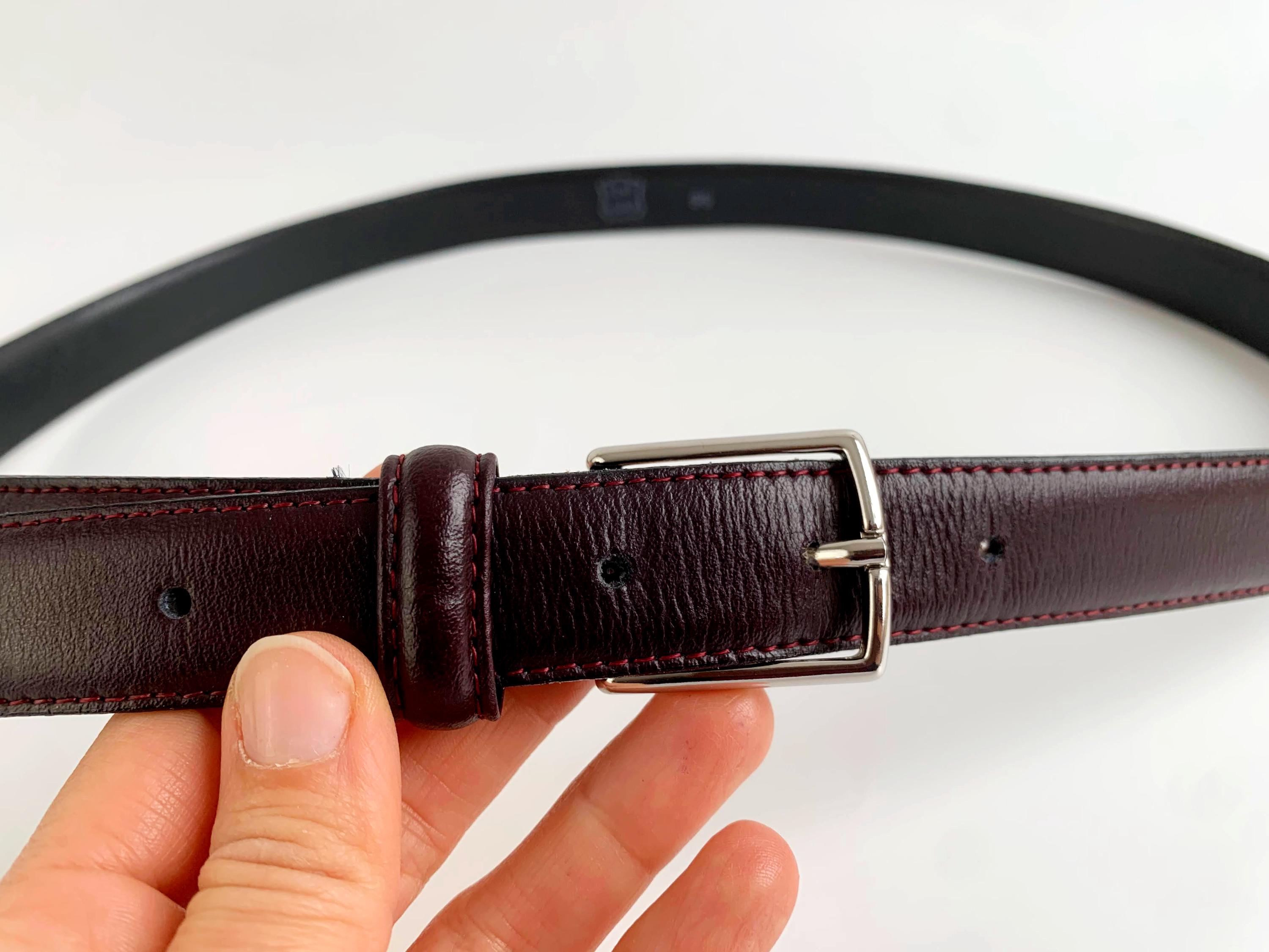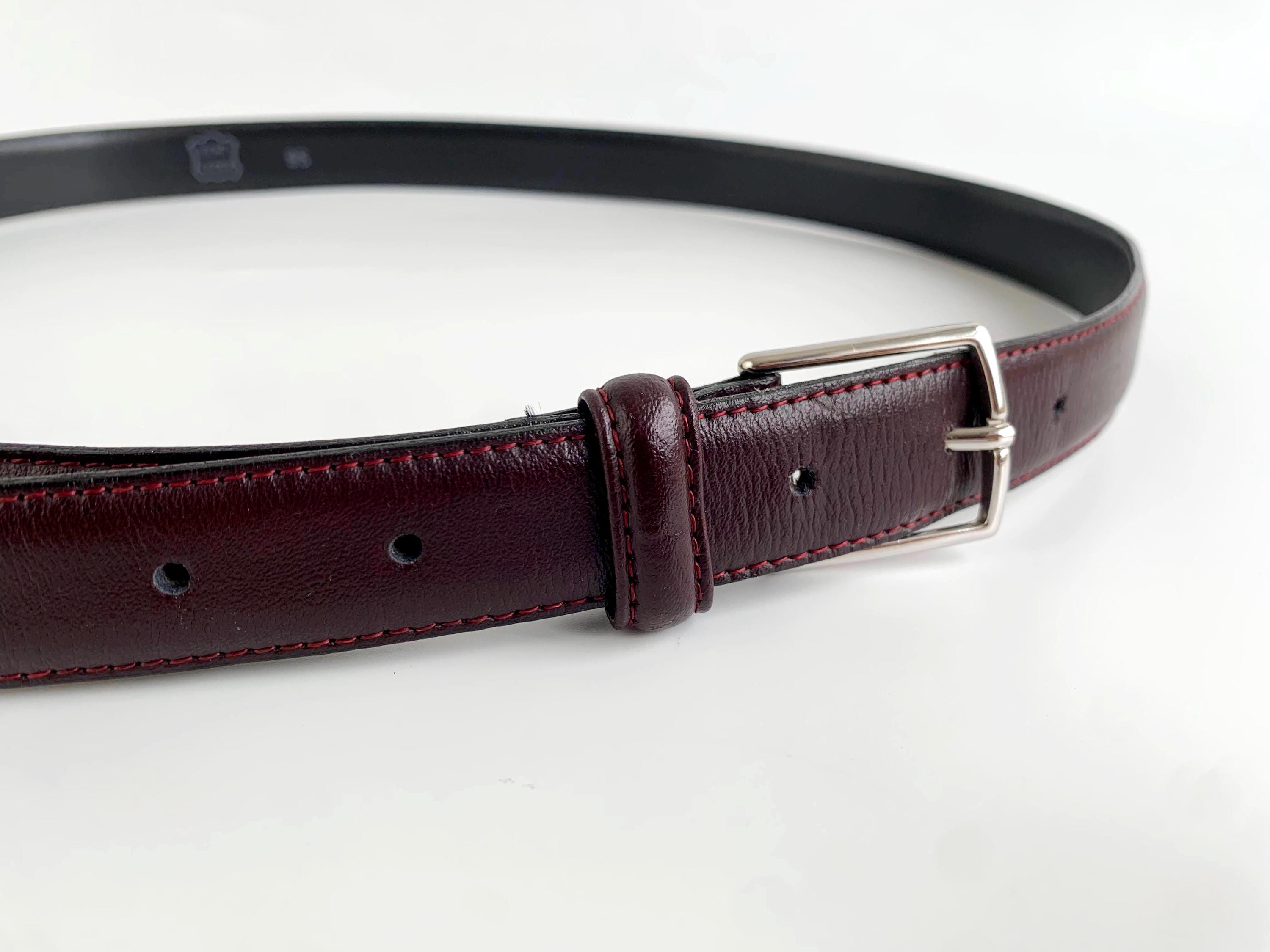 This is a vintage women's cognac brown real leather belt for women form the 80s. This skinny leather belt has a rectangular silver tone buckle. This tiny waist belt is perfect to wear with dresses or turtlenecks.
