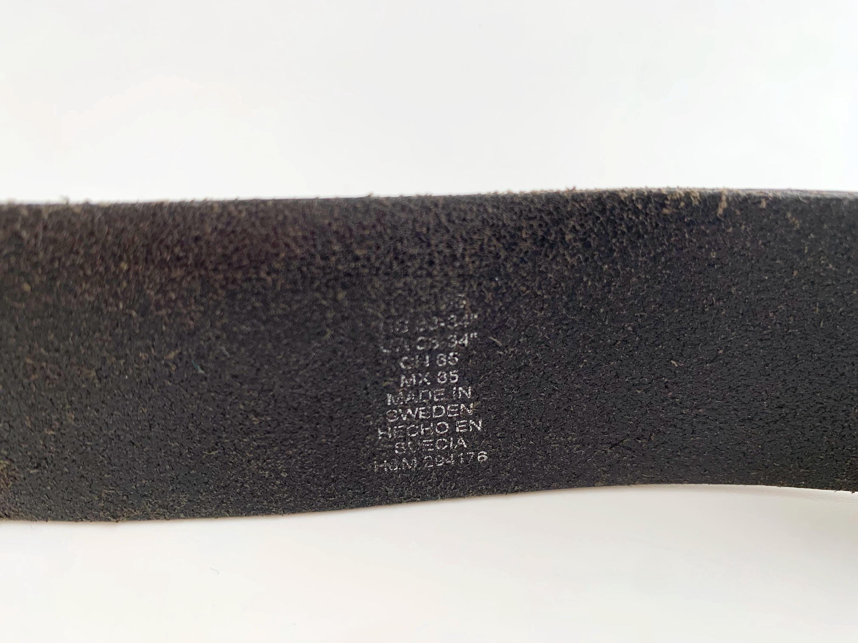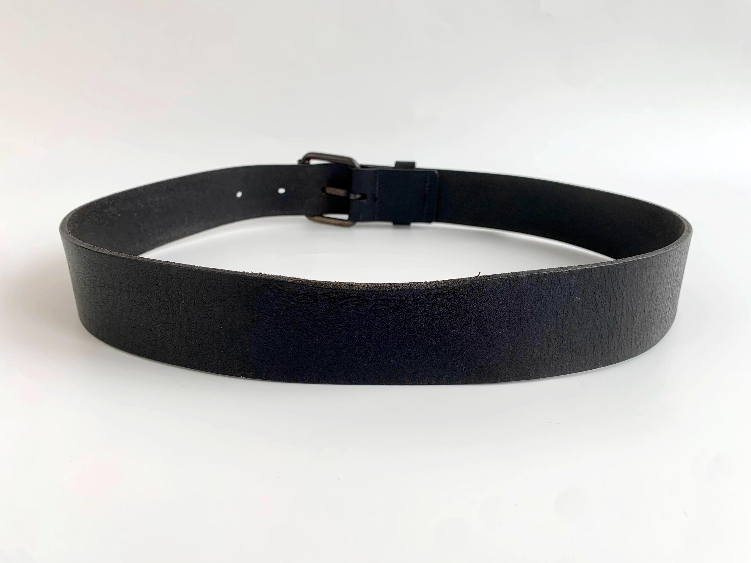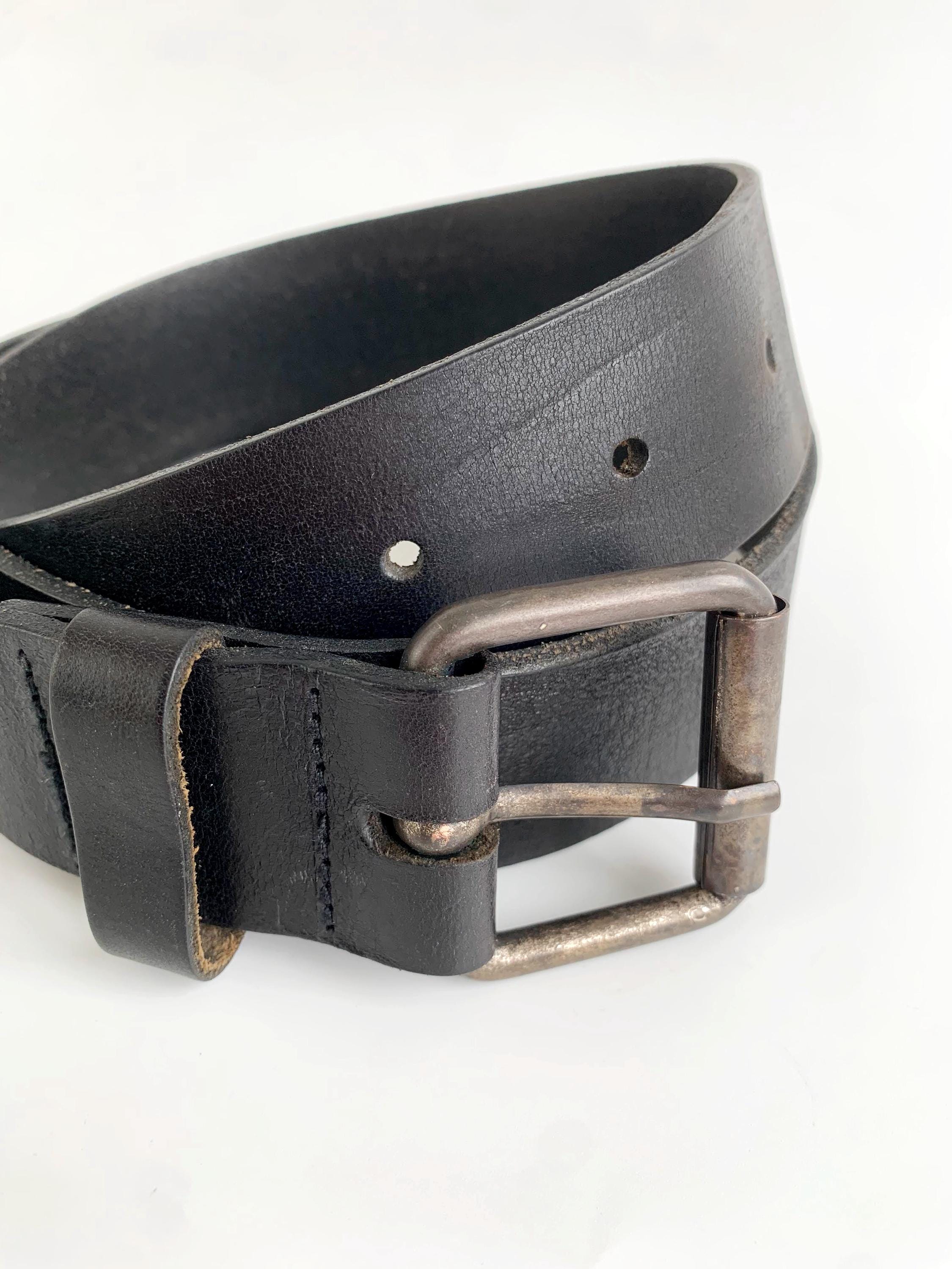 Condition: This simple leather belt has a distressed look, it shows some marks and scratches on the leather surface and on the buckle camptured in the close up photos