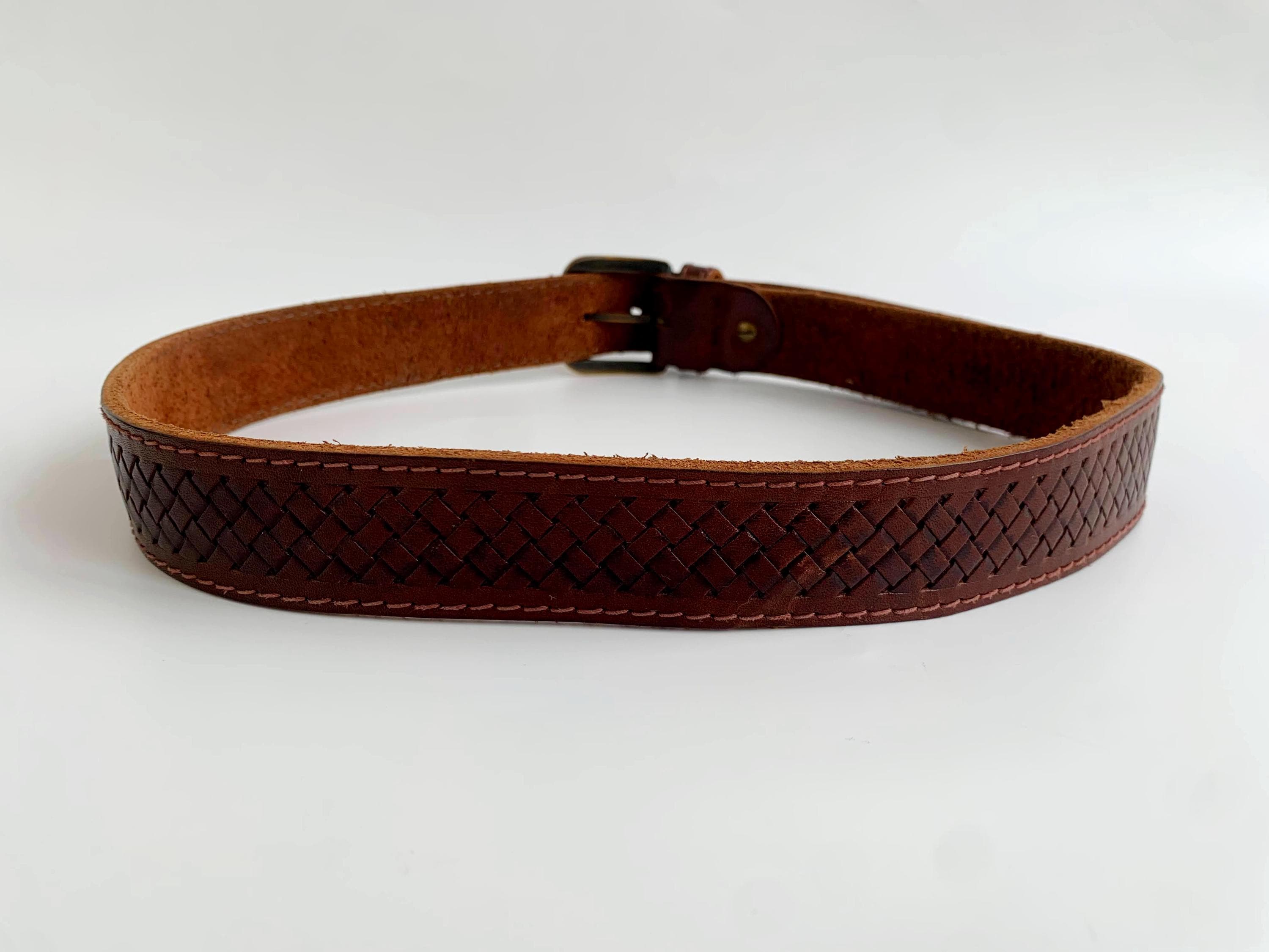This is a vintage 80s cognac brown tooled leather belt for women, made of thick genuine leather with gold tone buckle. You can wear this tooled leather belt with simple jeans, floral dresses or shirts . This embossed distressed belt is made of full grain genuine leather.