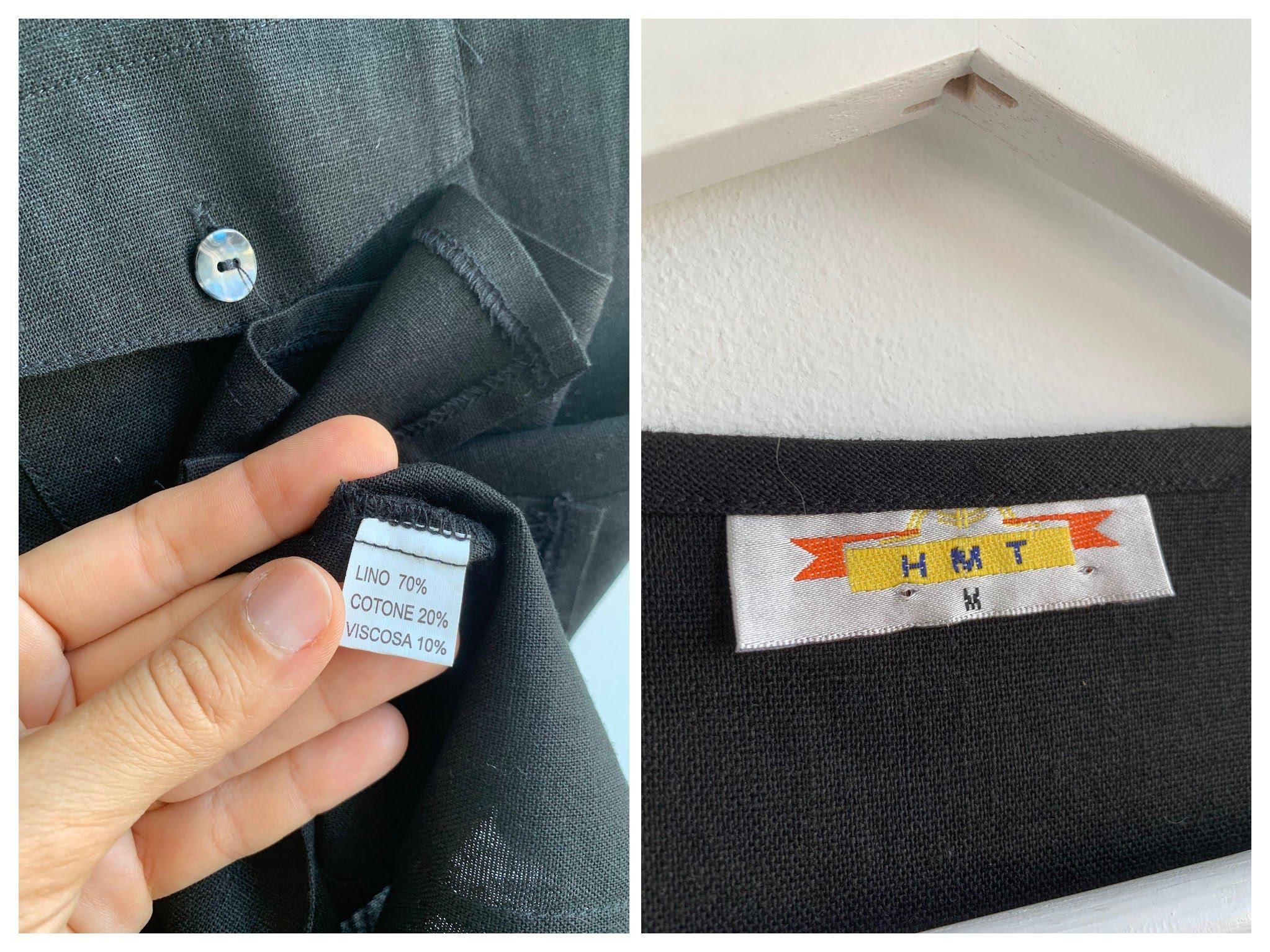 Material: 70% linen, 20% cotton, 10% viscose, plastic lucite buttons