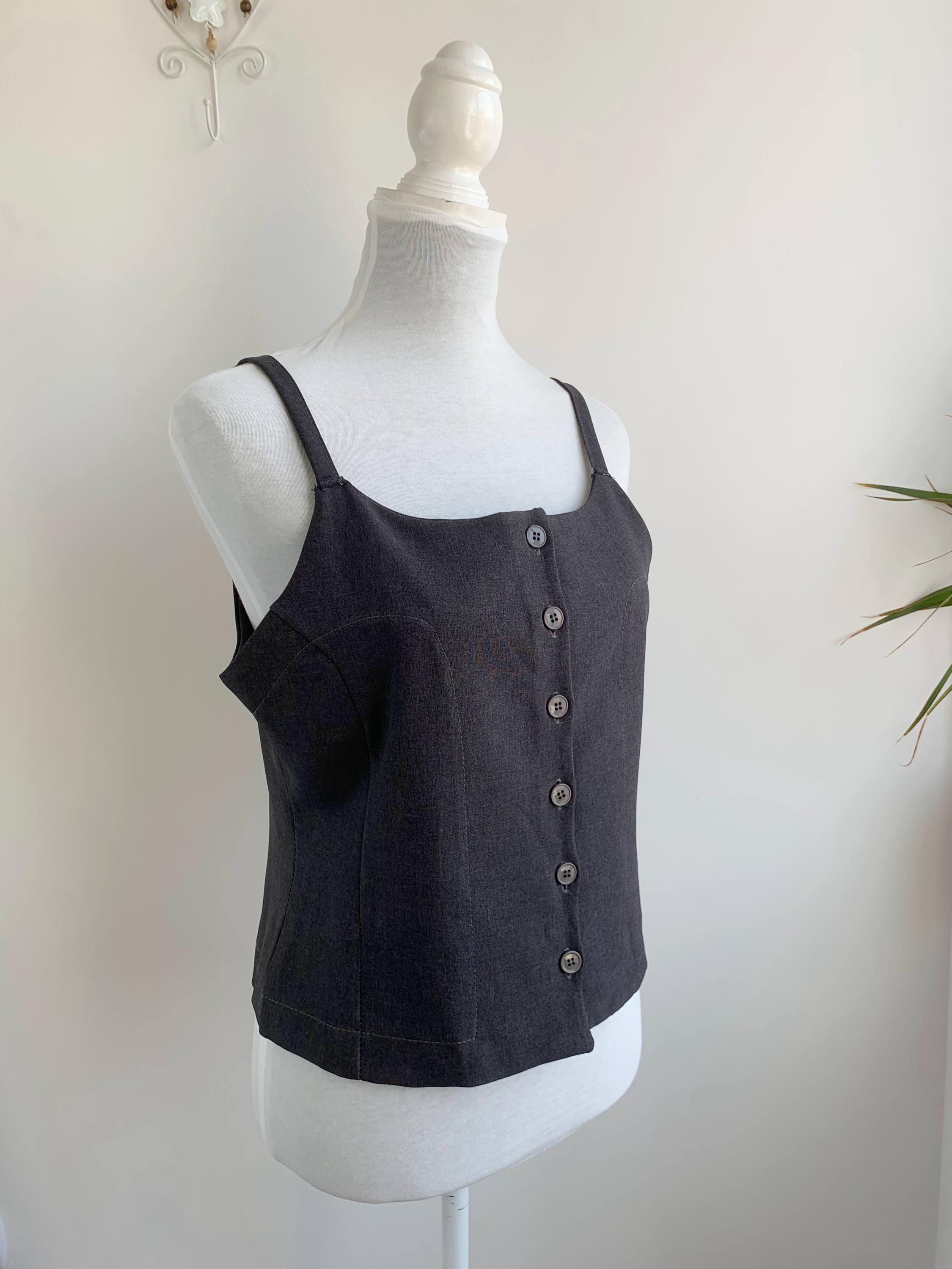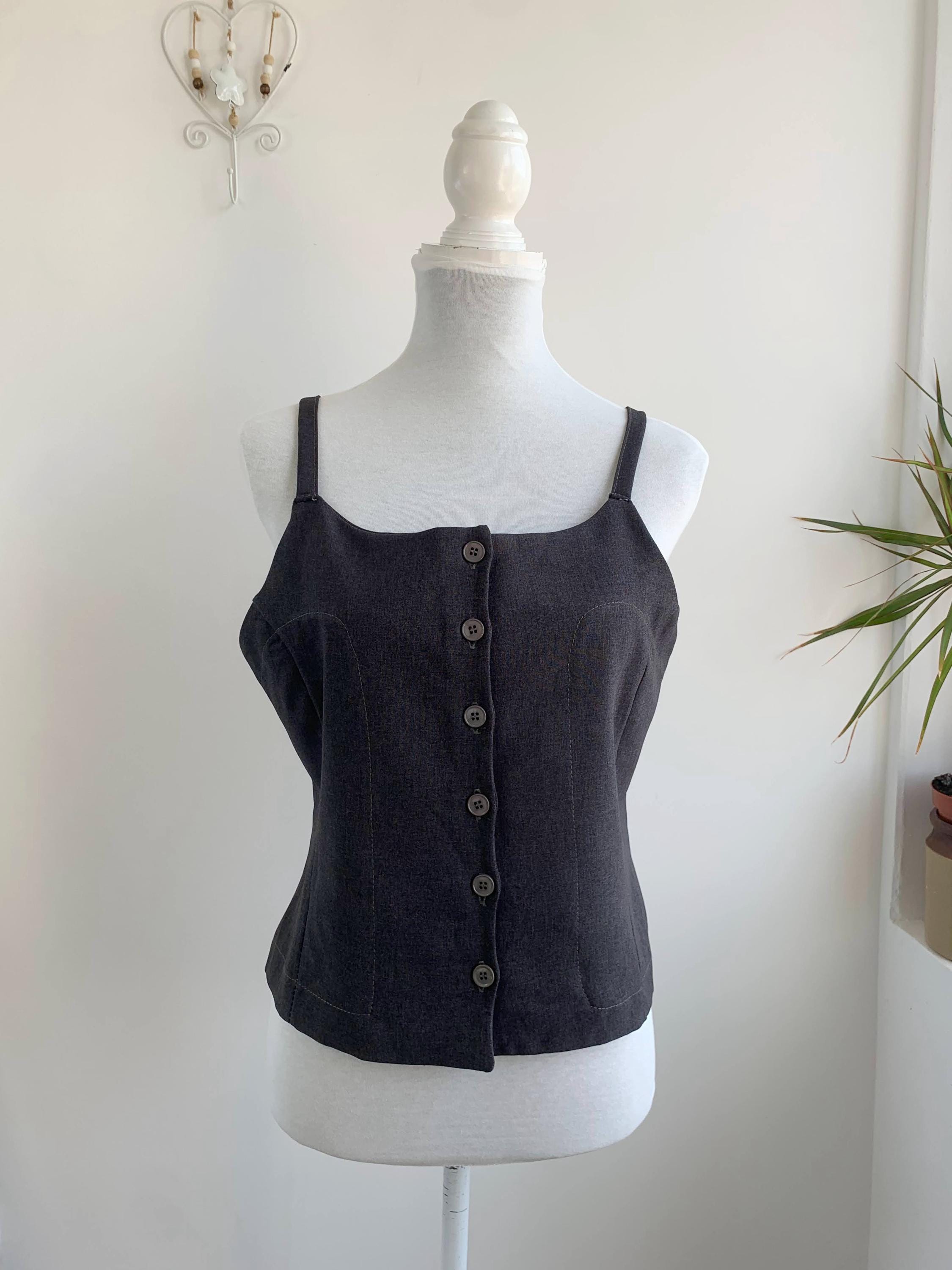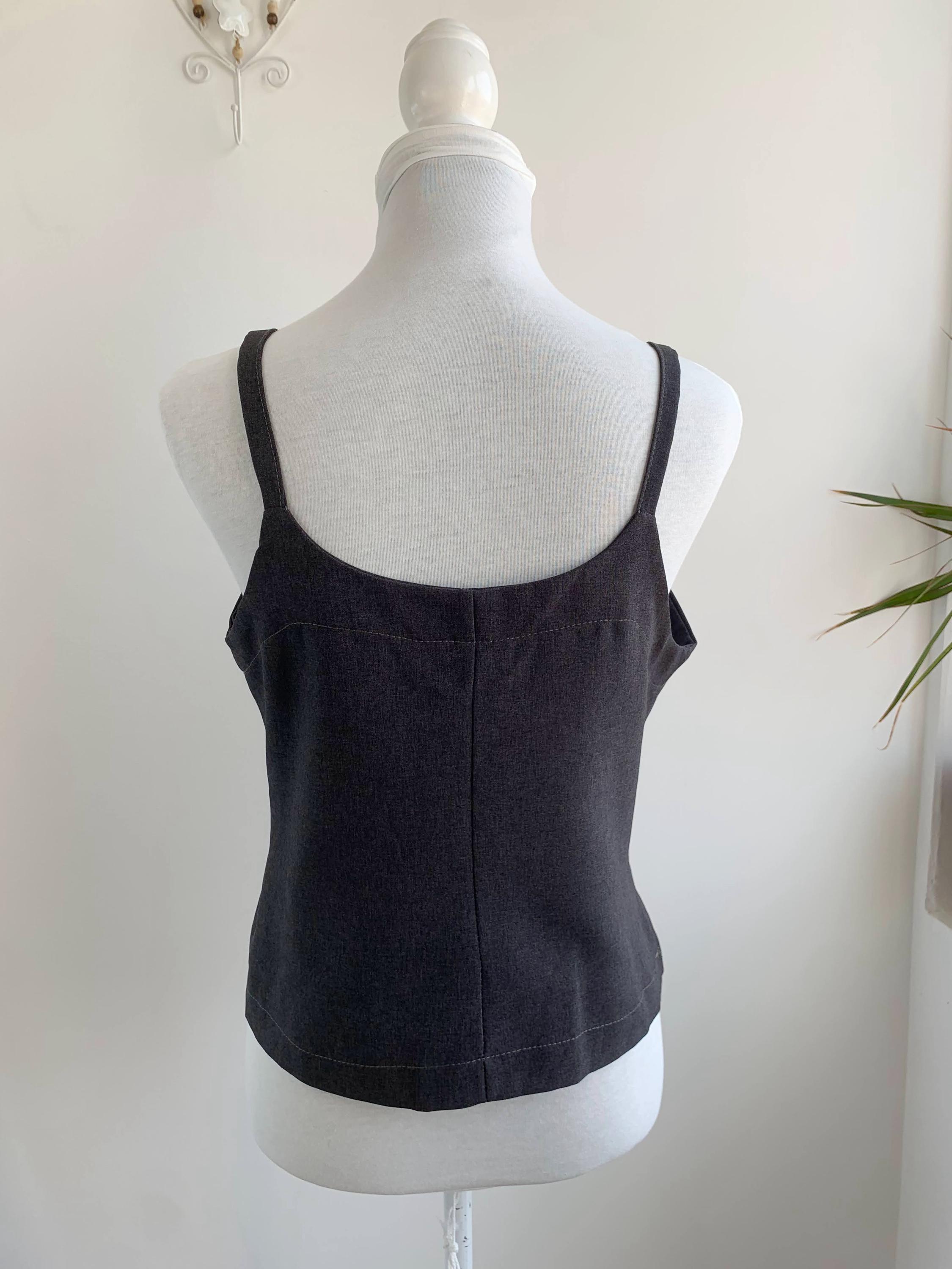 This is a vintage 90s charcoal grey spaghetti strap bustier top for women made in Italy size 46/L. This button up cropped tank top is super elegant and stylish, perfect to wear at the office or for a more casual look pair this croppee vest top with jeans.