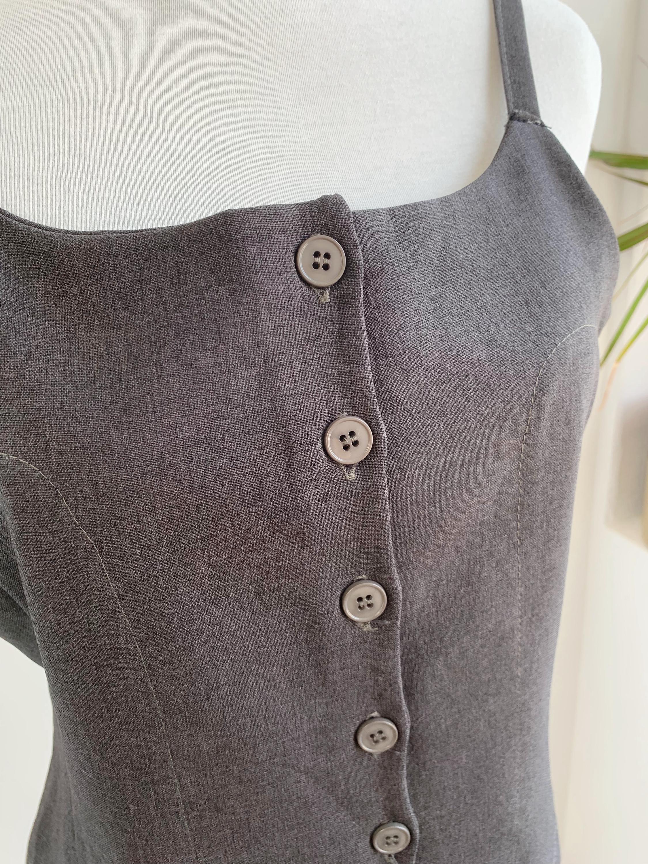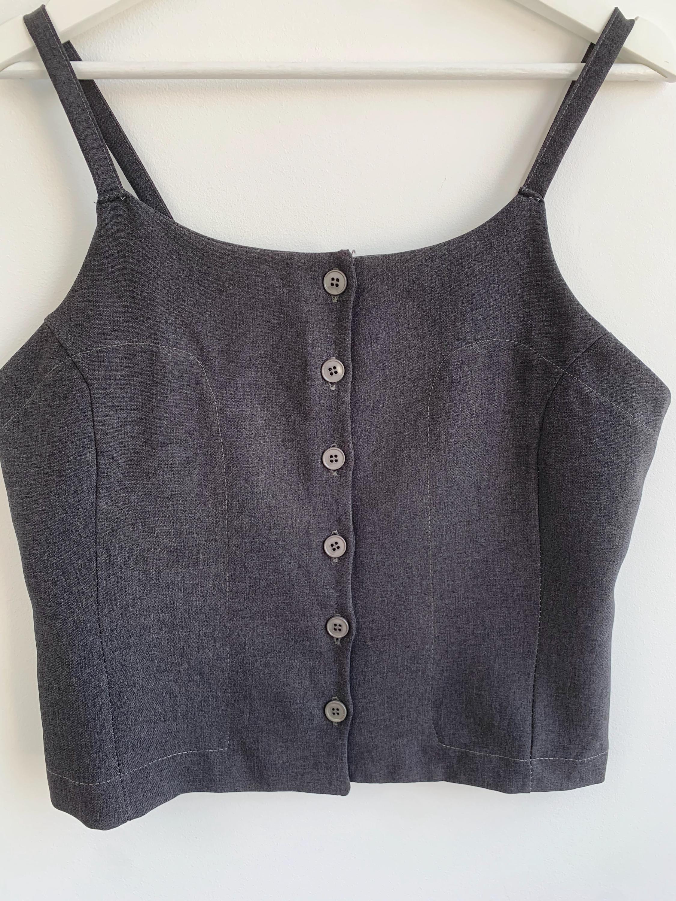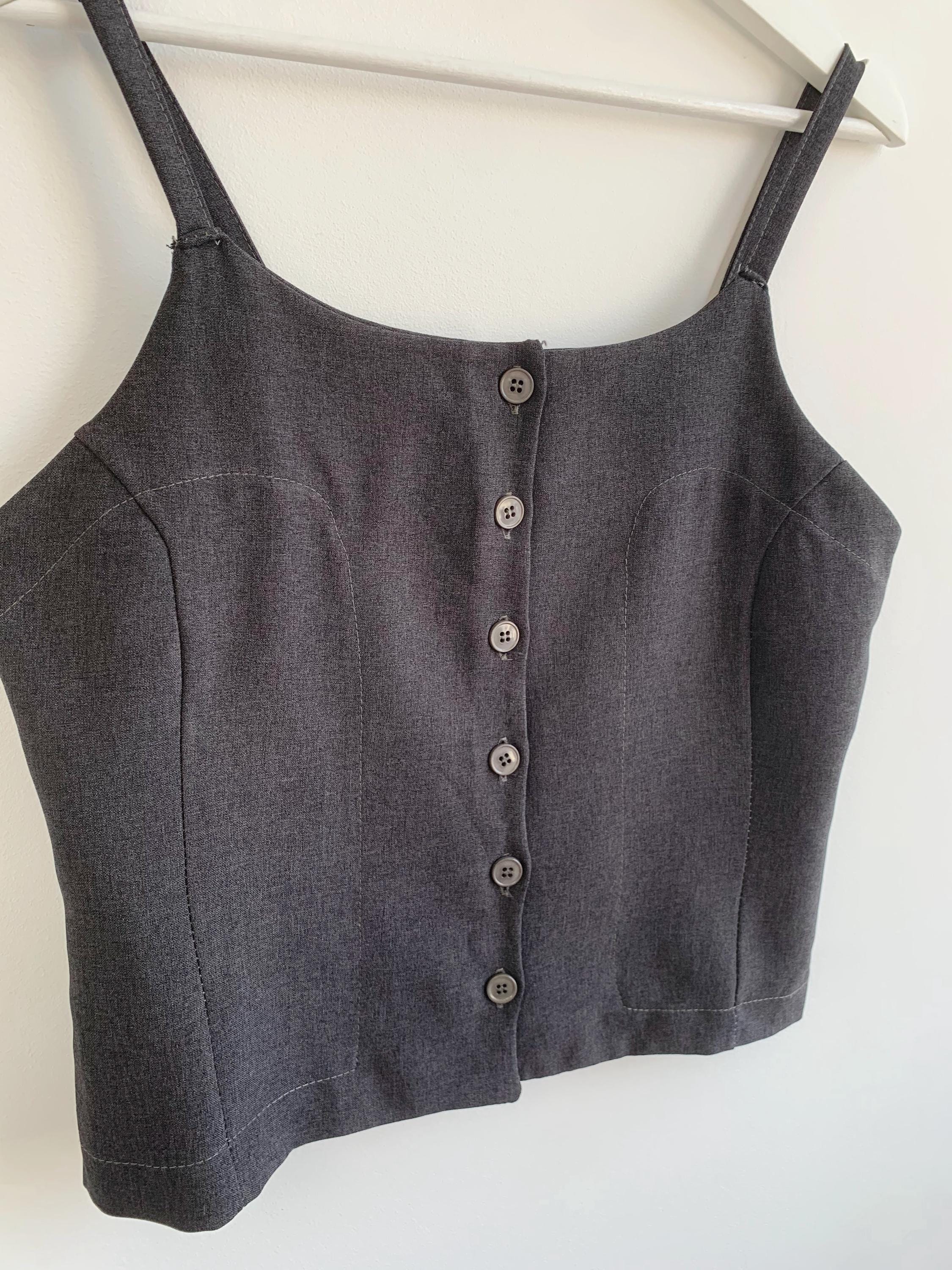 This is a vintage 90s charcoal grey spaghetti strap bustier top for women made in Italy size 46/L. This button up cropped tank top is super elegant and stylish, perfect to wear at the office or for a more casual look pair this croppee vest top with jeans.