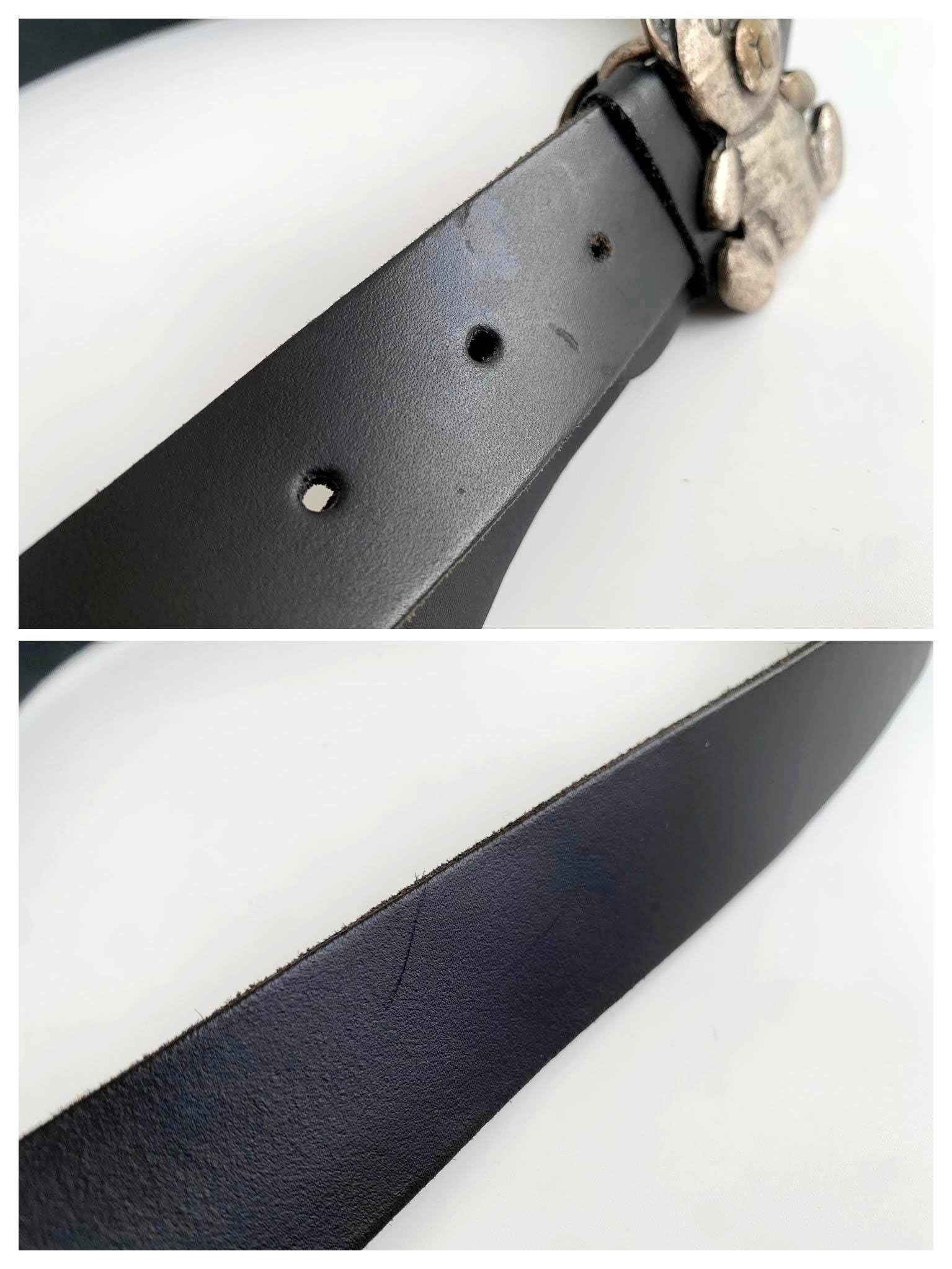 Condition: This bear buckle leather belt is in greta pre-loved vintage condition with some signs of wear - there are some scratches on the leather surface and on the silver tone buckle too.