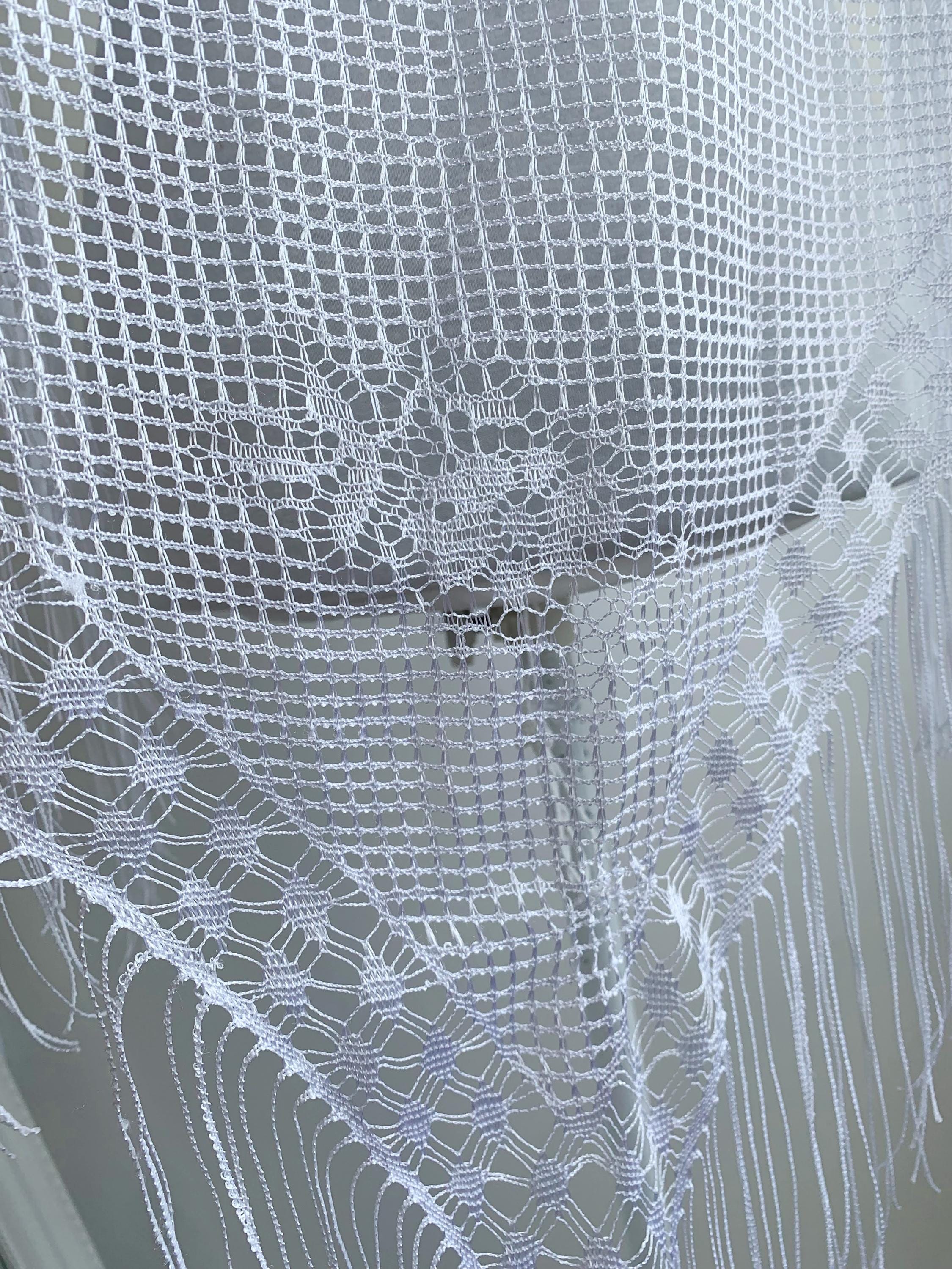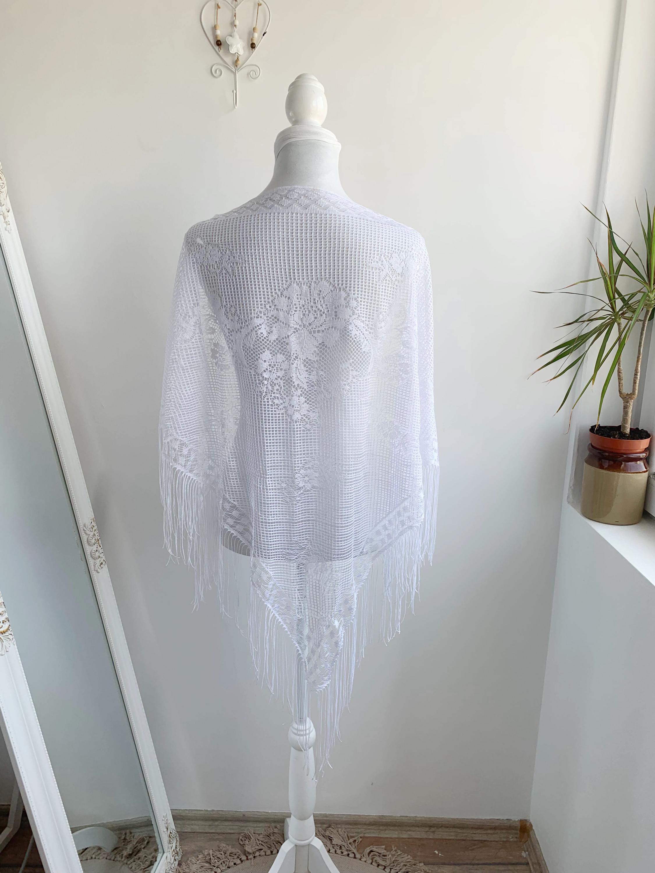 Step back in time and embrace your authentic self with this gorgeous vintage 90s pre-loved white lace triangle shawl! Perfect for the free-spirited individual who loves to blend Y2K and 90s aesthetics with a touch of 70s boho nostalgia.
