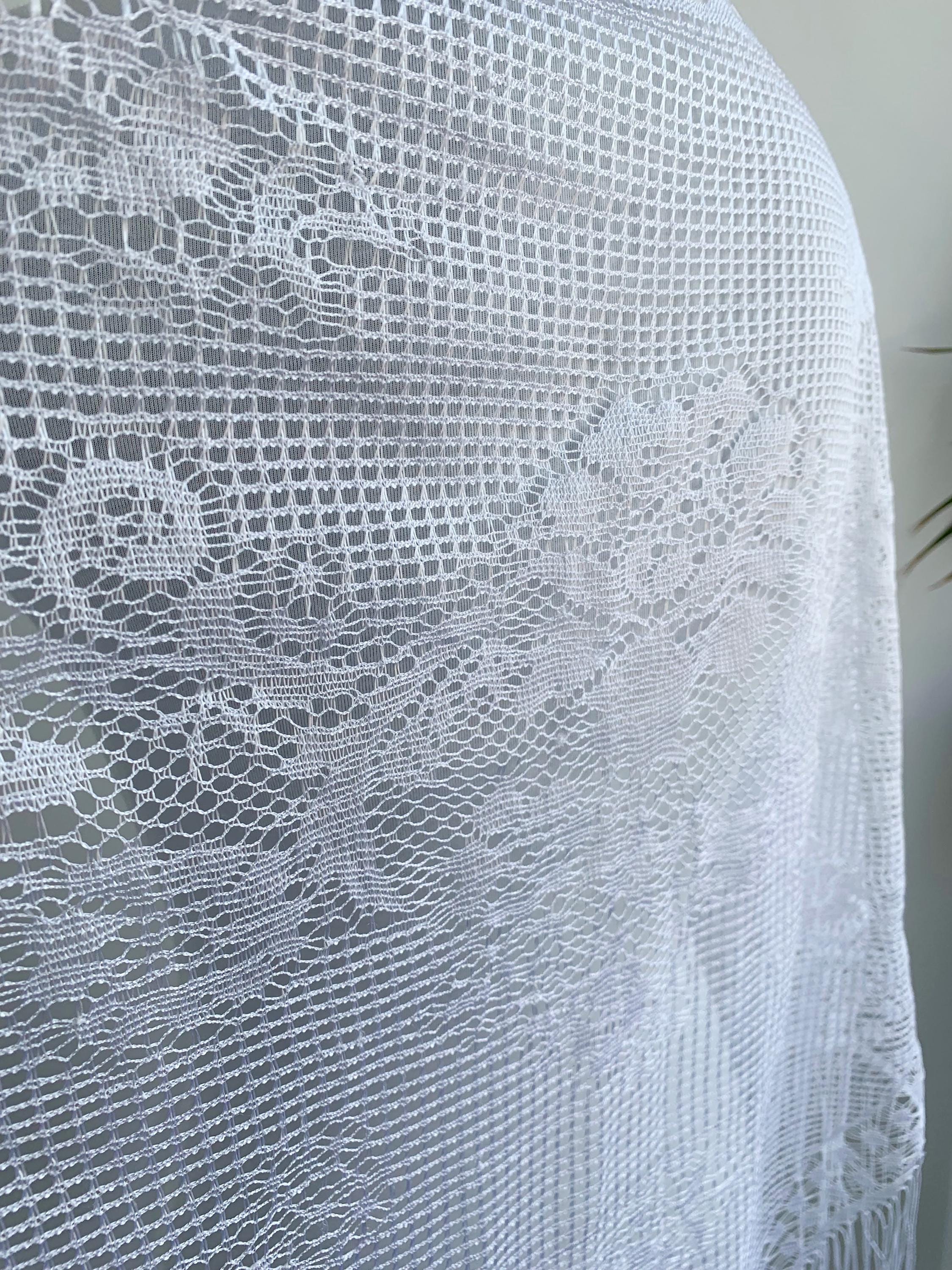 This lightweight, gossamer lace wrap features an intricate floral pattern and delicate fringe, adding a dreamy, ethereal touch to any outfit. Whether you're channeling your inner grunge goddess, heading to a music festival, or simply seeking a unique accessory to express your personal style, this shawl is your perfect companion.