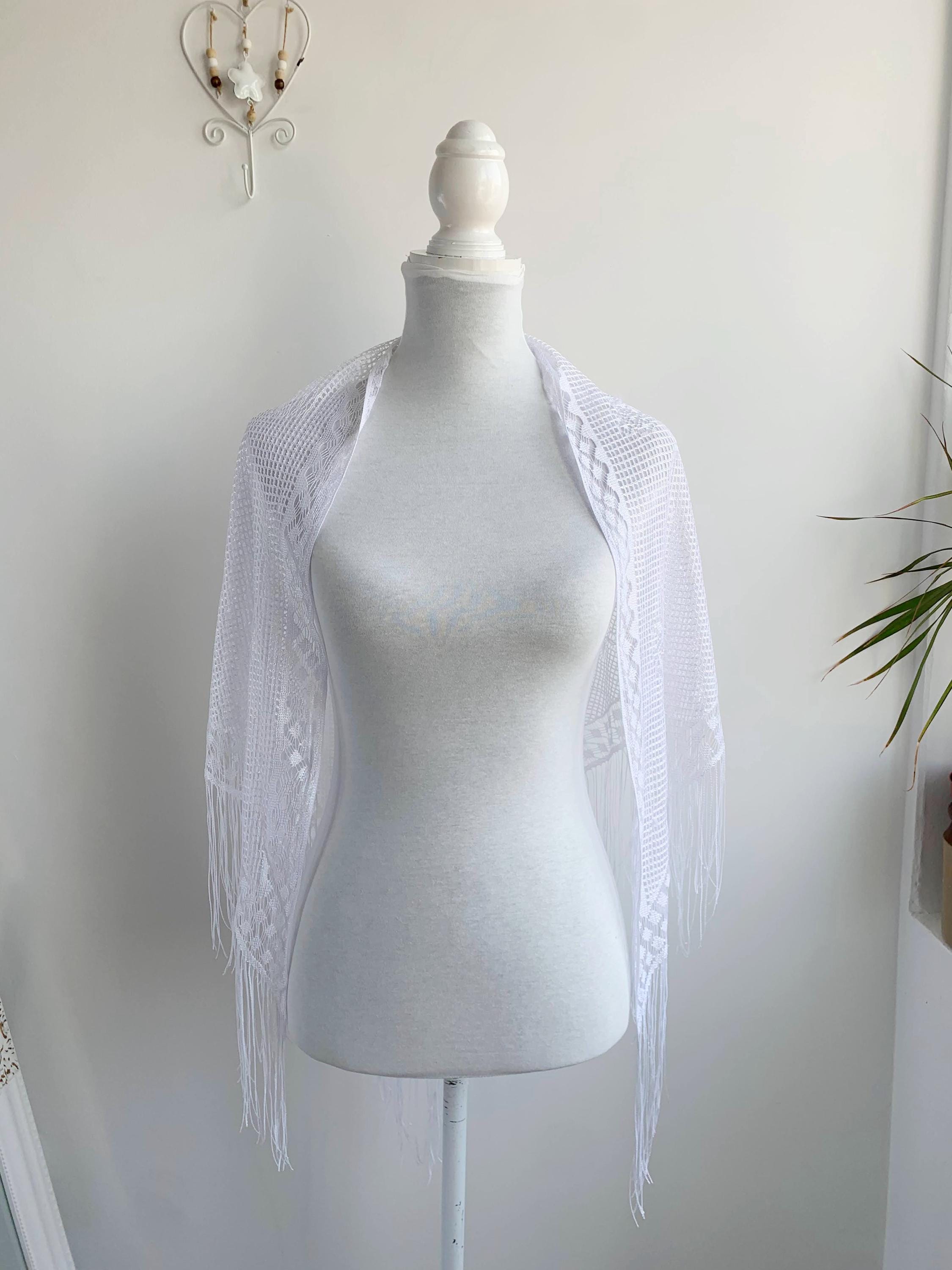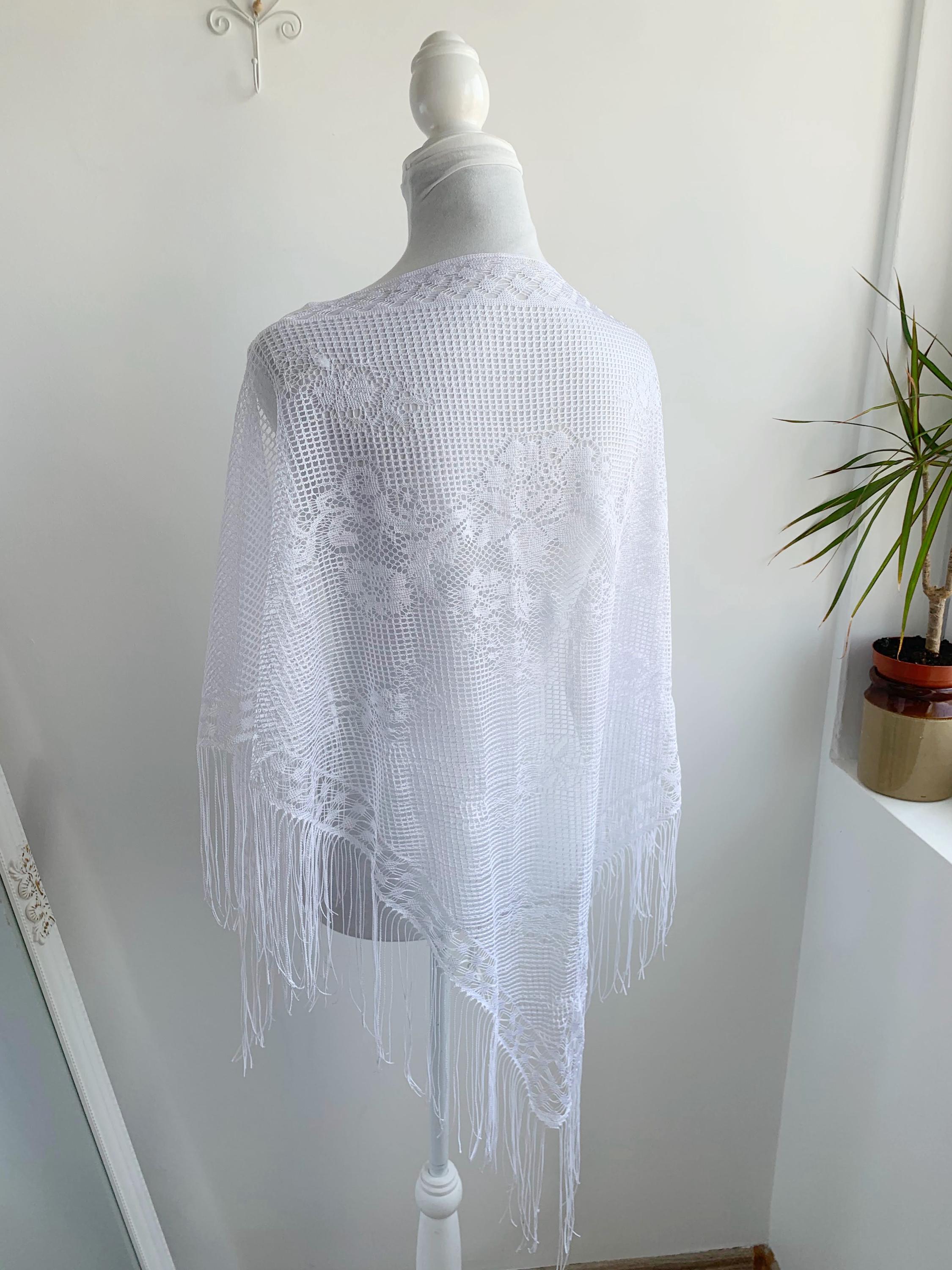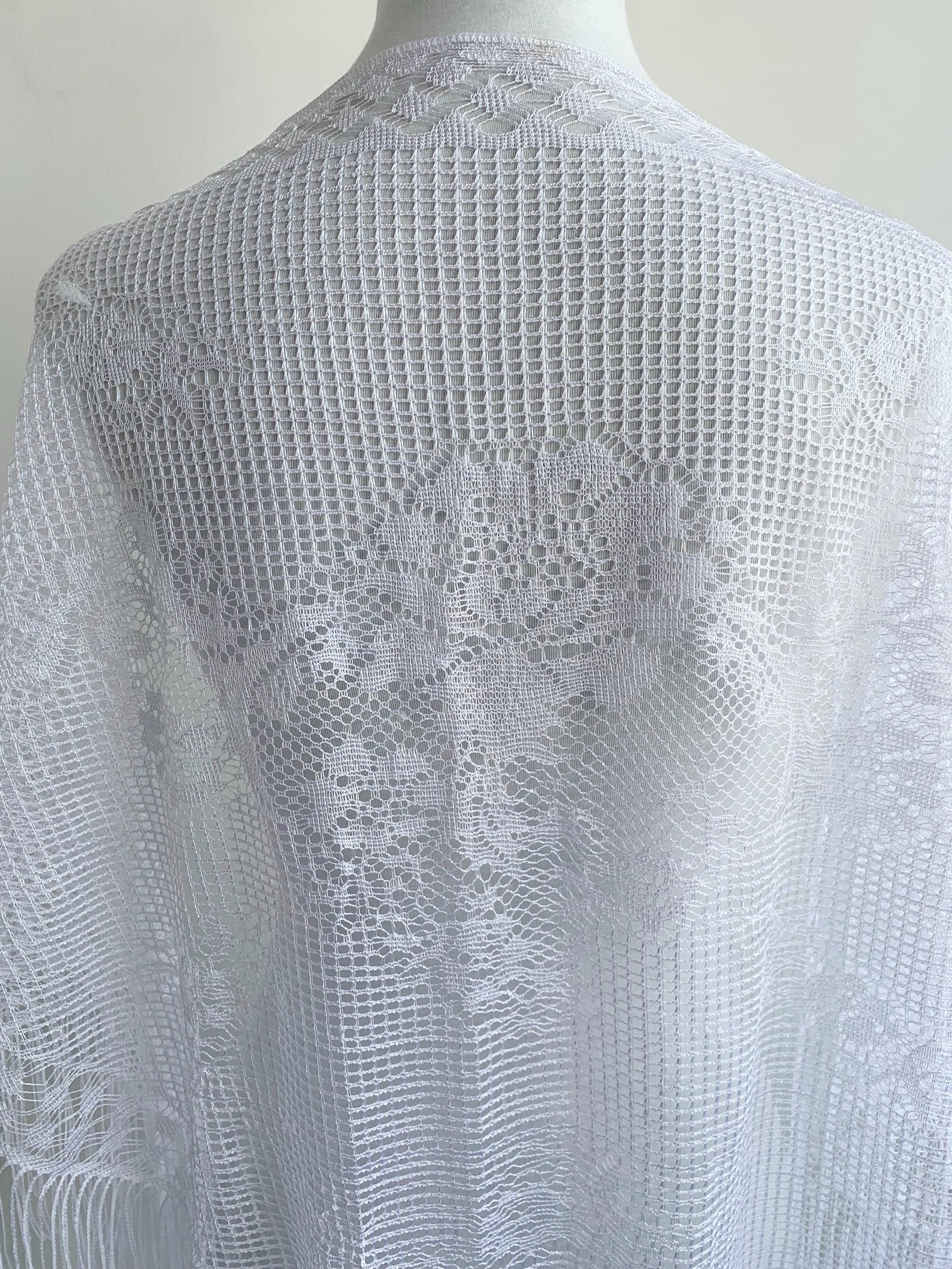 Condition: this white lace shawl shows some signs of wear - there are a couple of pulled threads, shown in the close up photos, overall beautiful vintage condition