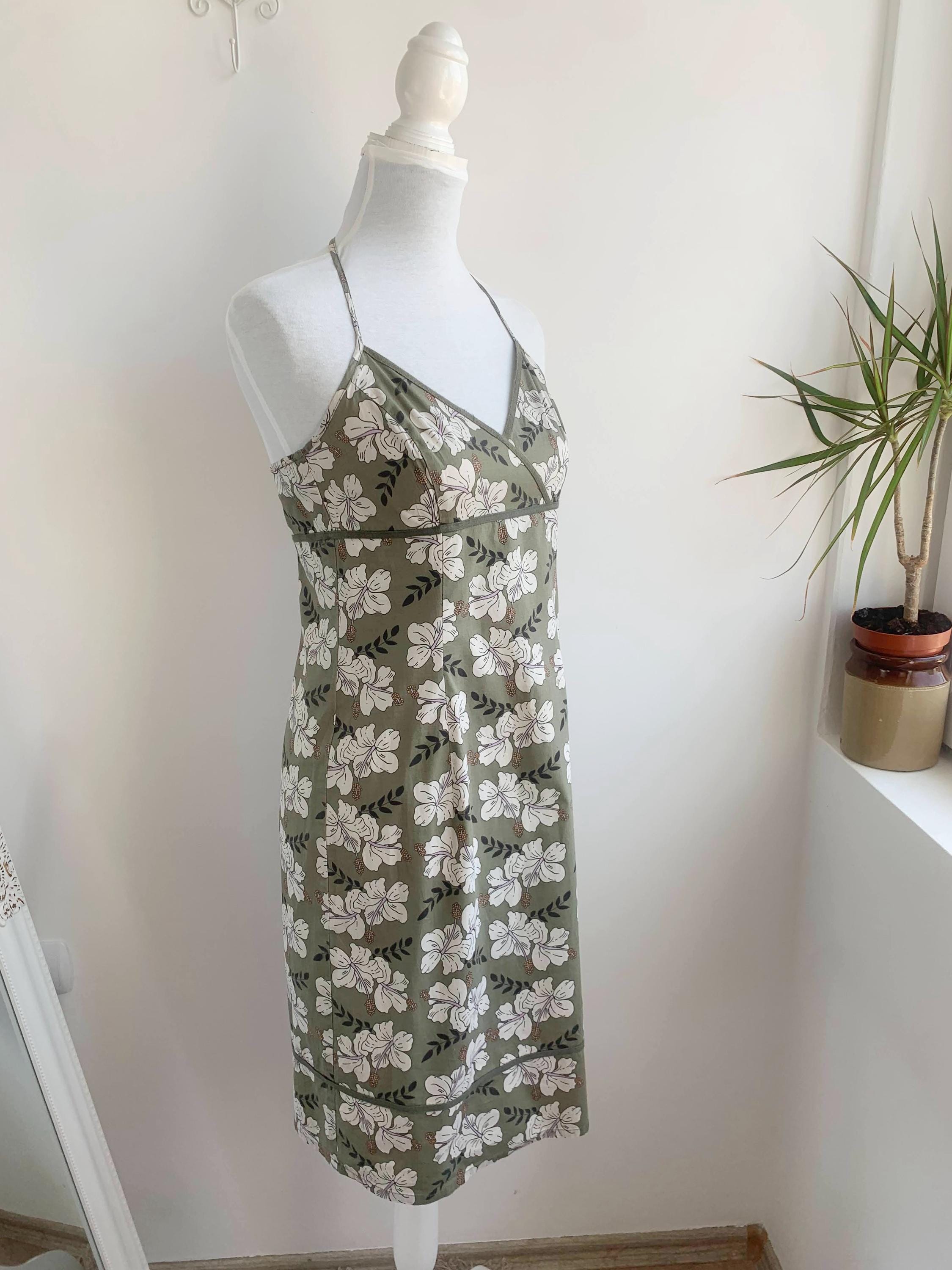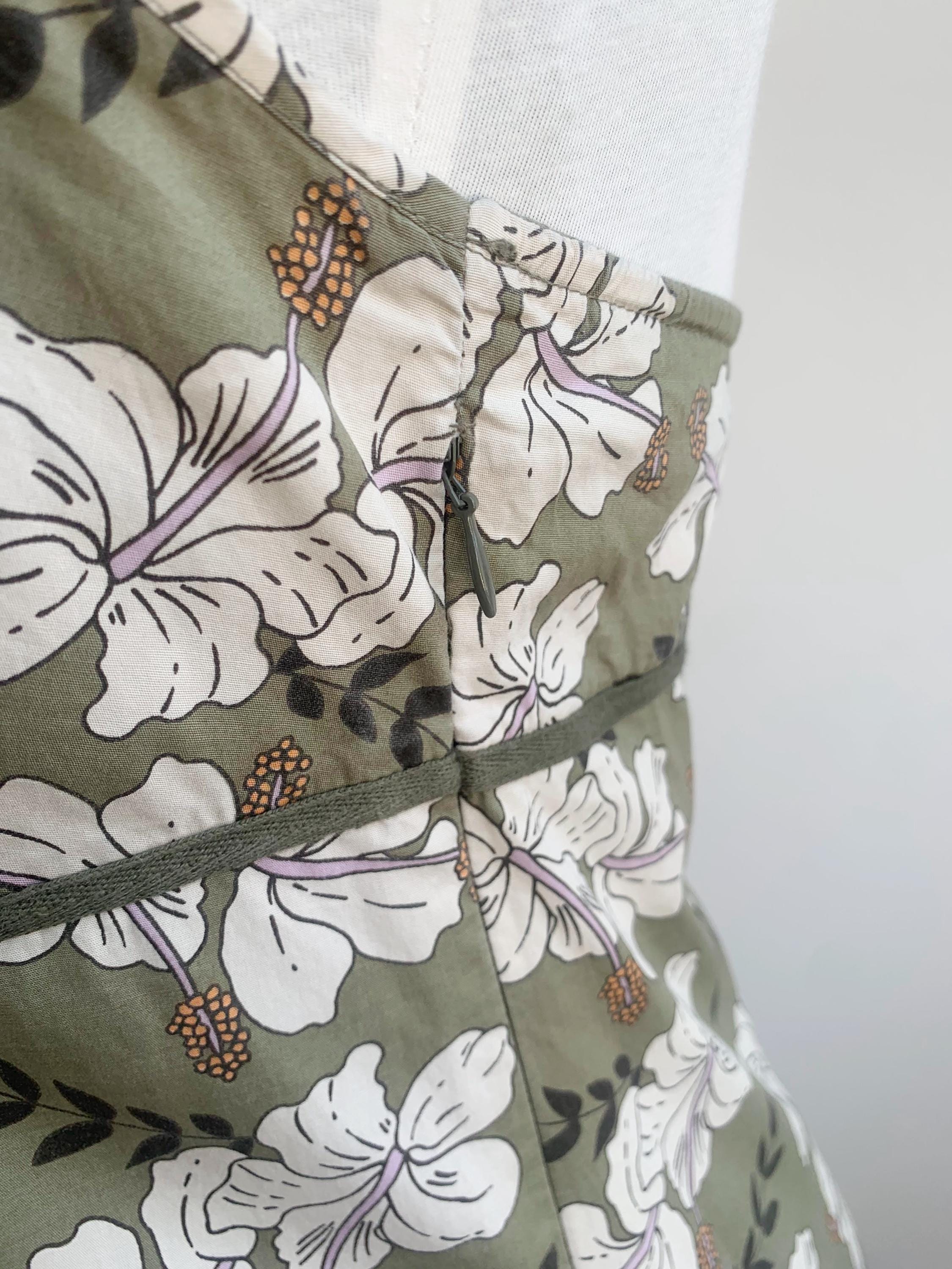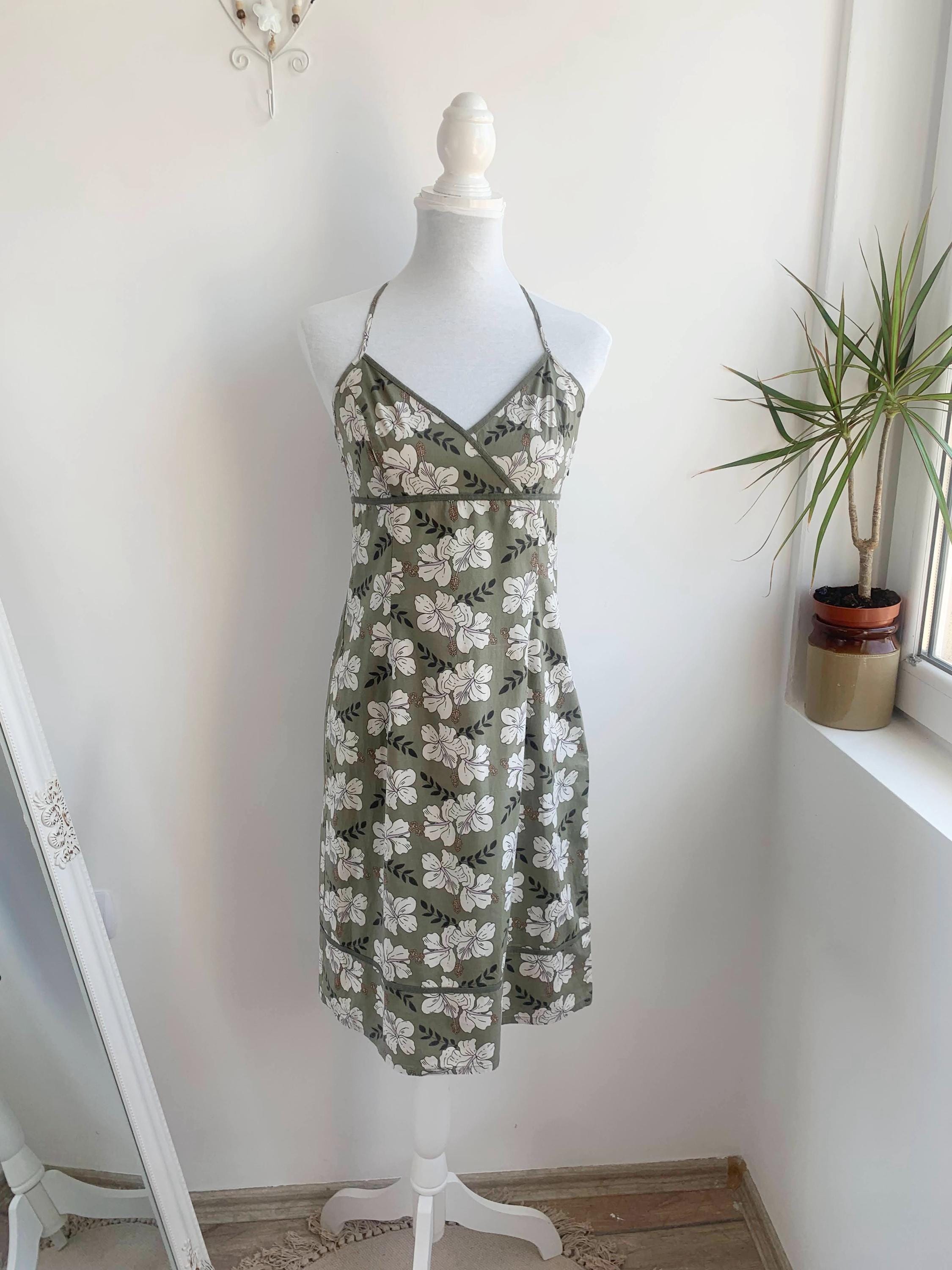 Imagine twirling through a summer festival, strolling along a sun-drenched beach, or simply enjoying a warm summer evening out – this tropical dress is your perfect companion. The gorgeous olive green hue is adorned with a delicate, vibrant floral print, evoking images of lush, tropical escapes and endless summer days.