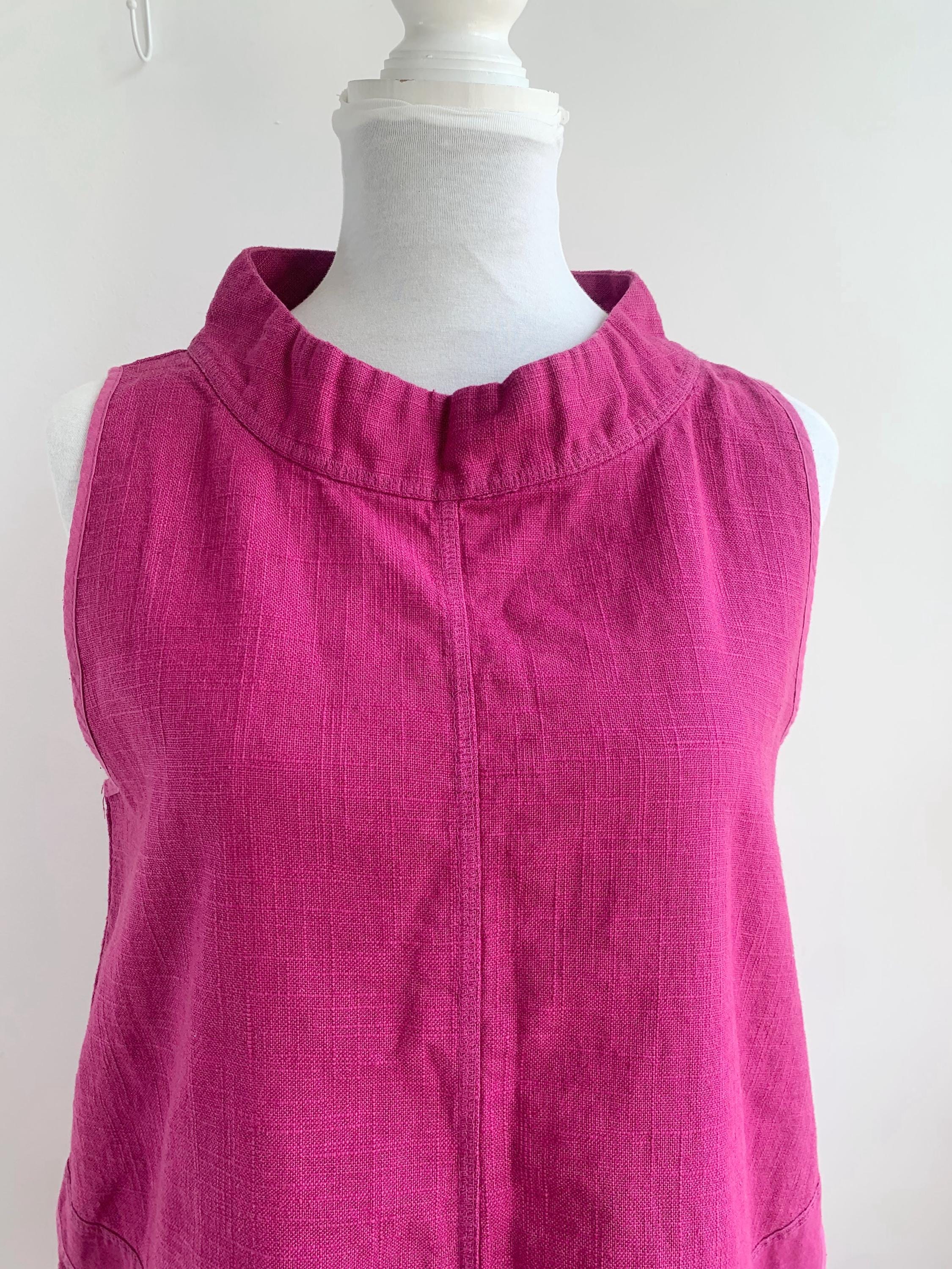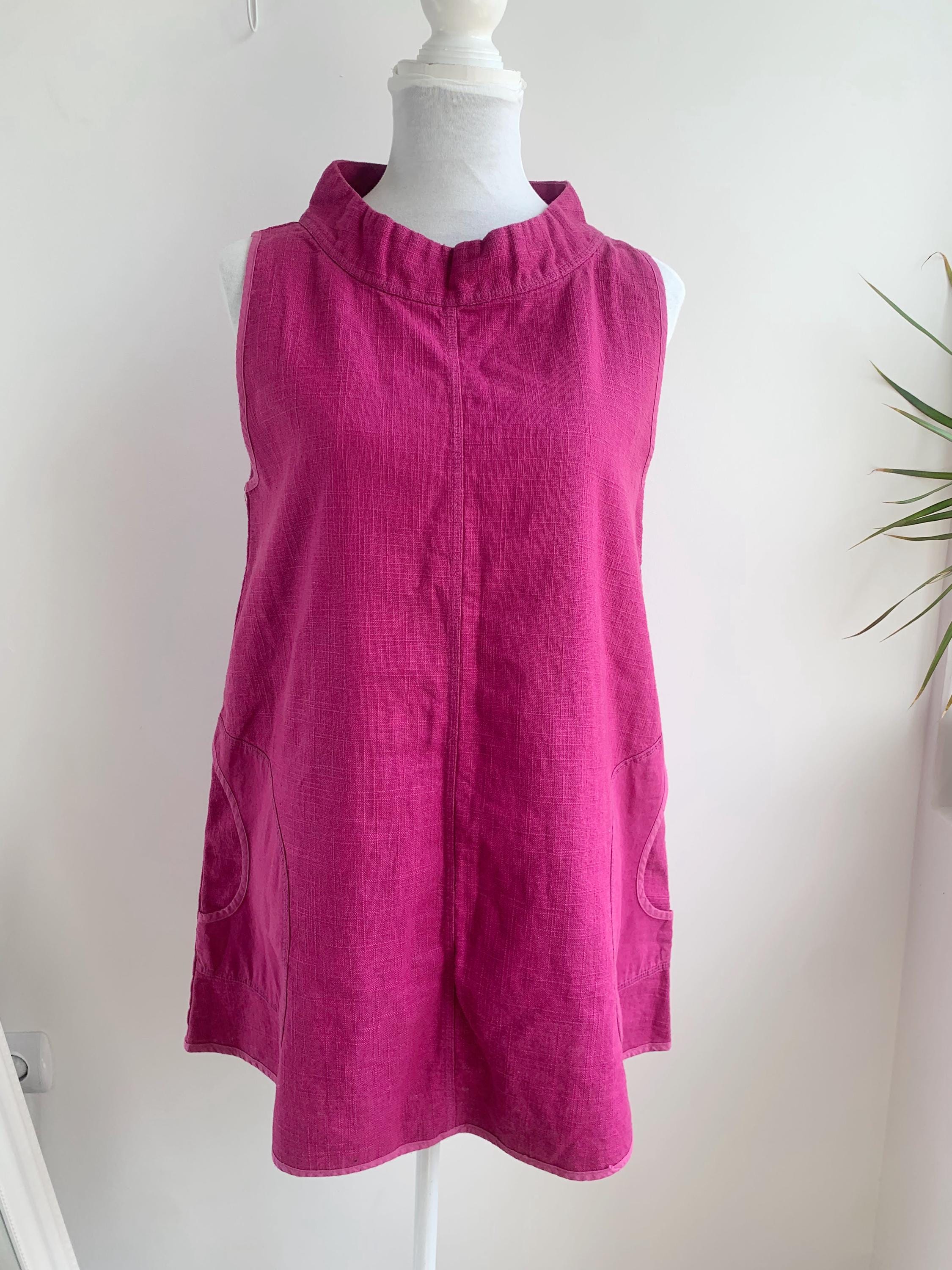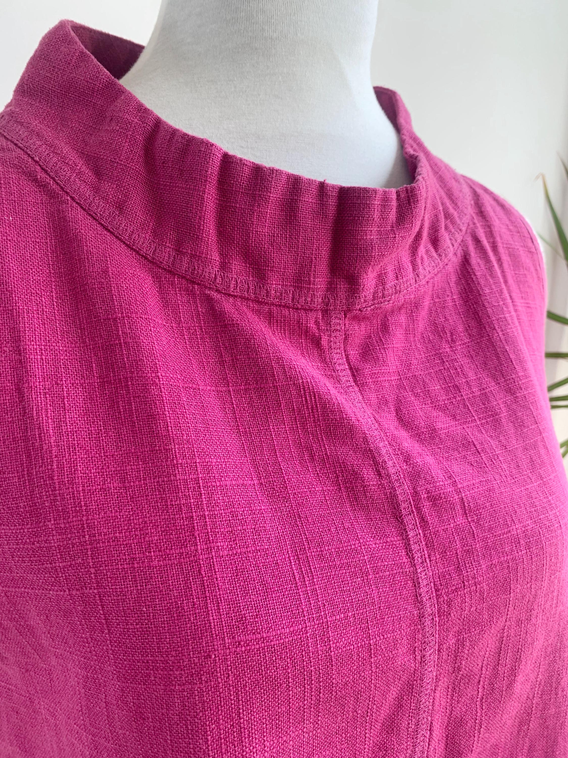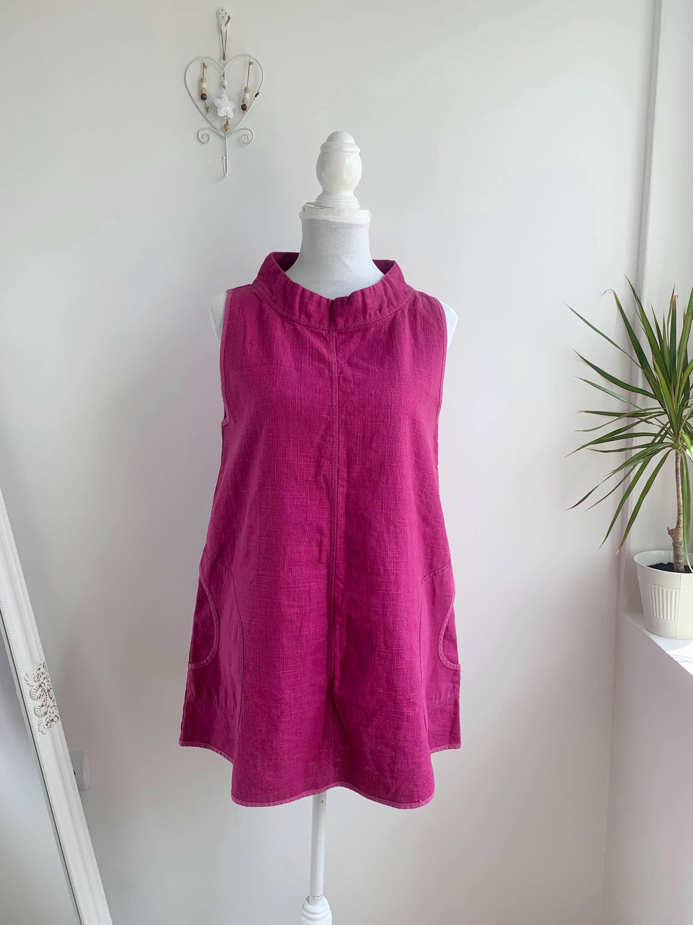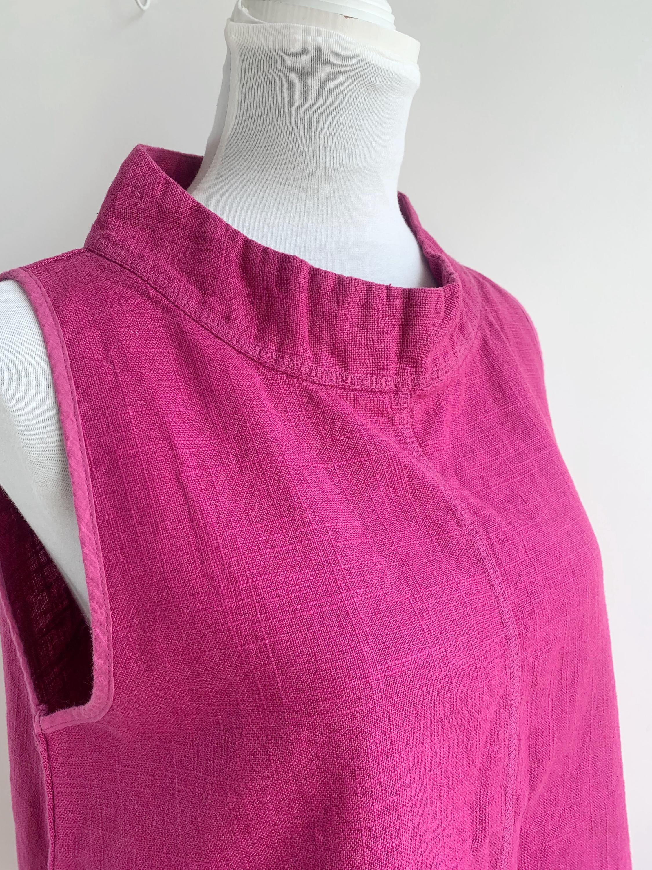 This is a vintage hot pink cotton linen summer tunic made of cotton linen blend fabric (55% linen, 45% cotton). This eco friendly sustainable long linen shirt has A line silhouette. With its relaxed fit silhouette, it will keep you cozy during the summer days. It has pockets.