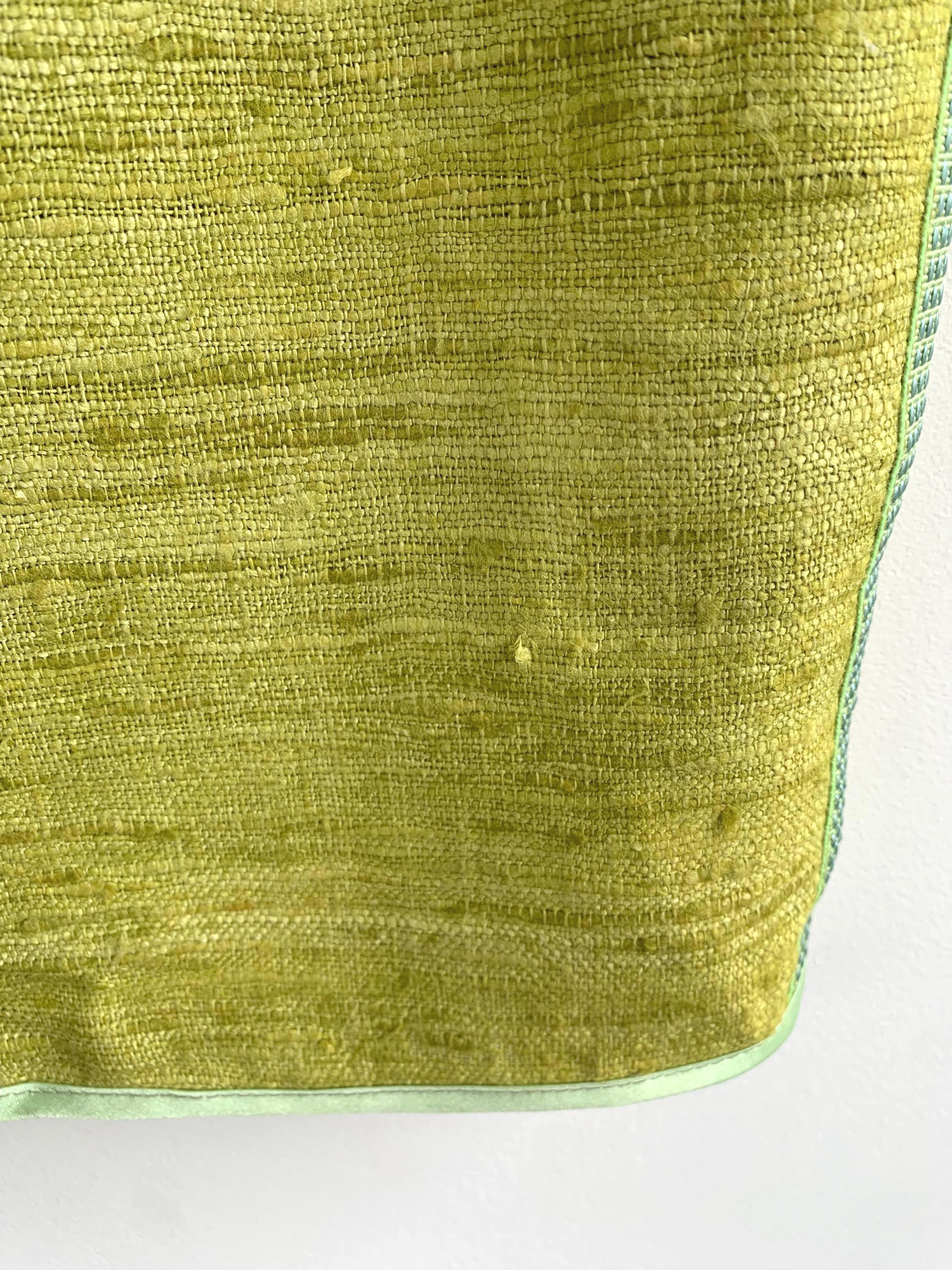 Condition: Excellent vintage condition. The fabric is vibrant, and all unique details are intact. The raw silk has natural texture, which comes with the fabric.