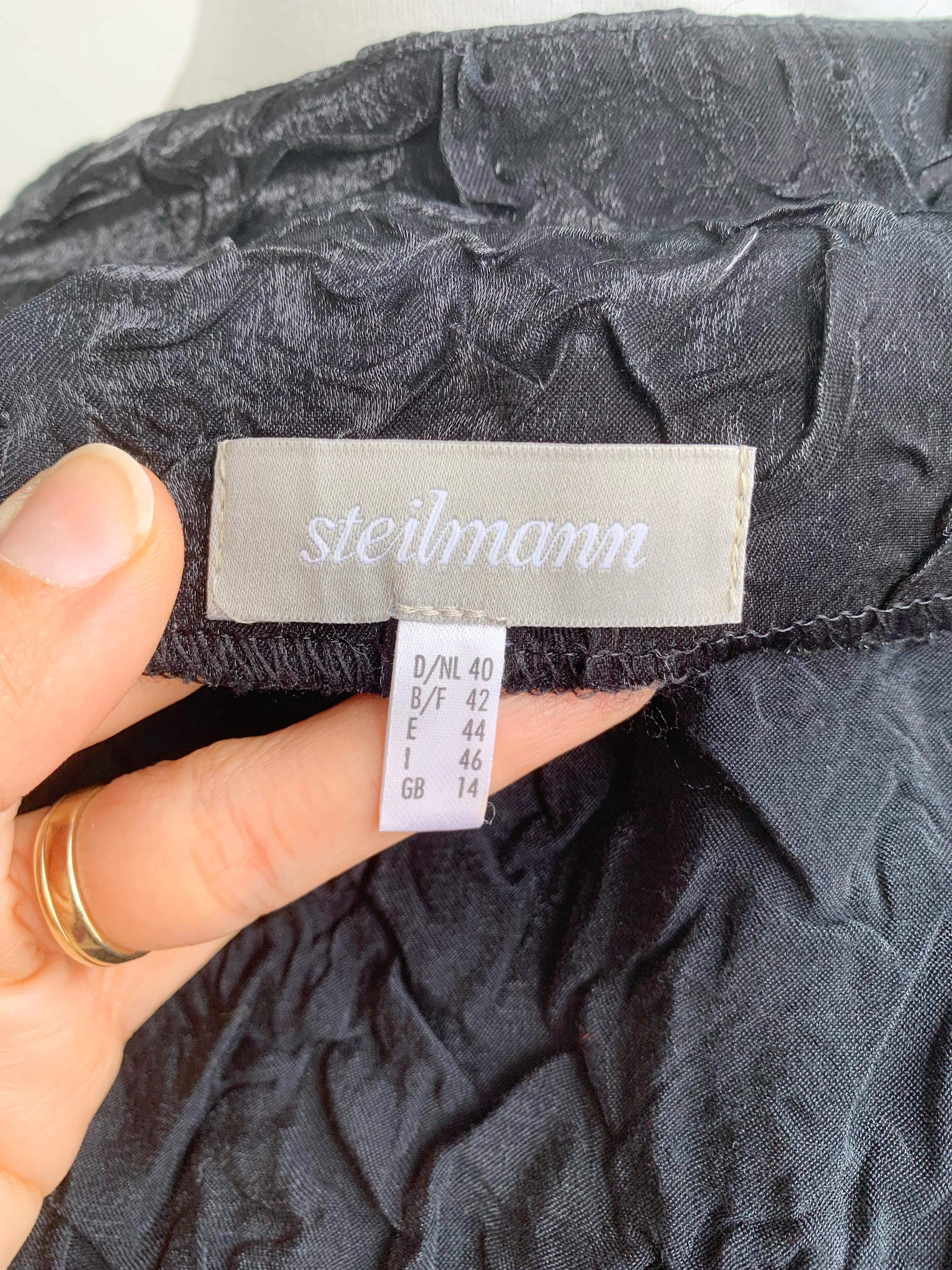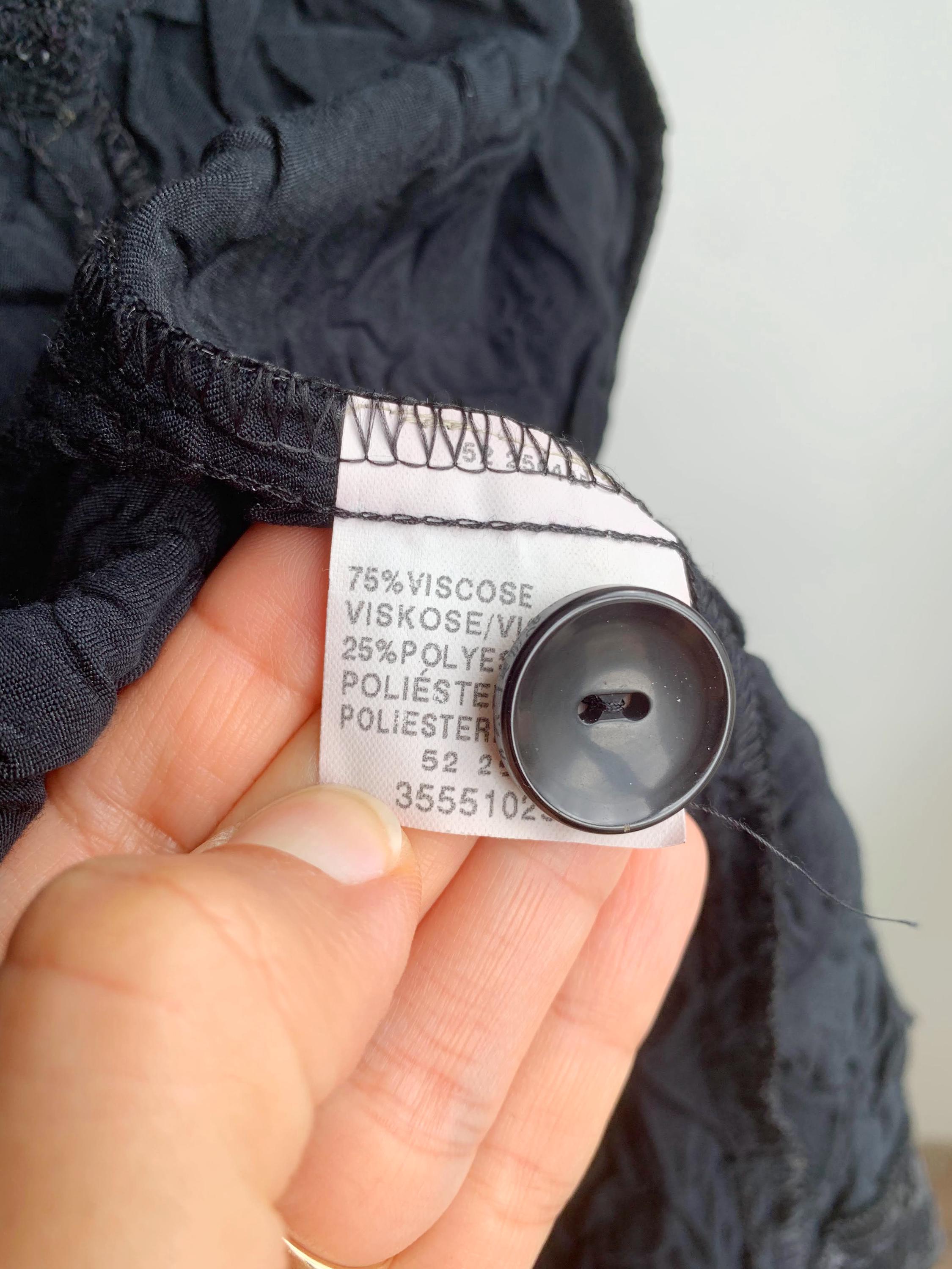 Make a powerful, minimalist statement with this striking vintage black blazer by the German brand Steilmann in size M or L (fits a variety of sizes due to the stretchy fabric). Dating from the 1990s, this jacket is a superb example of Avant Garde and minimalist fashion from the era, relying on texture and structure rather than embellishment.