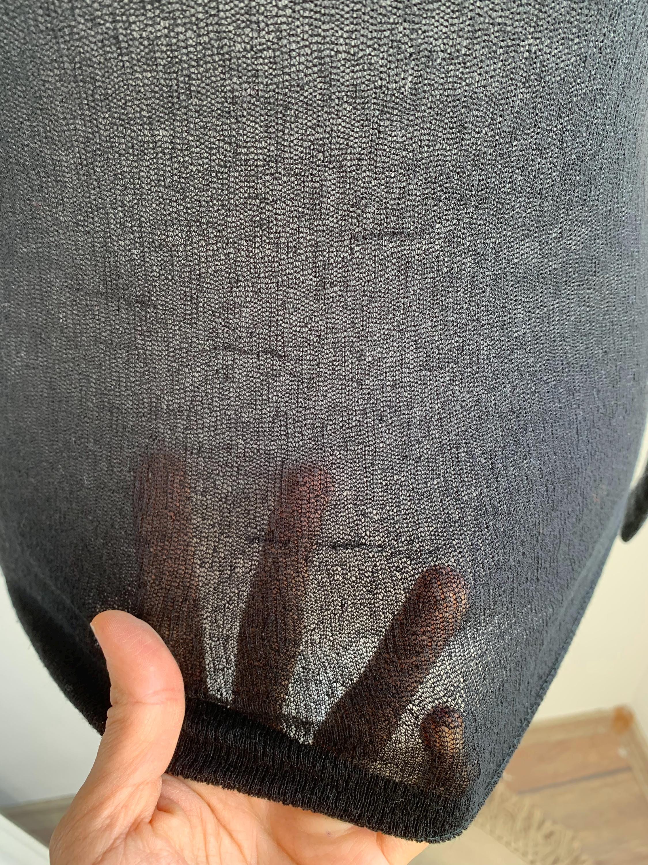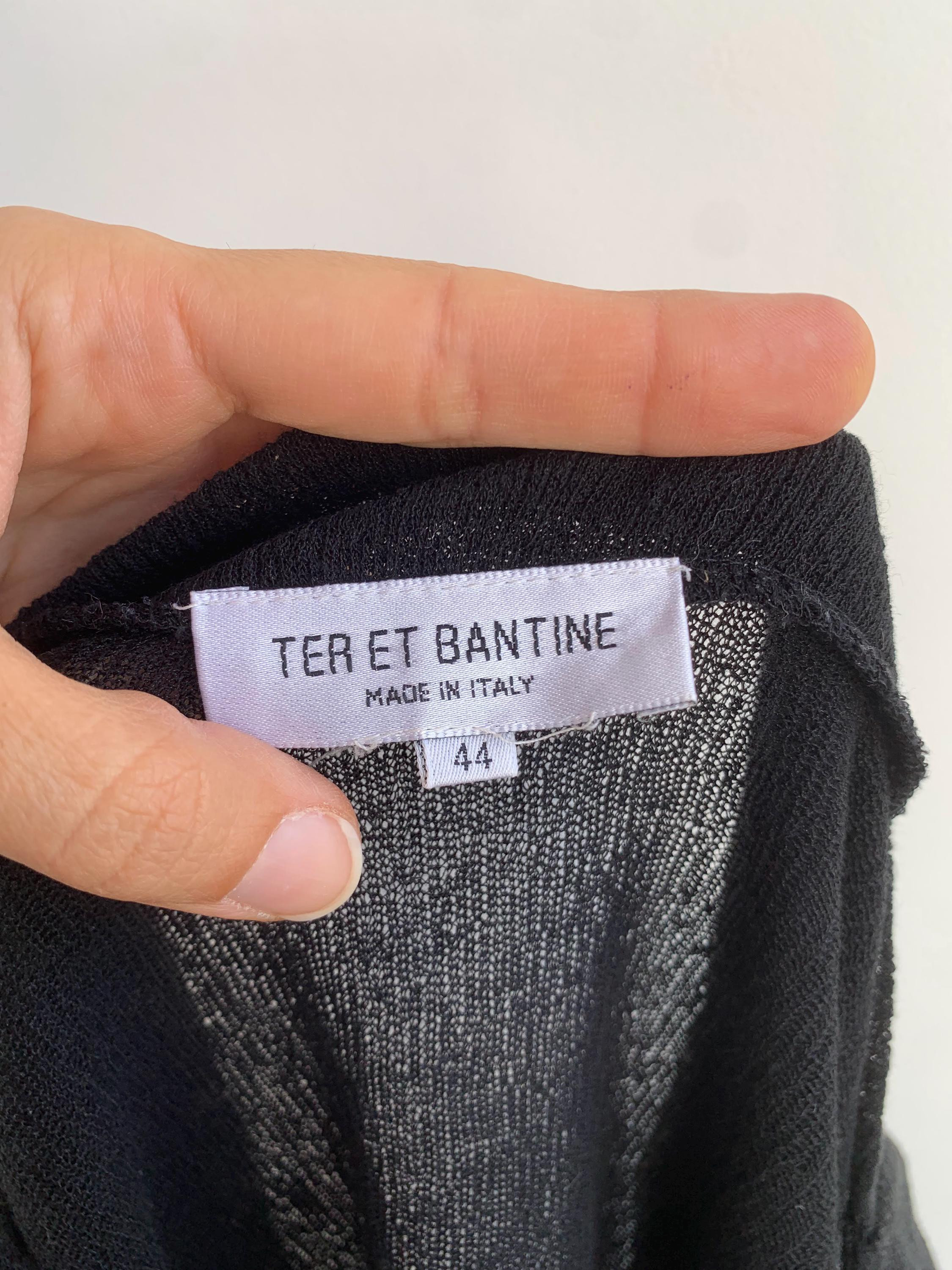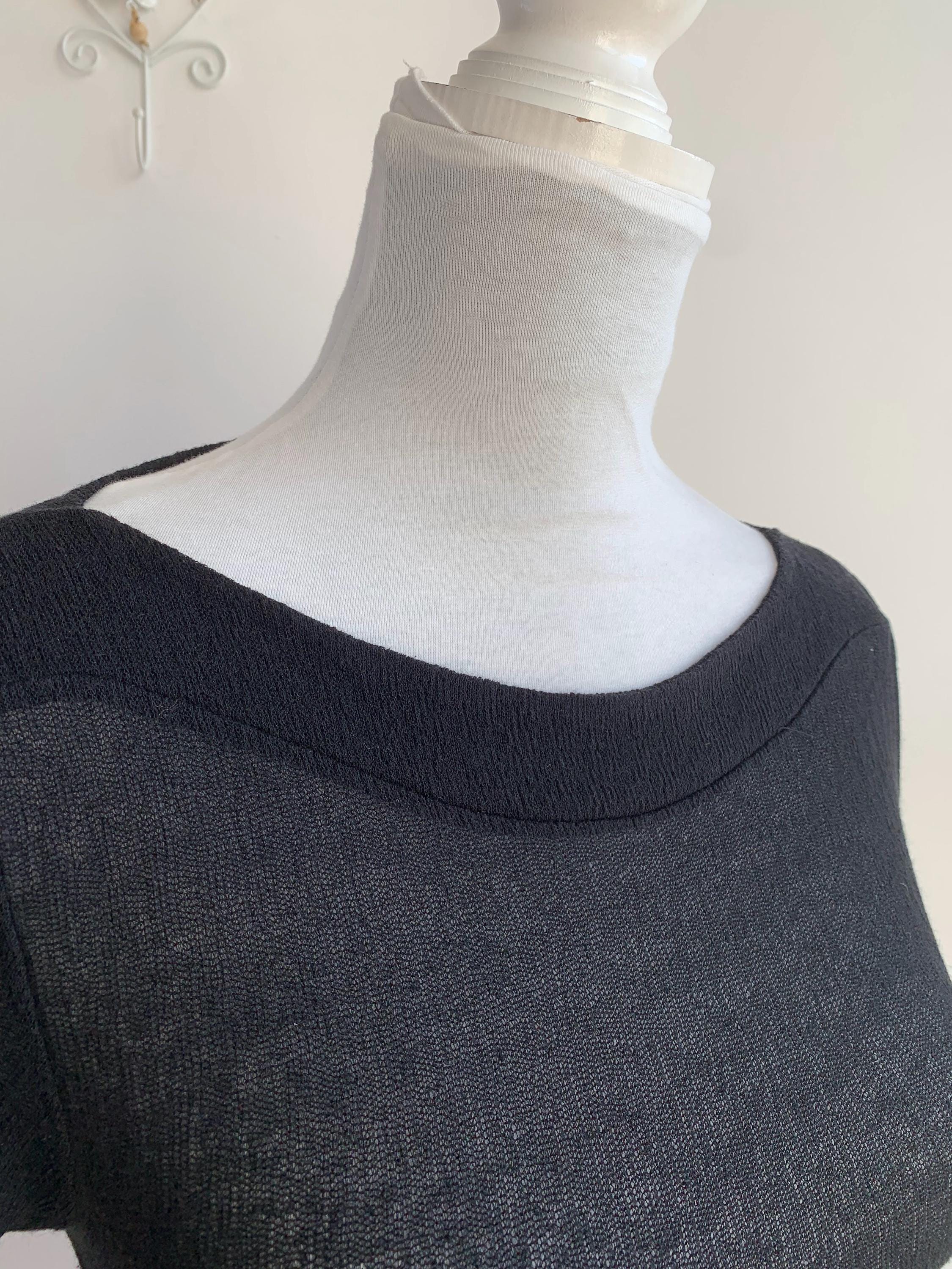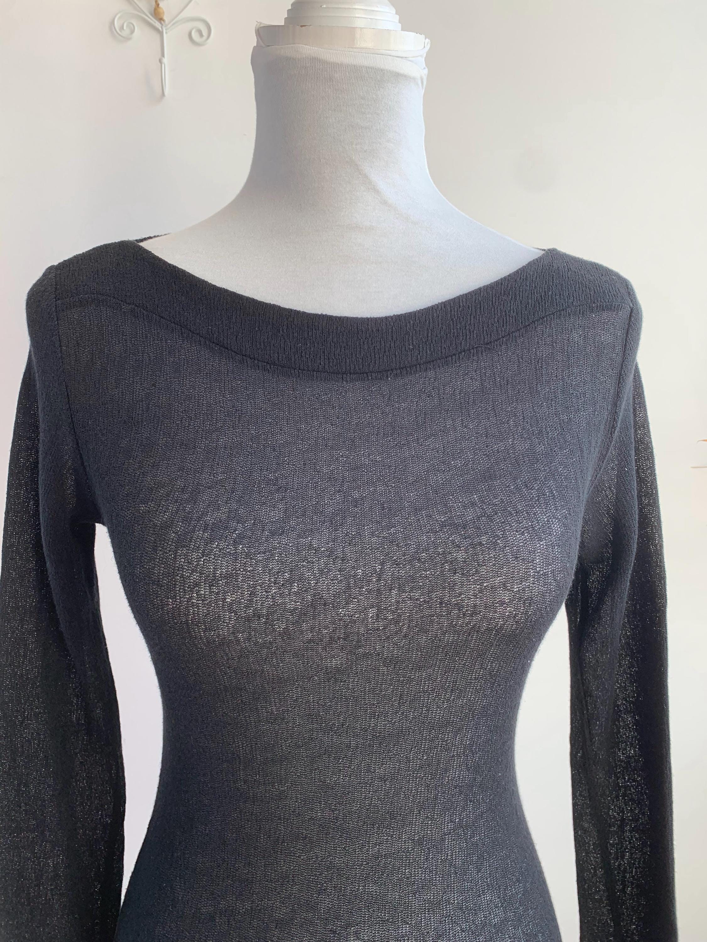 This is a vintage Ter et Bantine sheer black long sleeve sweater with boat neck in size S. This Italian fashion mesh sweater is made of stretchy lightweight synthetic fabric which has a textured finish and a good bit of stretch. This mesh lightweight sweater is perfect for the spring/ fall season. Perfect semi sheer sweater for any occasion to achieve a minimalist look. This see through blouse has size 44 marked on the label. It fits like size S. It was made in Italy. Please check the measurements below.