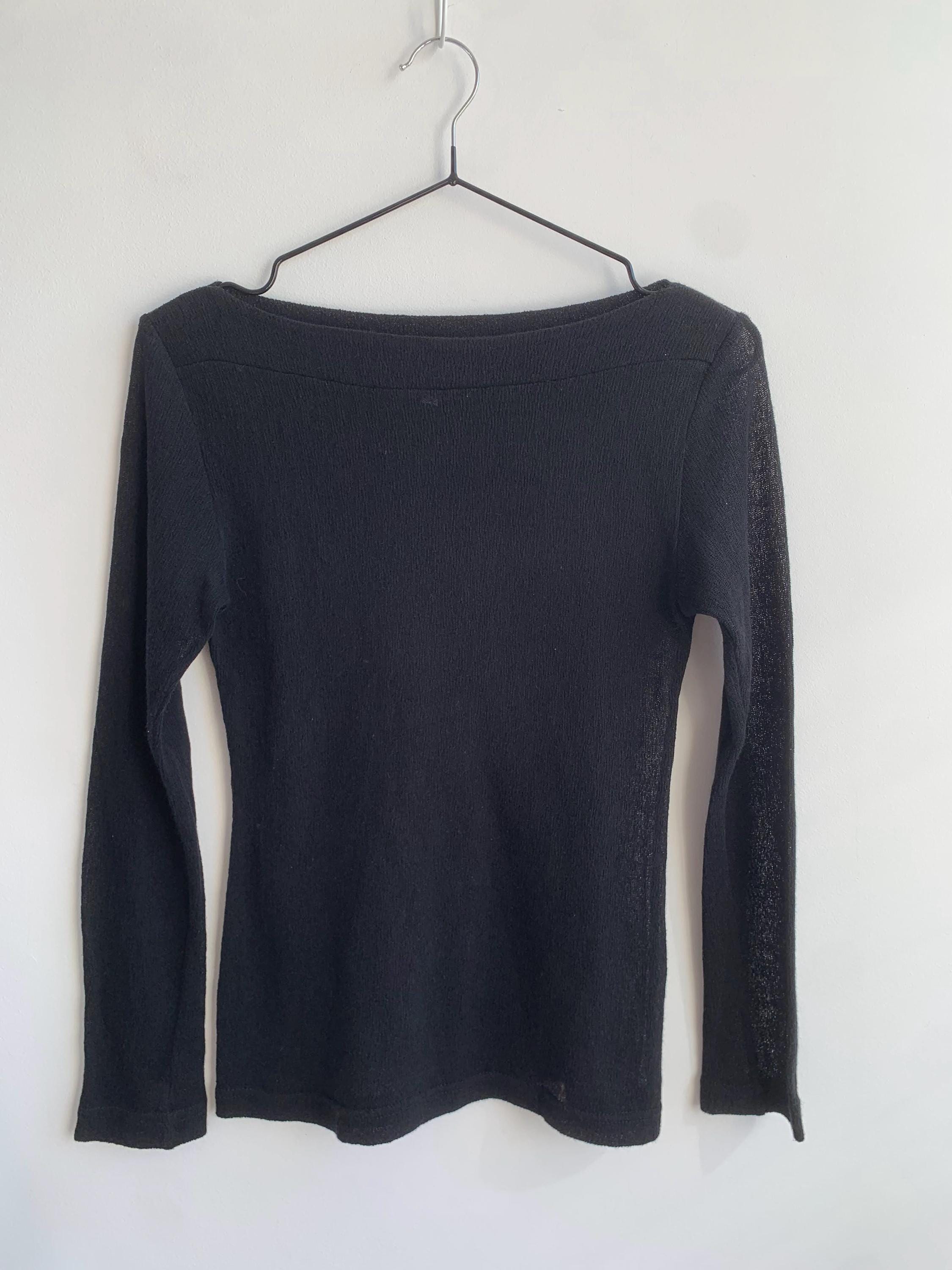 ✨ Condition: this black boat neck sweater is in good pre-loved condition some signs of wear - there are a couple of pulled threads at the back as shown in the last close up.