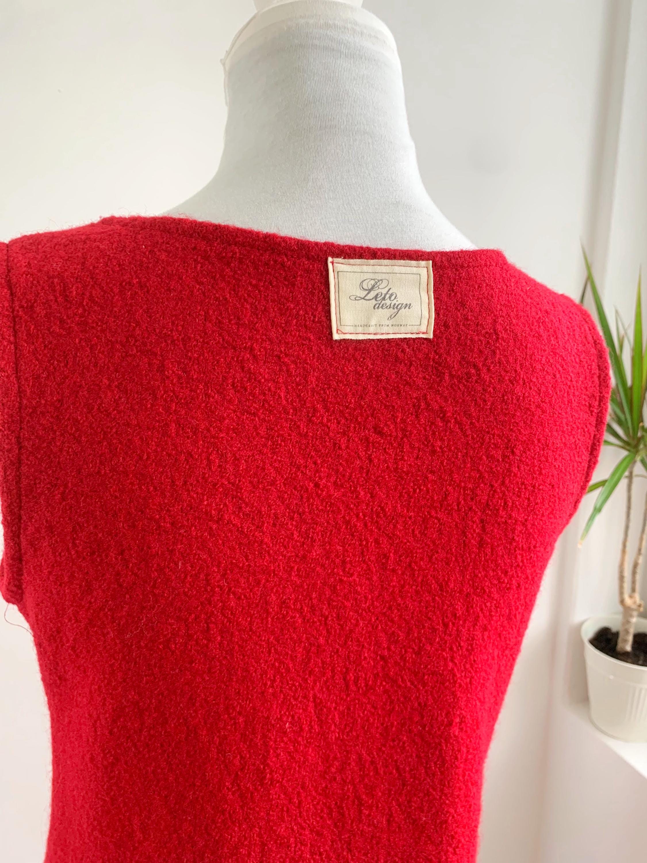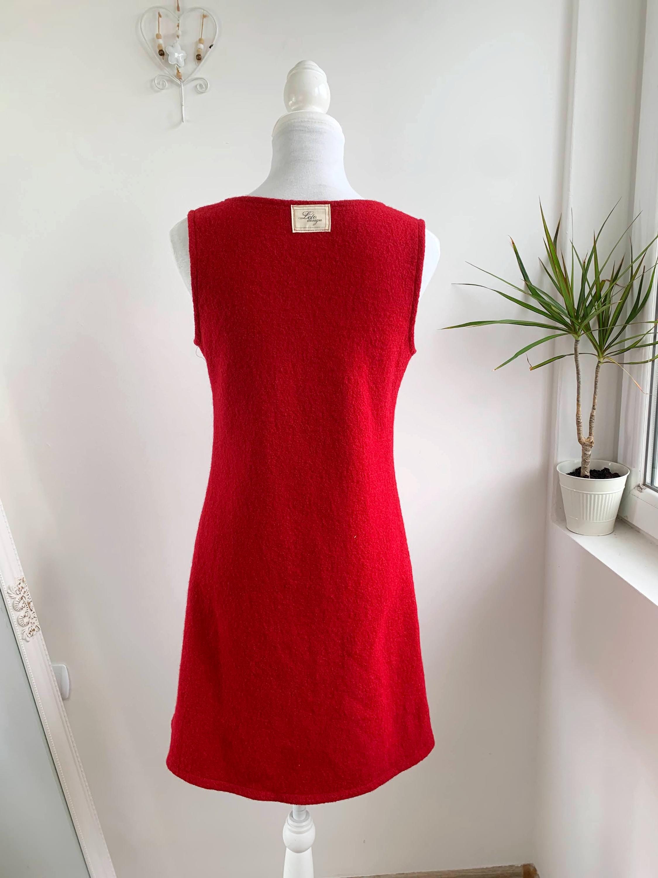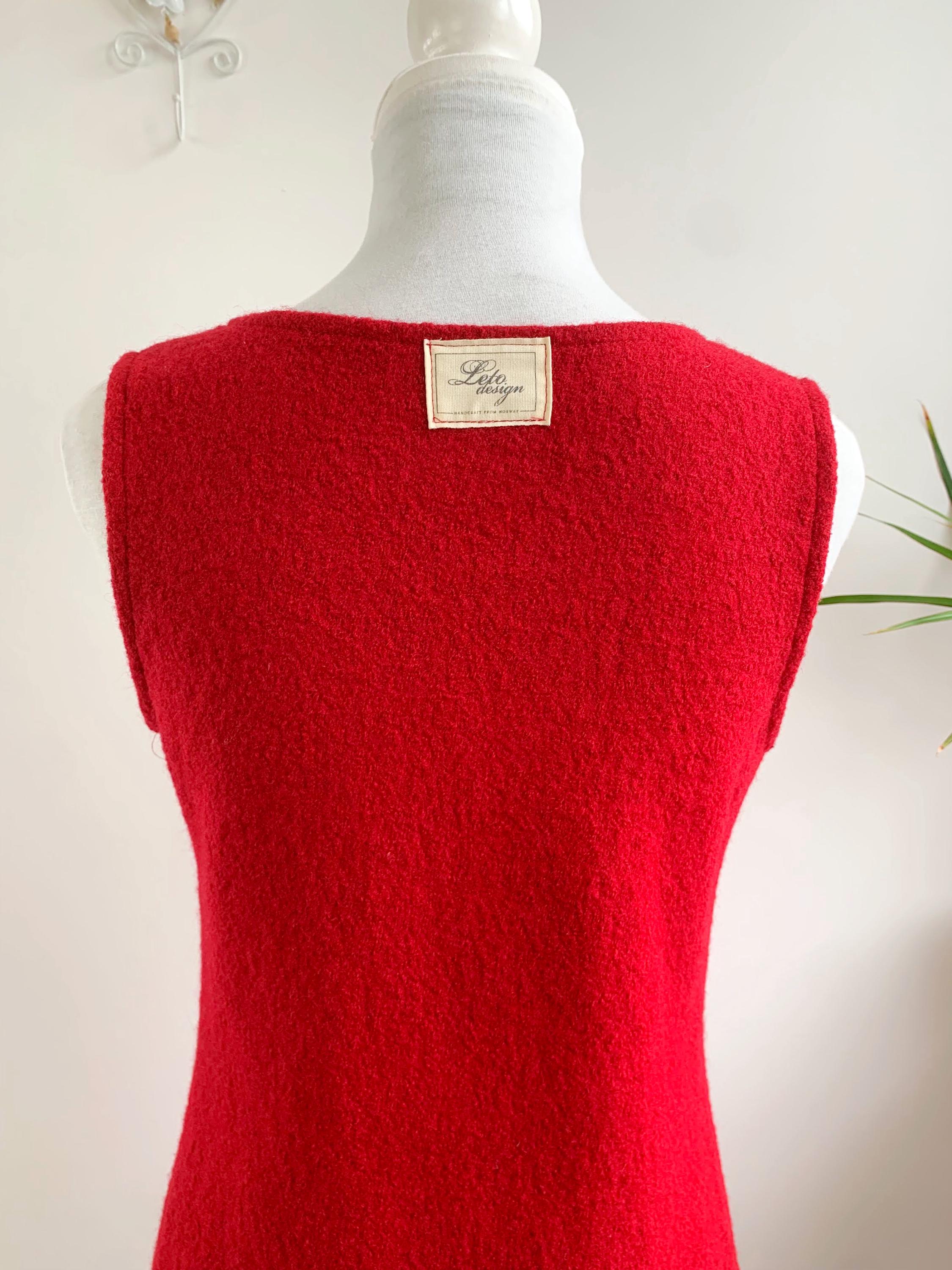 Fall in love with this rare and charming vintage wool dress from Leto Design Norway. Handcrafted in Norway, this Scandi-style tunic captures the spirit of traditional Nordic textile design with a delightful, playful twist. The piece is made from a rich, felted red wool with a wonderful texture, providing both warmth and a chic structure.
