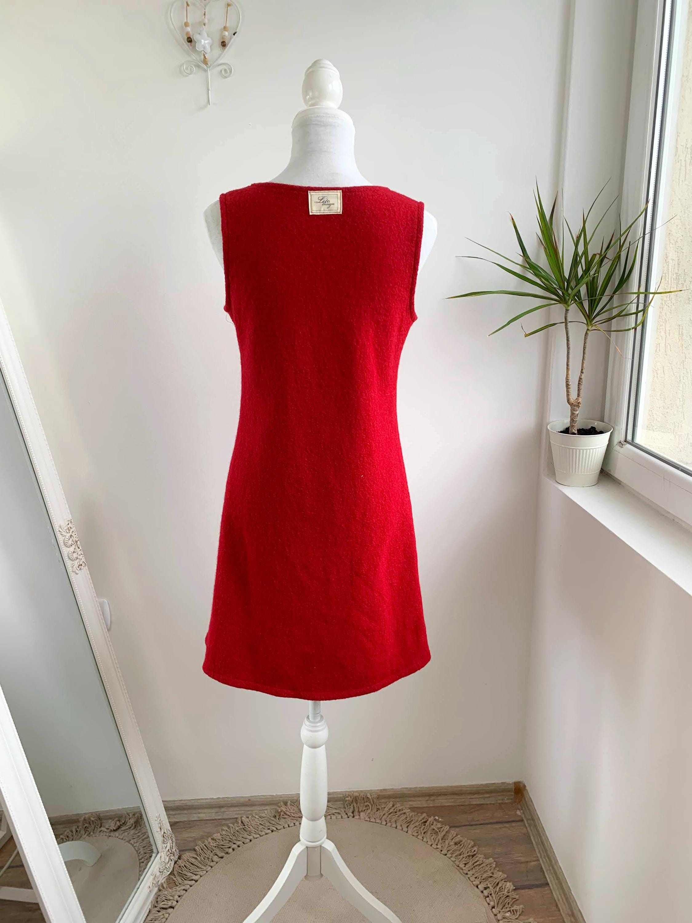 This red wool dress is a truly unique addition to any vintage collector's wardrobe. It's ideal for Valentine's Day, Christmas, or simply for adding a pop of cozy, artistic color to your everyday wear.