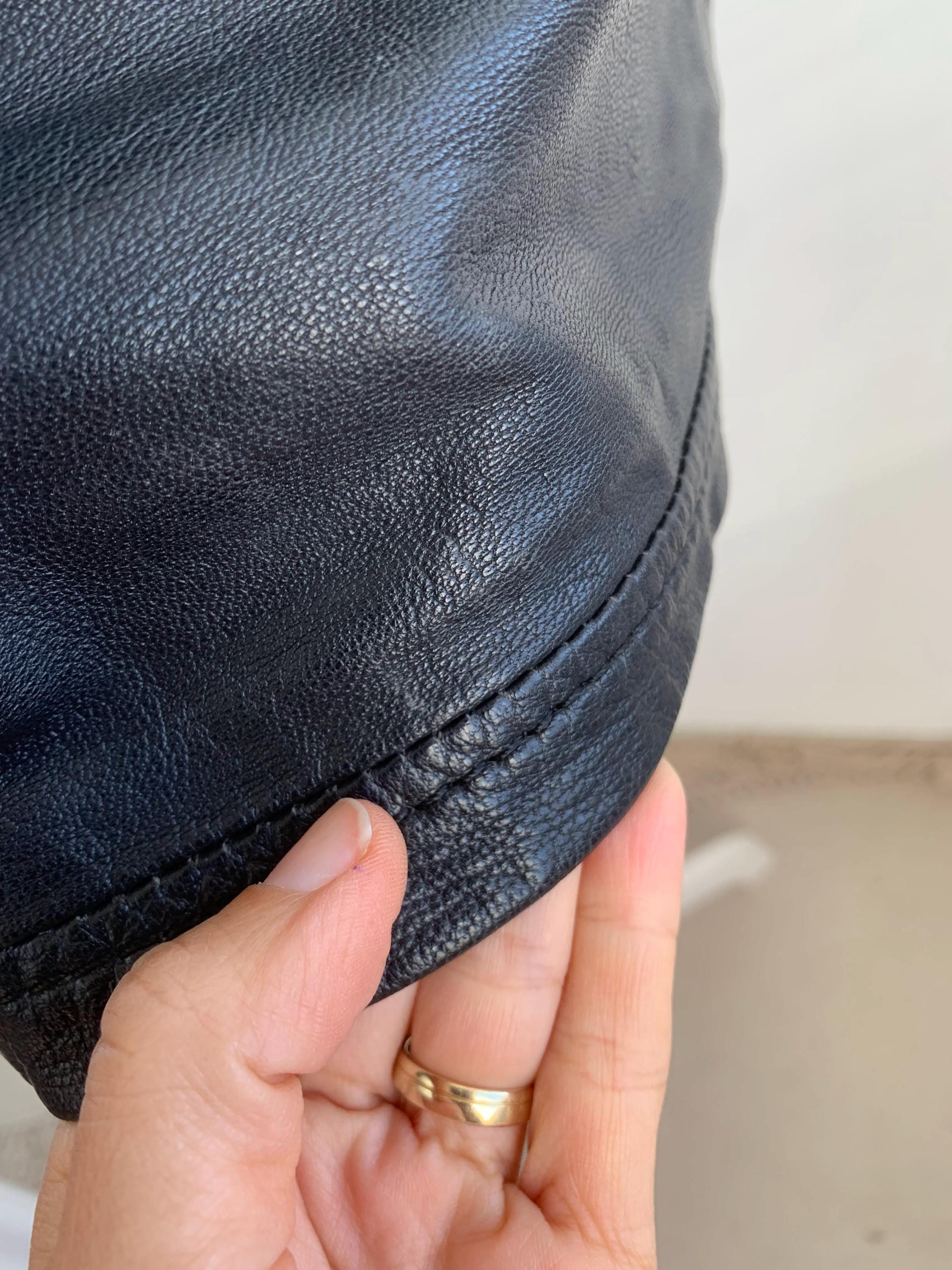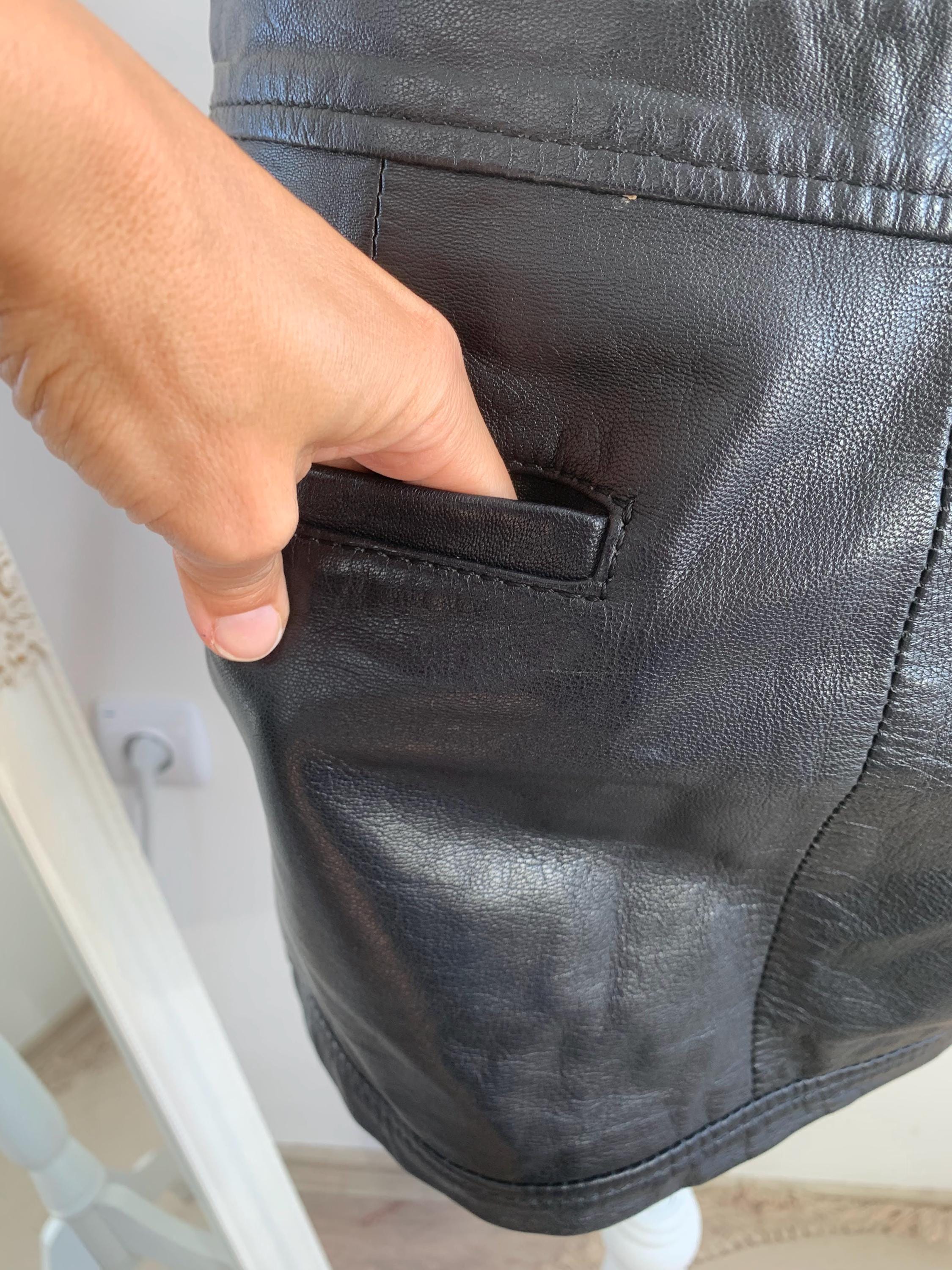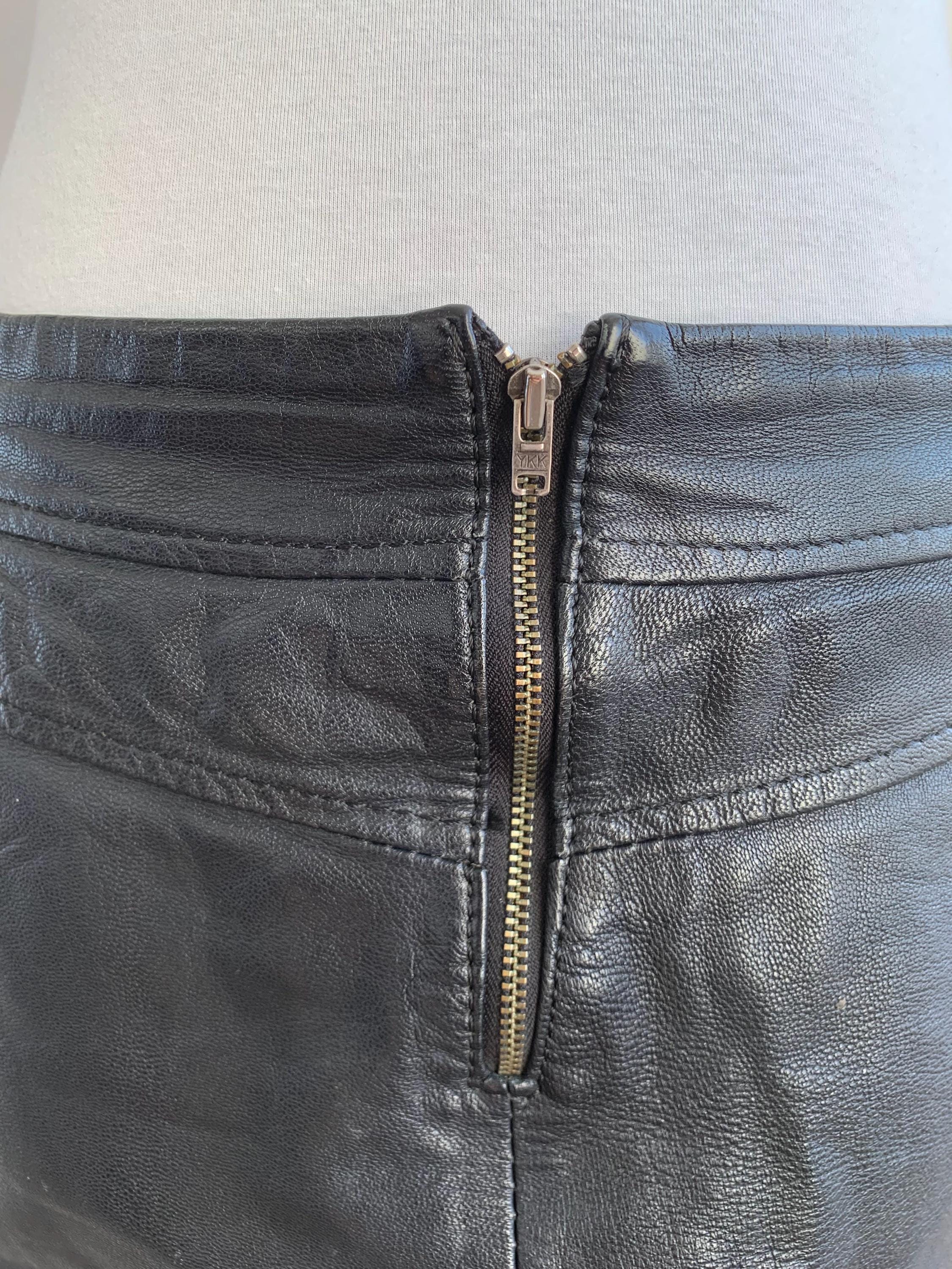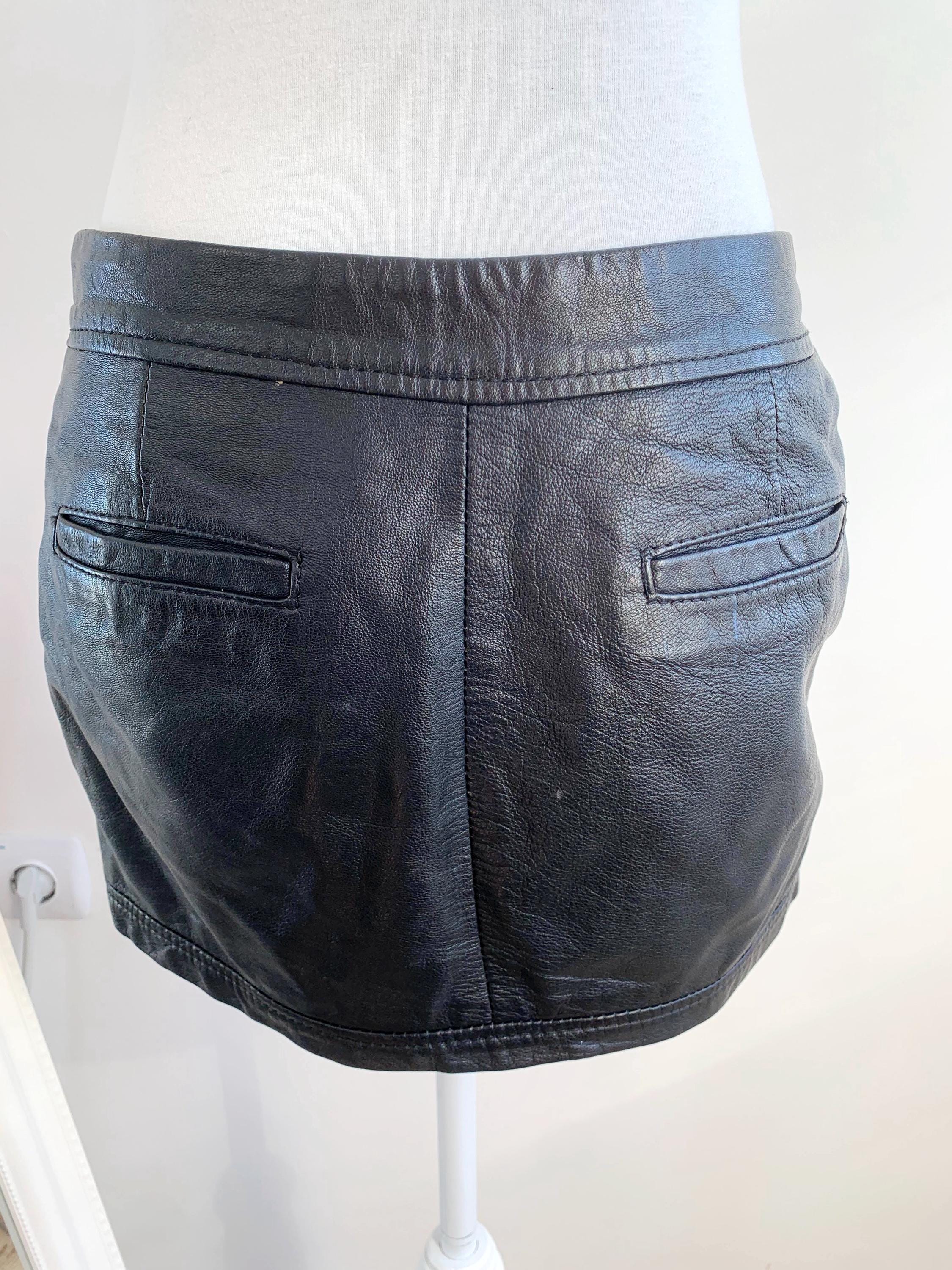 Step out in early 2000s style with this VILA black genuine leather mini skirt in size S! This is a genuine vintage essential that perfectly captures the Y2K fashion and grunge aesthetics. Made from soft, 100% goat leather, this low rise mini skirt is built for a chic, high-impact look, whether you're hitting a festival, a club, or rocking a casual biker grunge vibe. The genuine leather material will only get better with age, making this a true investment piece for your closet. It features a visible front zipper detail and is fully lined for comfort. A great find for any fan of vintage leather clothing and punk rock style!