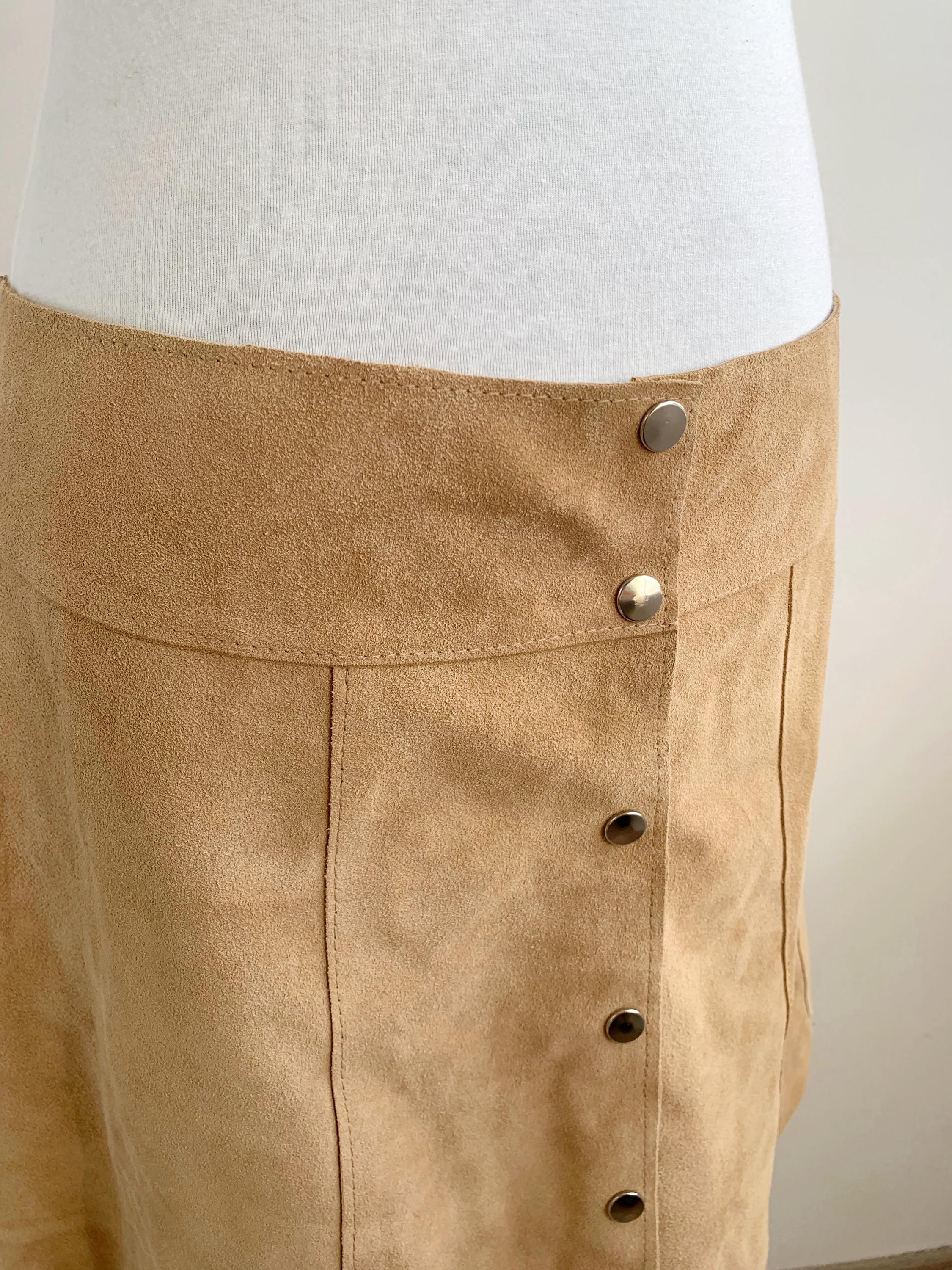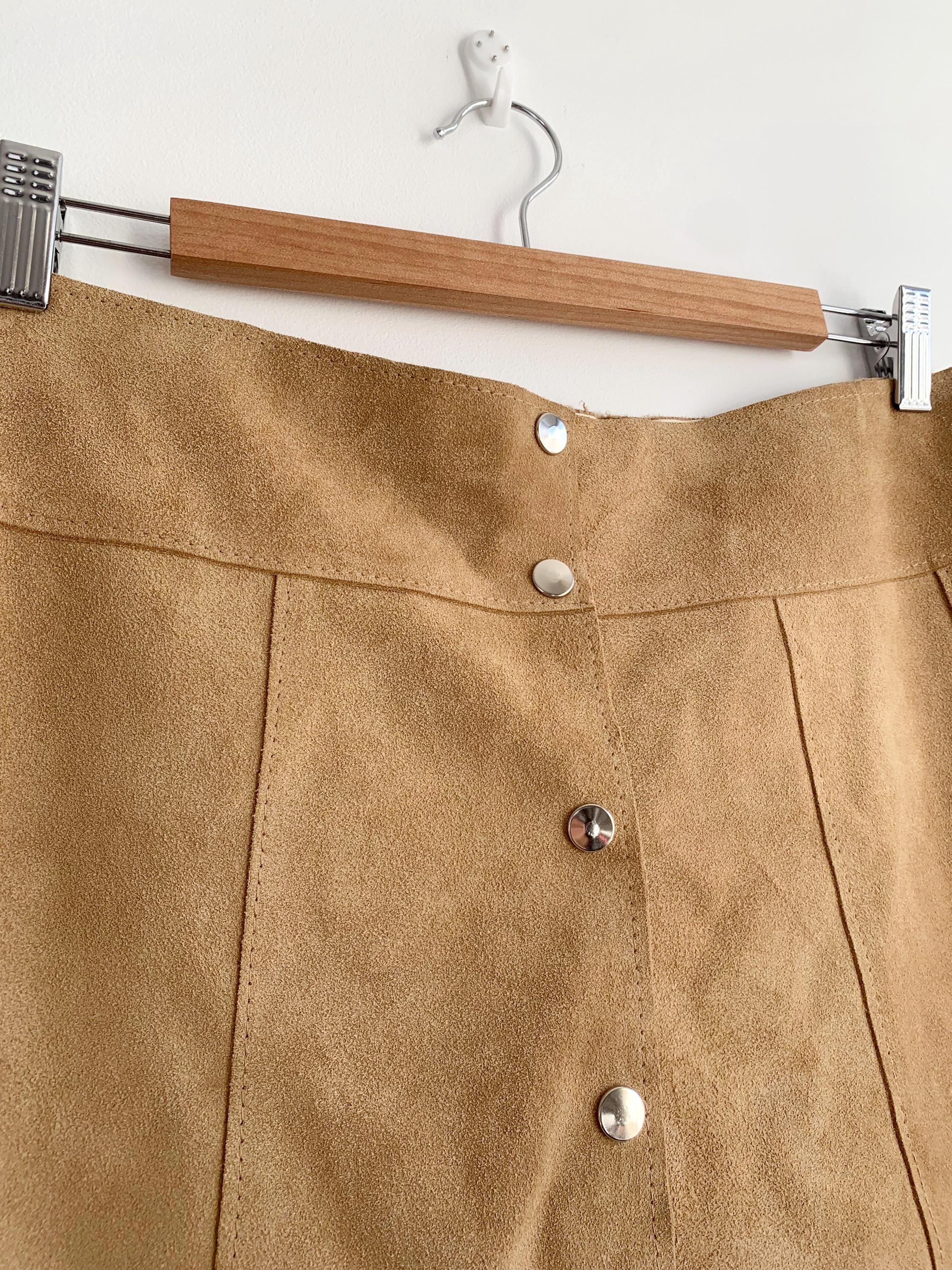 Sourced for its exceptional quality, this genuine leather suede skirt is a versatile investment. Pair this durable, high-quality piece with a fitted turtleneck and knee-high boots for a sophisticated look, or embrace the Western style trend with a flowing blouse and ankle boots for your next festival or outdoor event. With it's snap button up front closure, this skirt is a true vintage gem. An ideal find for lovers of sustainable fashion, authentic boho clothing, or a unique gift for her. Please ensure you check the precise measurements below for the best fit!