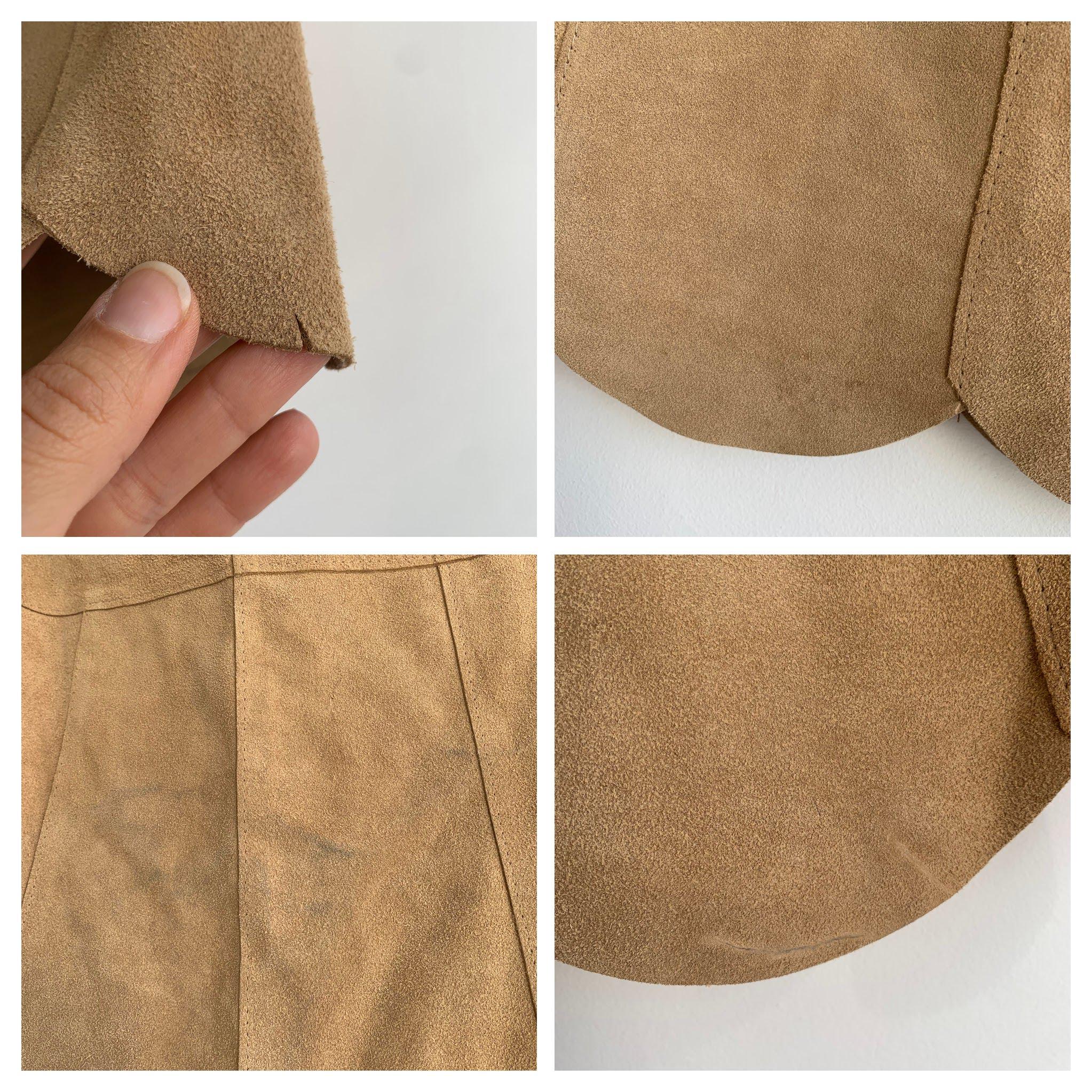 ✨ Condition: Great pre-loved vintage condition with some signs of wear consistent with age - some marks typical for suede pieces, a small cut on the leather at the scalloped edge. Suede is soft and supple. Ready to wear.