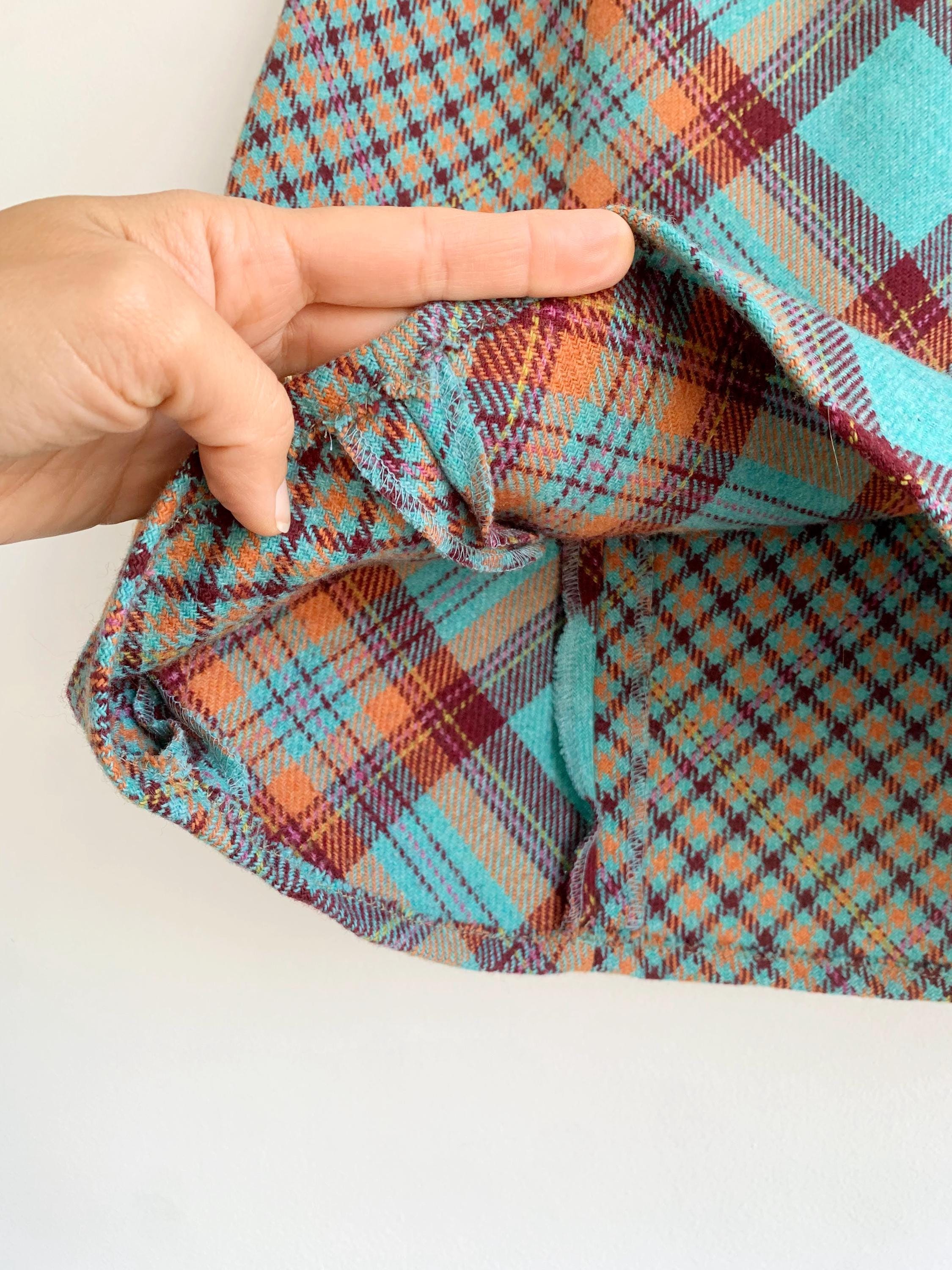 🎨 Color: Multi-color Plaid (Teal, Orange, Burgundy, Tan)
