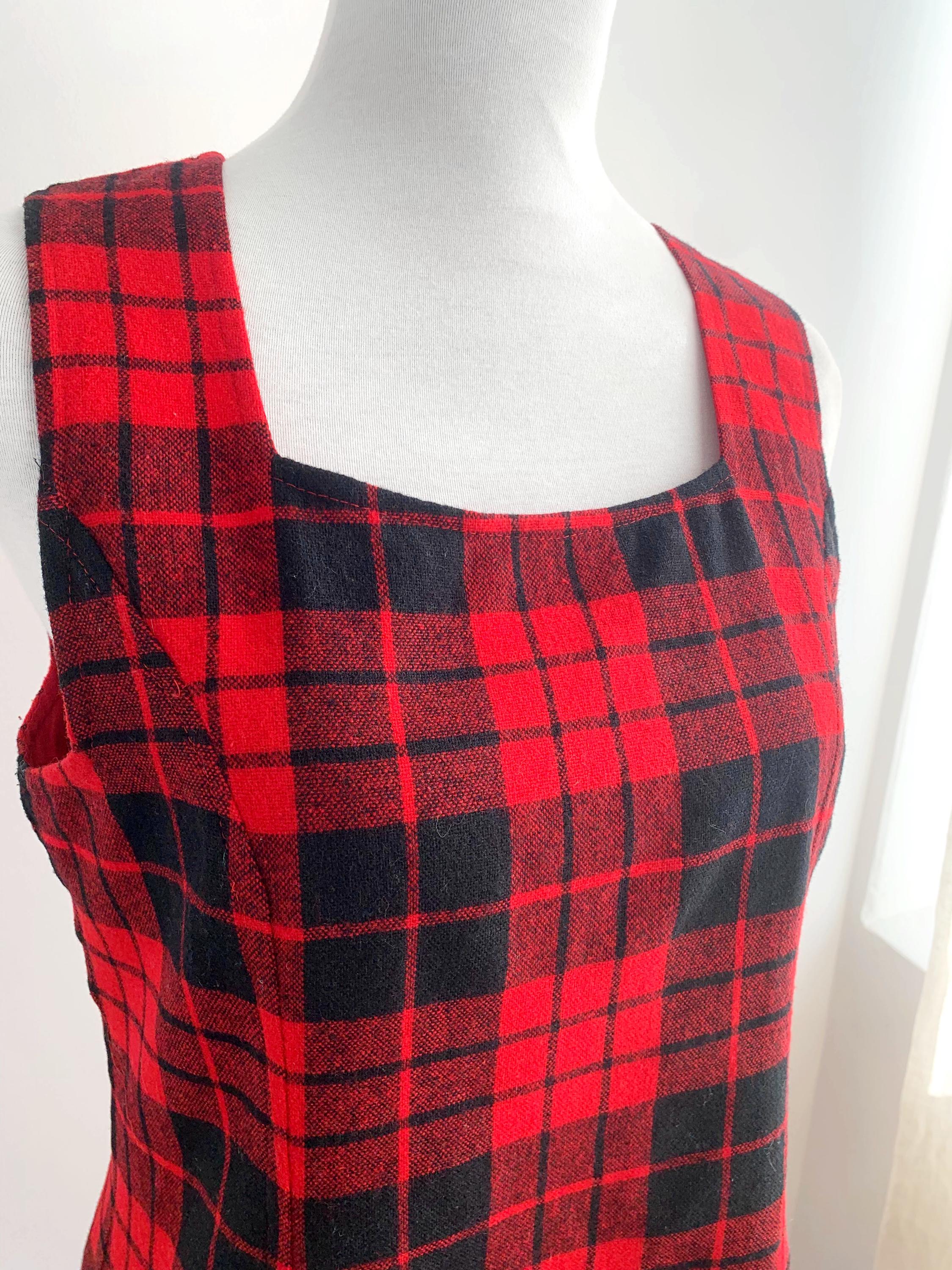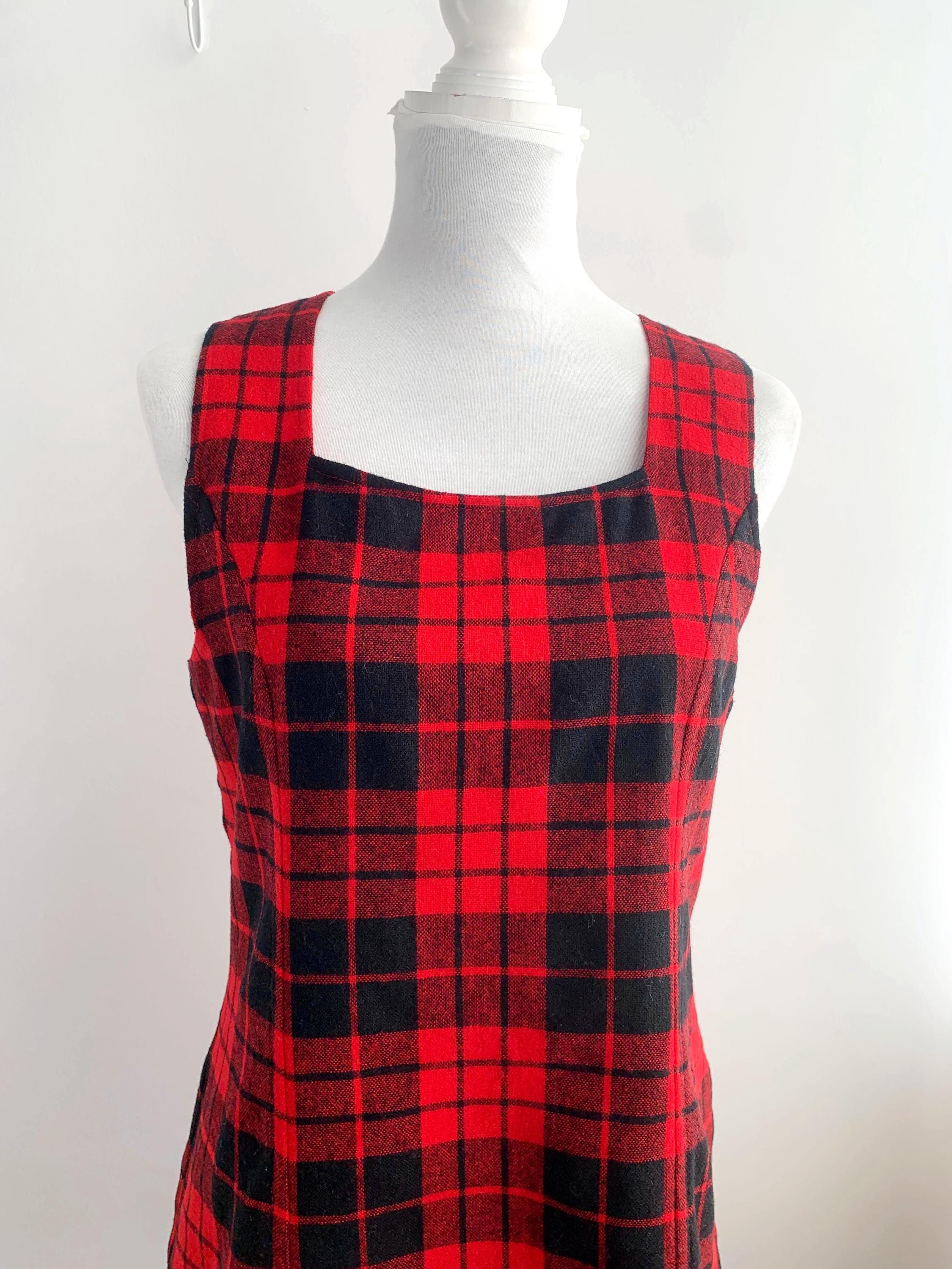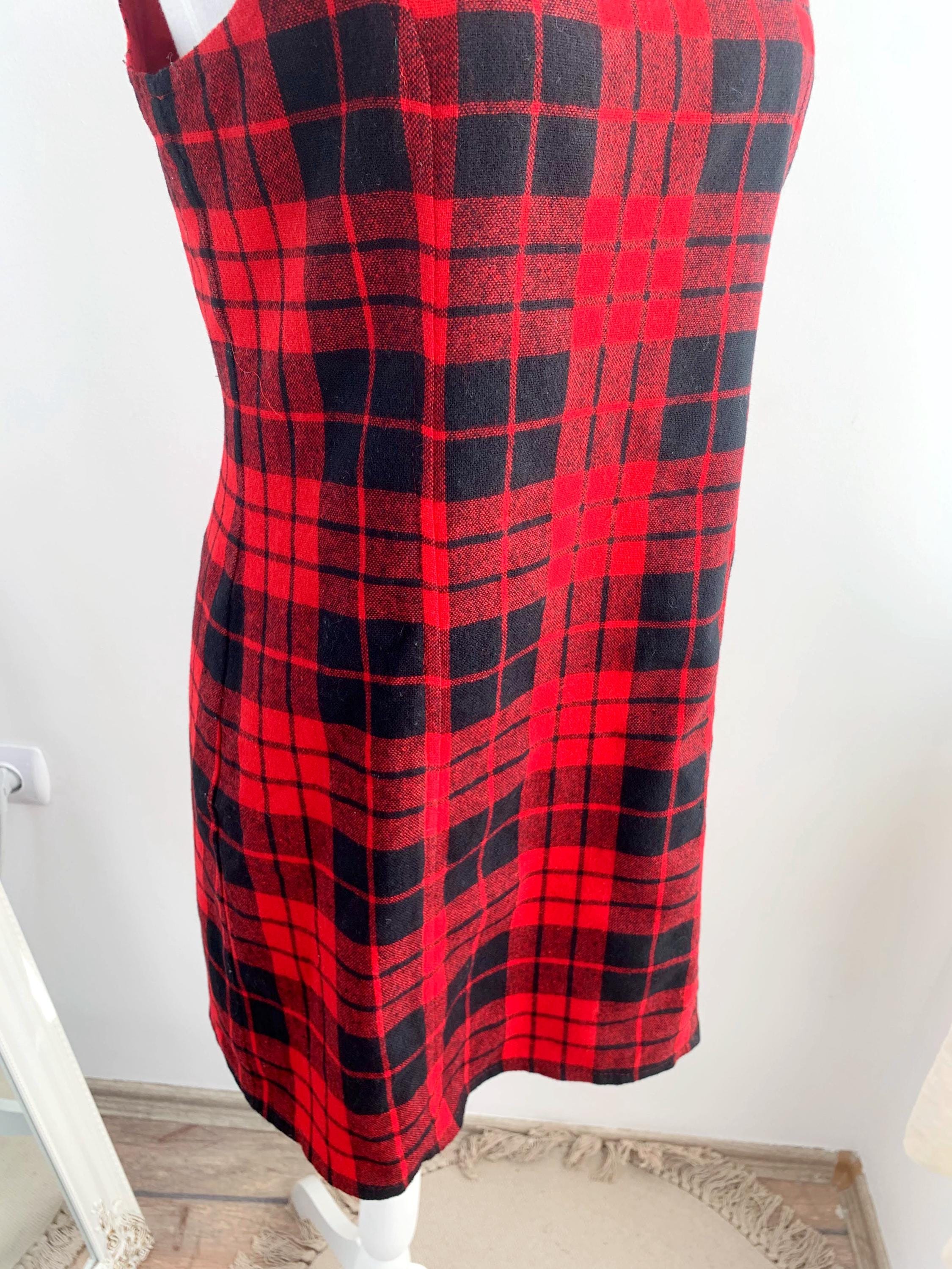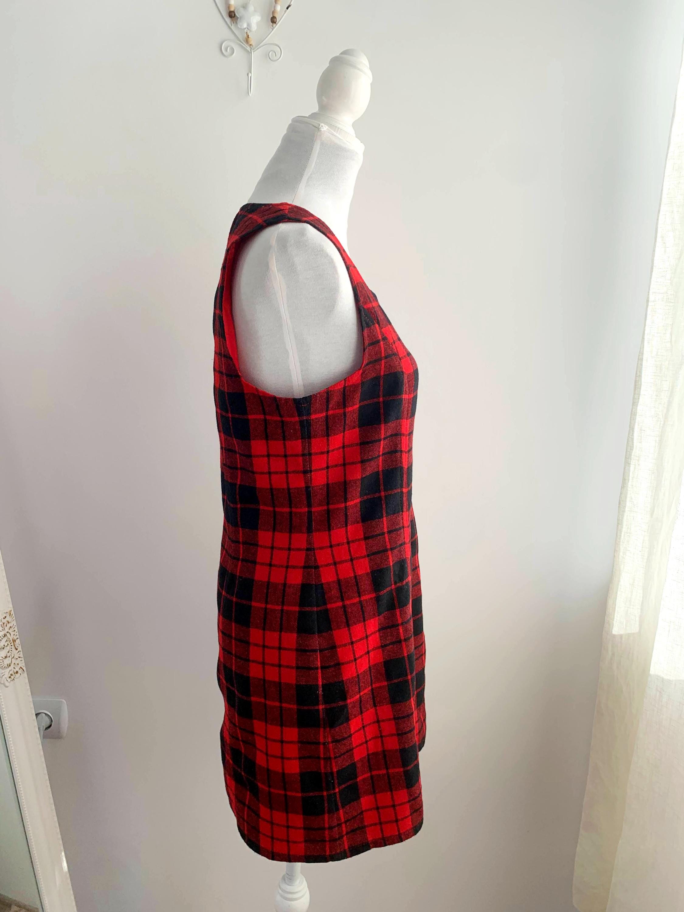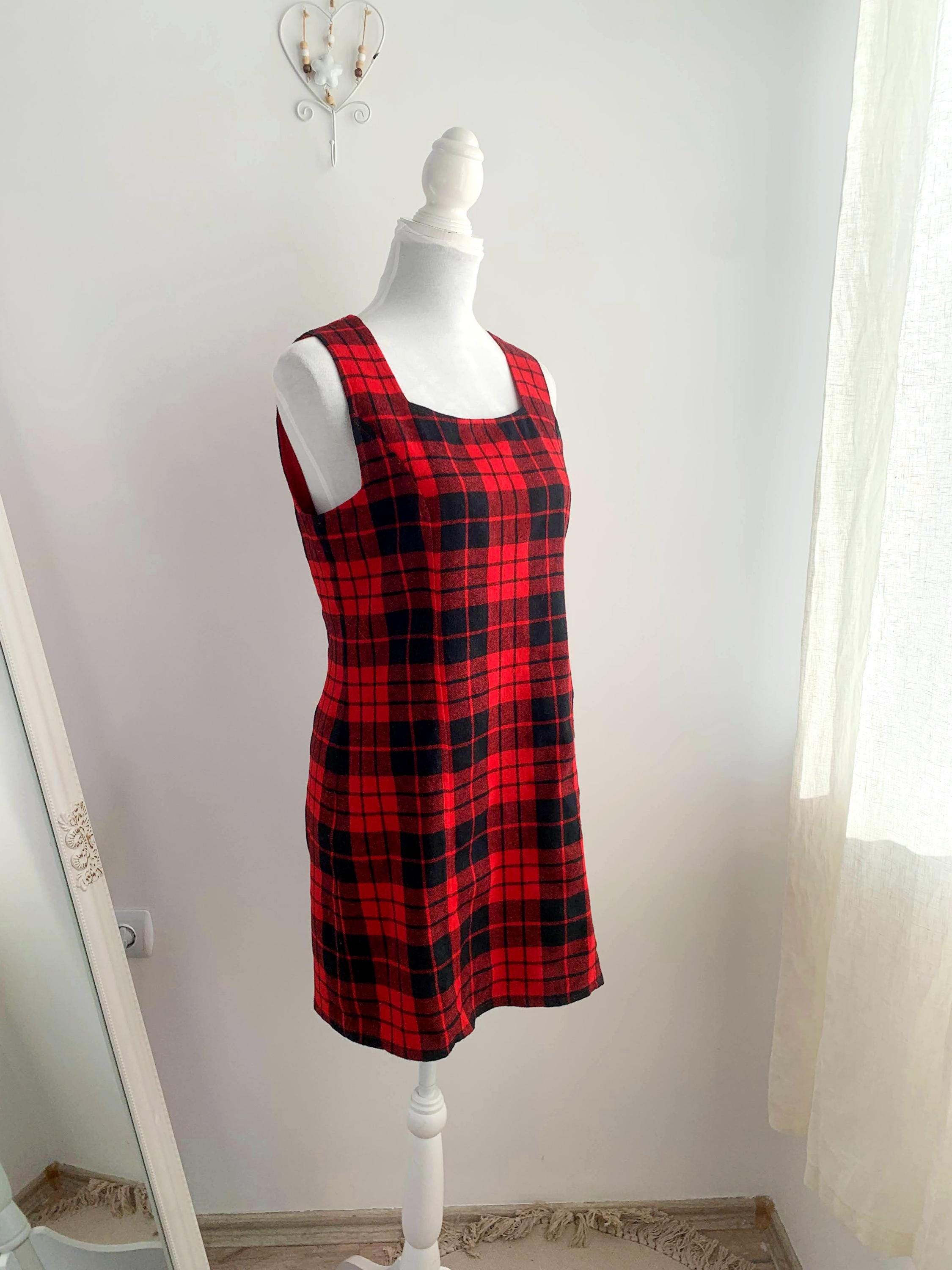Step into the iconic world of 90s fashion with this striking vintage plaid mini dress from the brand NOW OR NEVER in size M. Featuring a bold red and black tartan pattern, this dress perfectly captures the grunge, punk, and schoolgirl styles made famous by the era, making it an essential piece for any retro or sustainable fashion wardrobe.