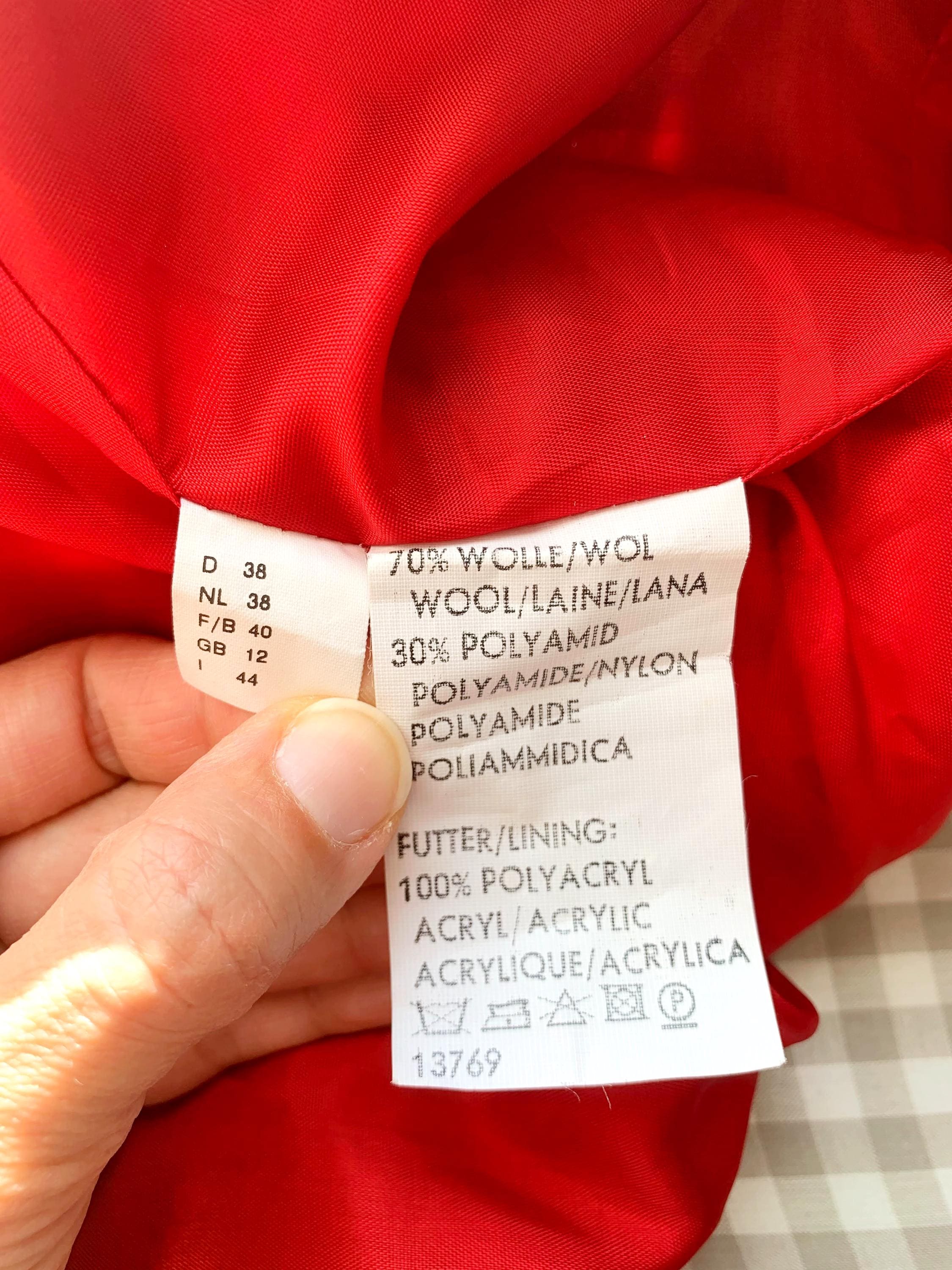 🧵 Material: Main Fabric: 70% Wool (WOLLE/LAINE/LANA), 30% Polyamide/Nylon (POLYAMIDE/NYLON). Lining: 100% Polyacryl (ACRYL/ACRYLIC).