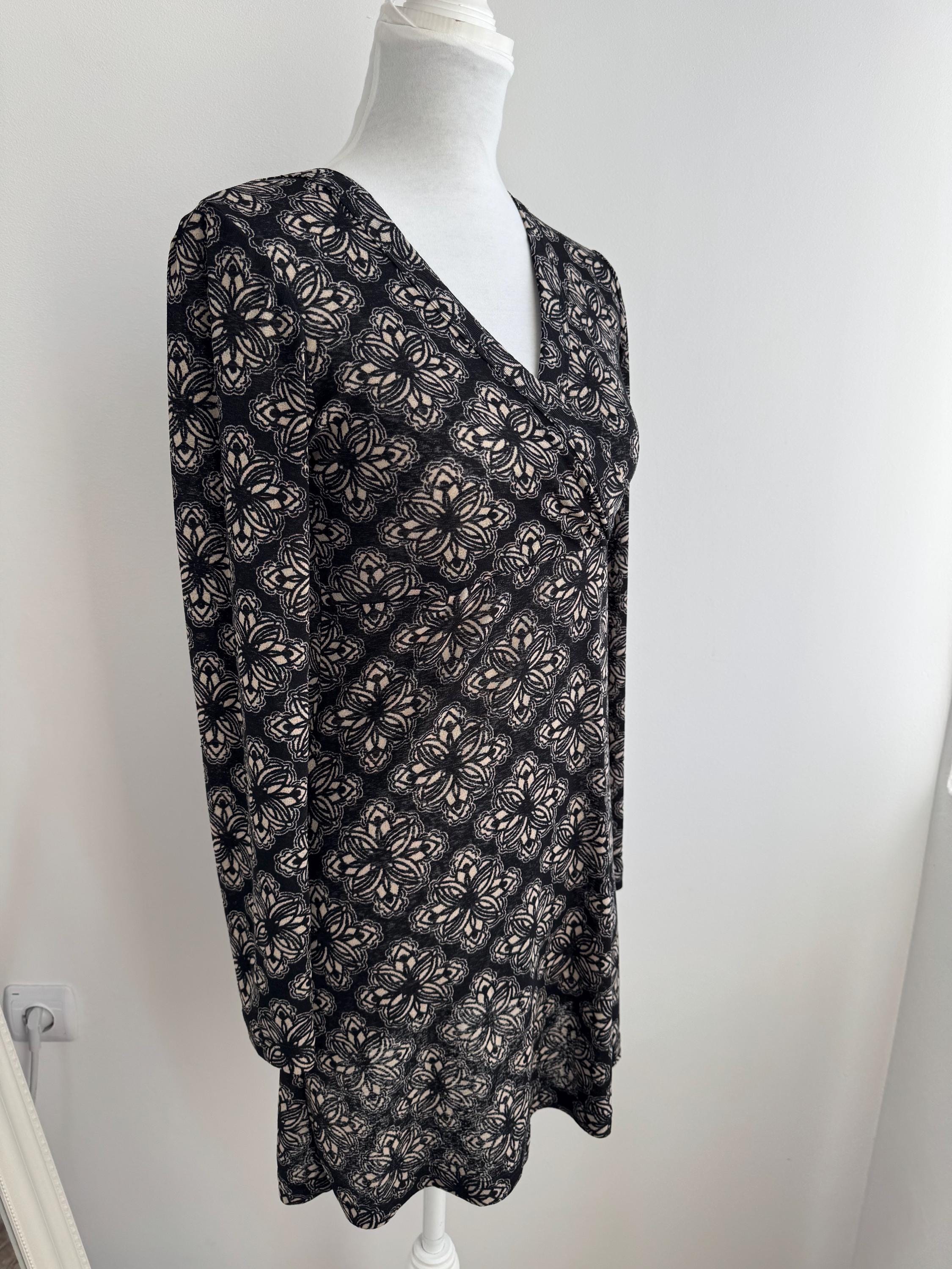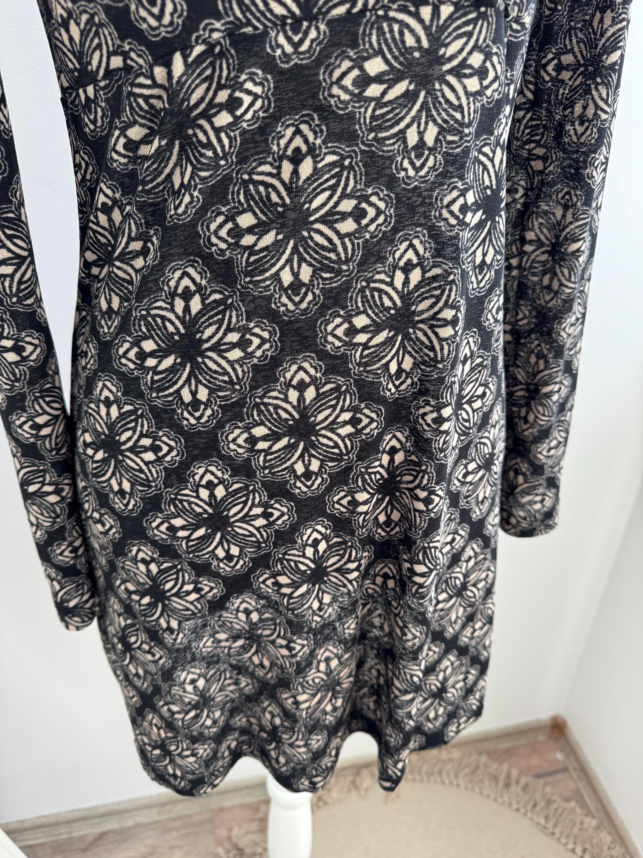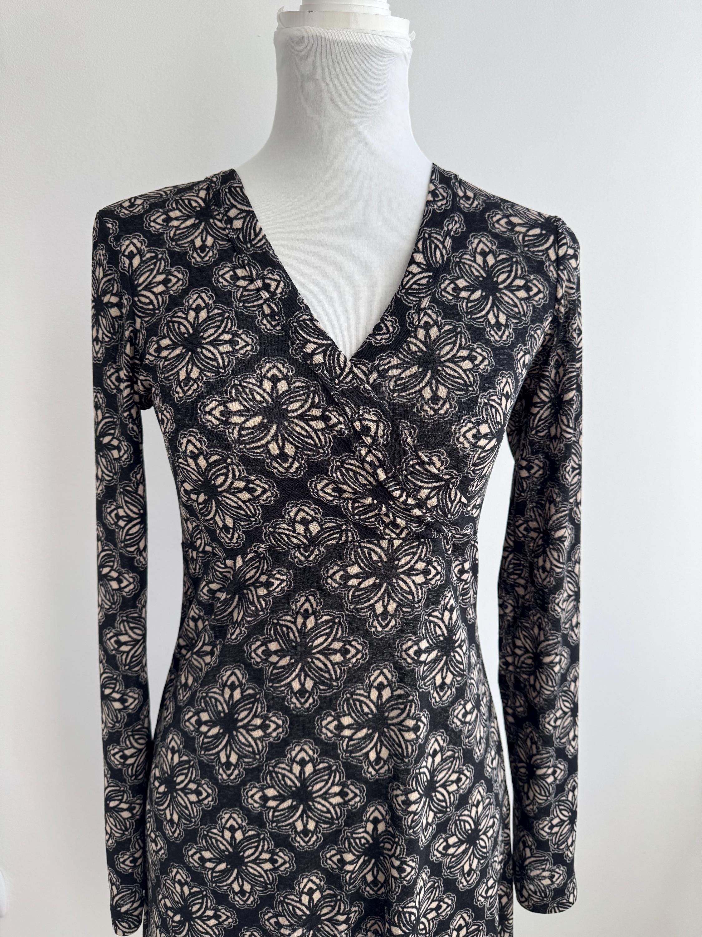 The stretchy material and the wrap style V neck allow it to mold perfectly to the body, creating a head-turning bodycon silhouette. It’s ideal for layering over a simple slip, bralette, or bandeau top to control the sheerness. Perfect for club nights, concerts, date nights, or a festival, this little black dress offers an immediate boost of confidence and unique, effortless style. It’s an easy way to own a piece of high-impact, sustainable vintage clothing.