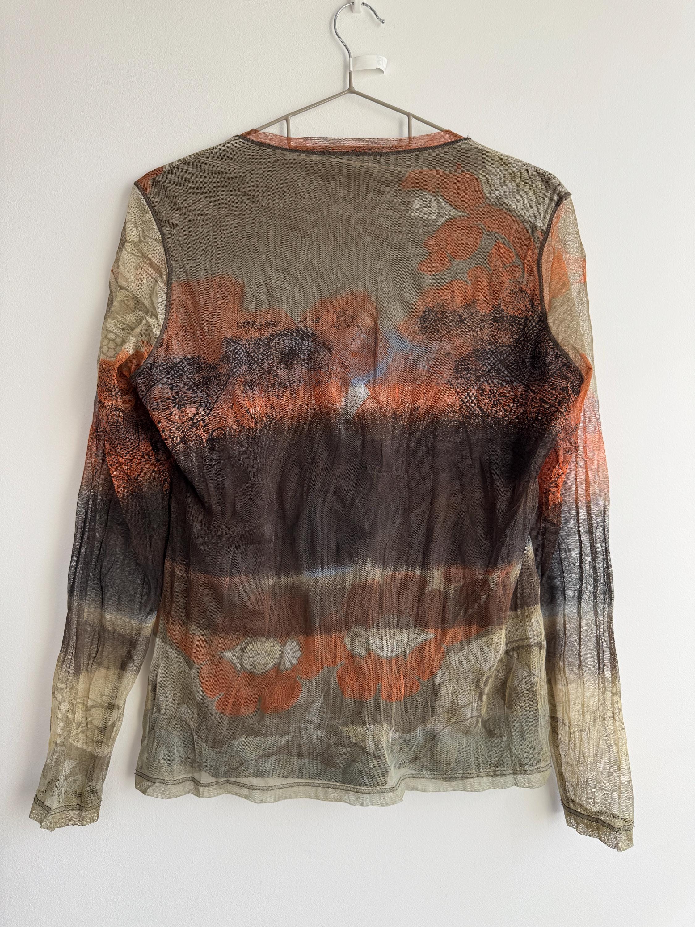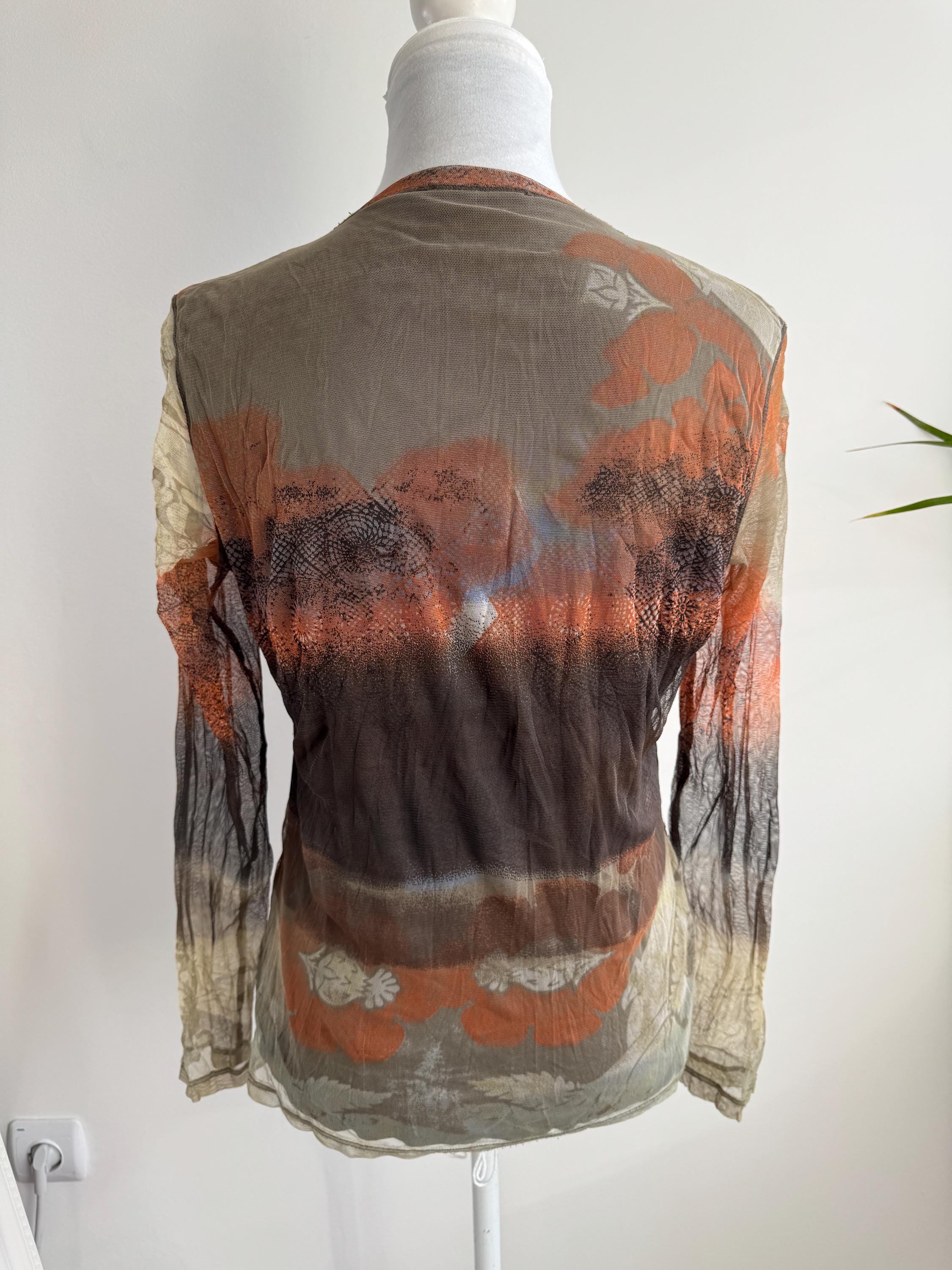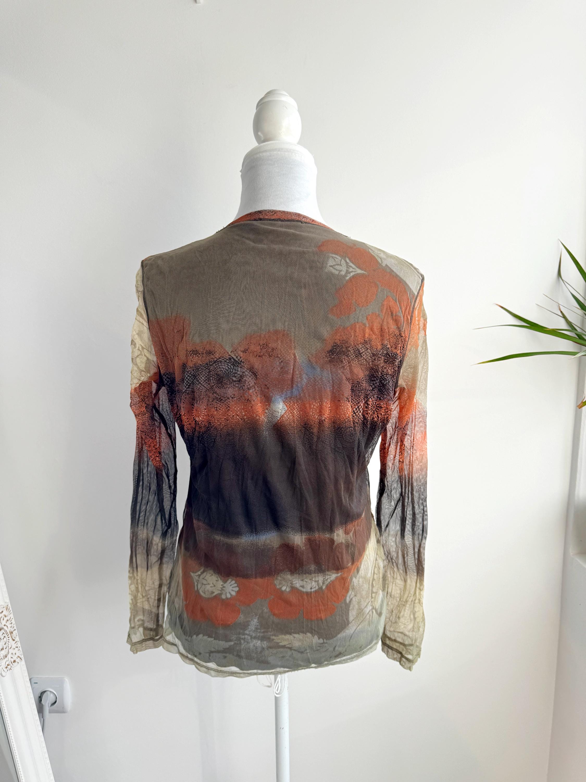 Whether you layer it under a velvet slip dress, pair it with vintage leather trousers, or wear it sheer over a simple bralette, this vintage designer mesh blouse is a versatile and authentic piece of 2000s fashion that will undoubtedly elevate your wardrobe and make you stand out from the crowd. A rare and collectible find from a quality European label.
