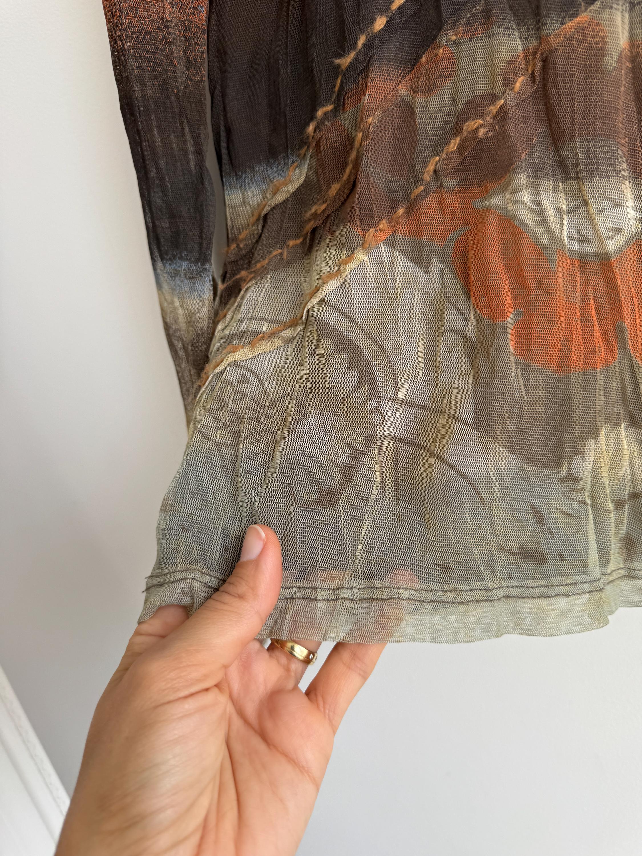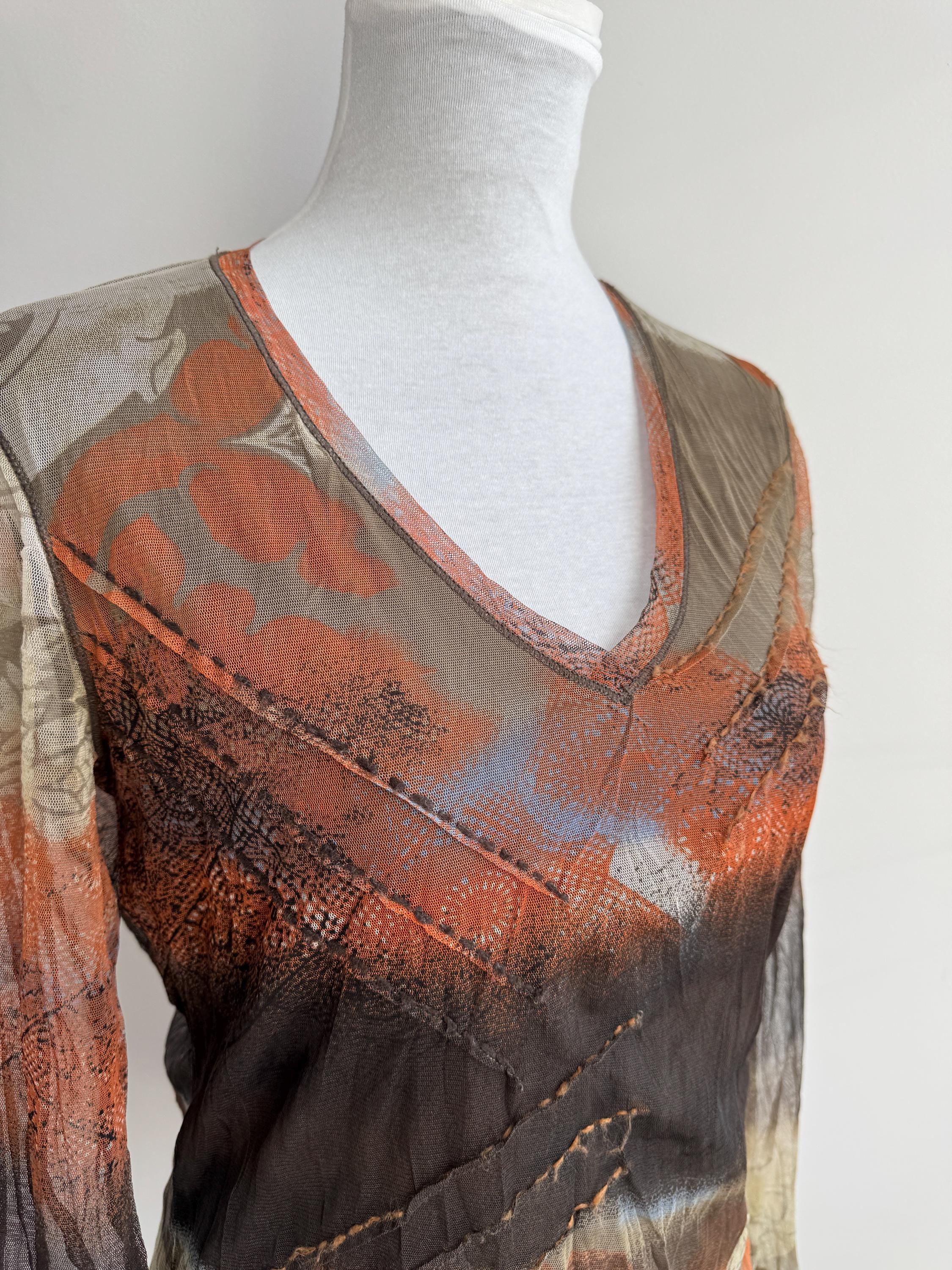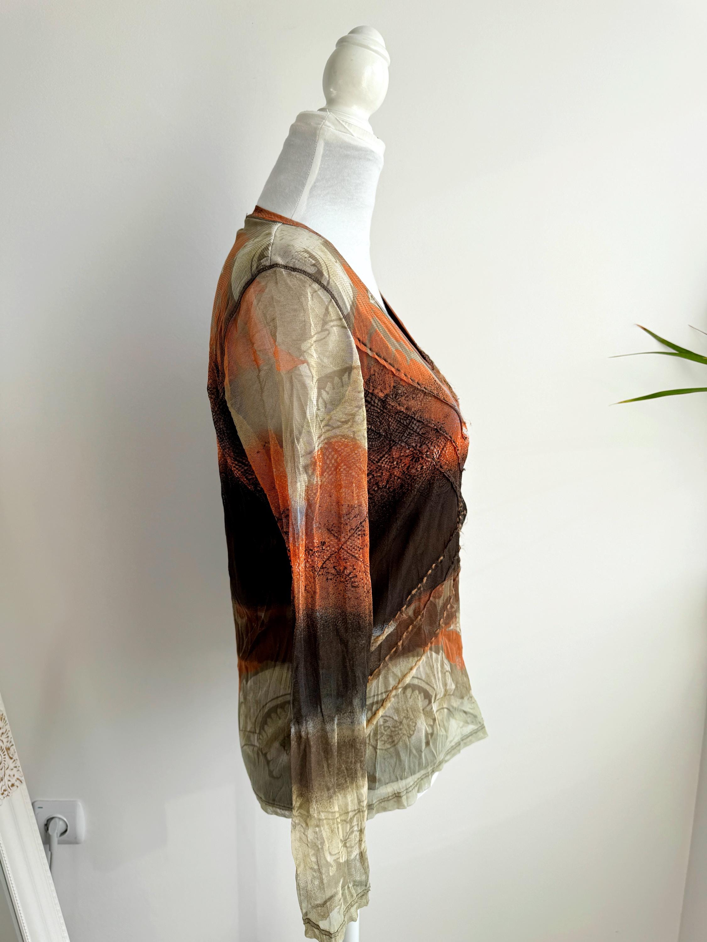 Whether you layer it under a velvet slip dress, pair it with vintage leather trousers, or wear it sheer over a simple bralette, this vintage designer mesh blouse is a versatile and authentic piece of 2000s fashion that will undoubtedly elevate your wardrobe and make you stand out from the crowd. A rare and collectible find from a quality European label.