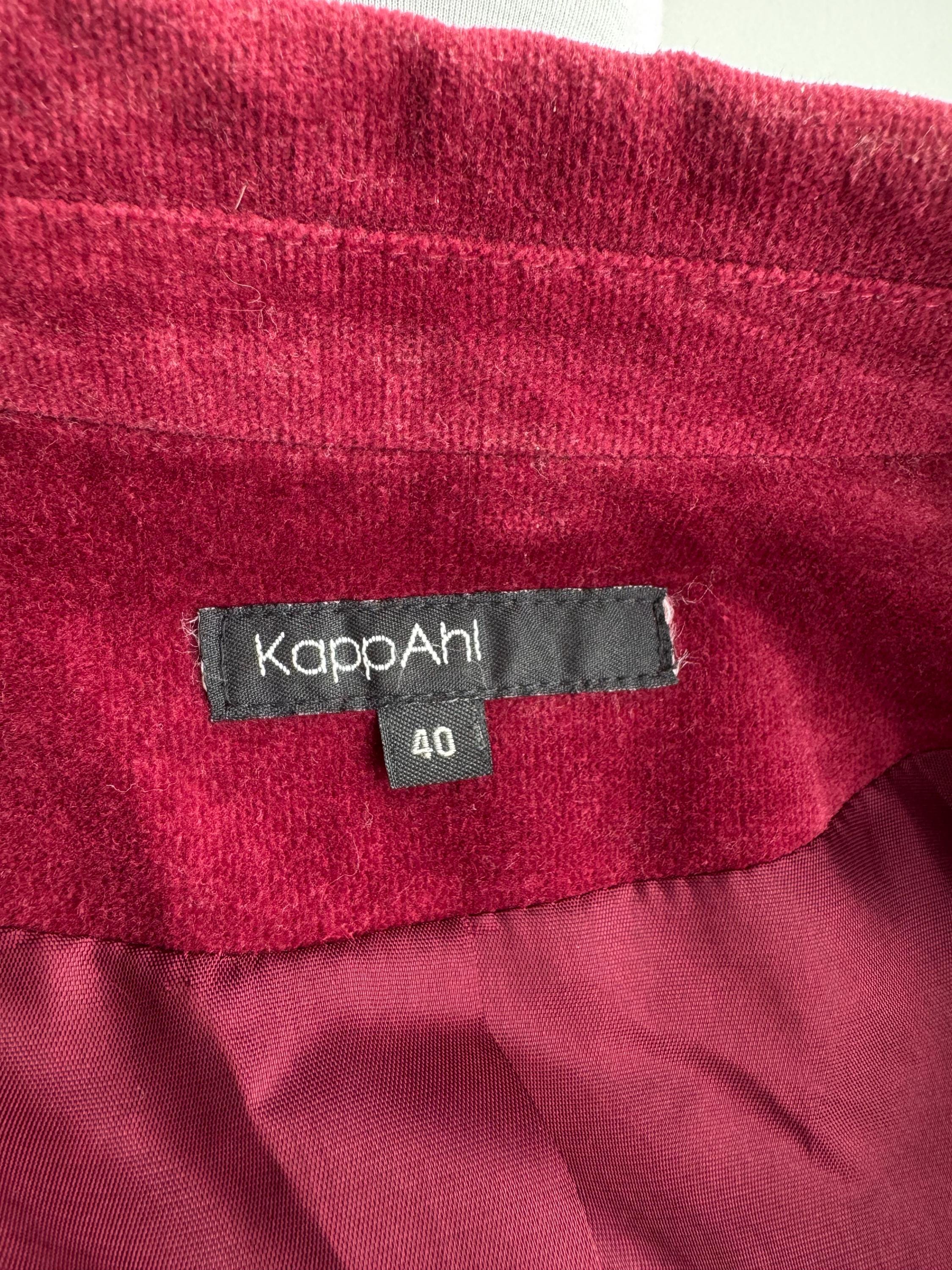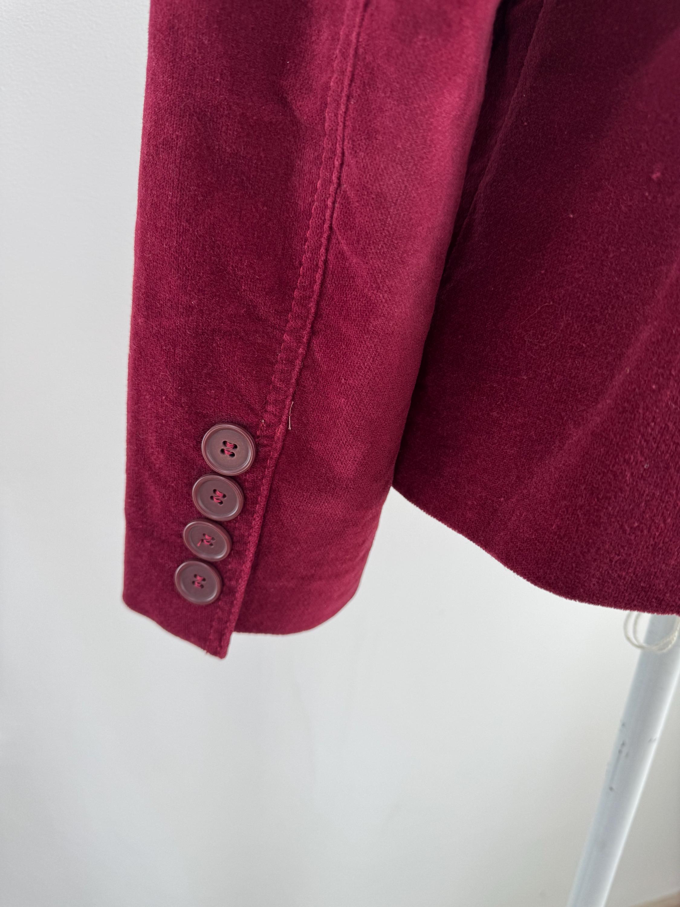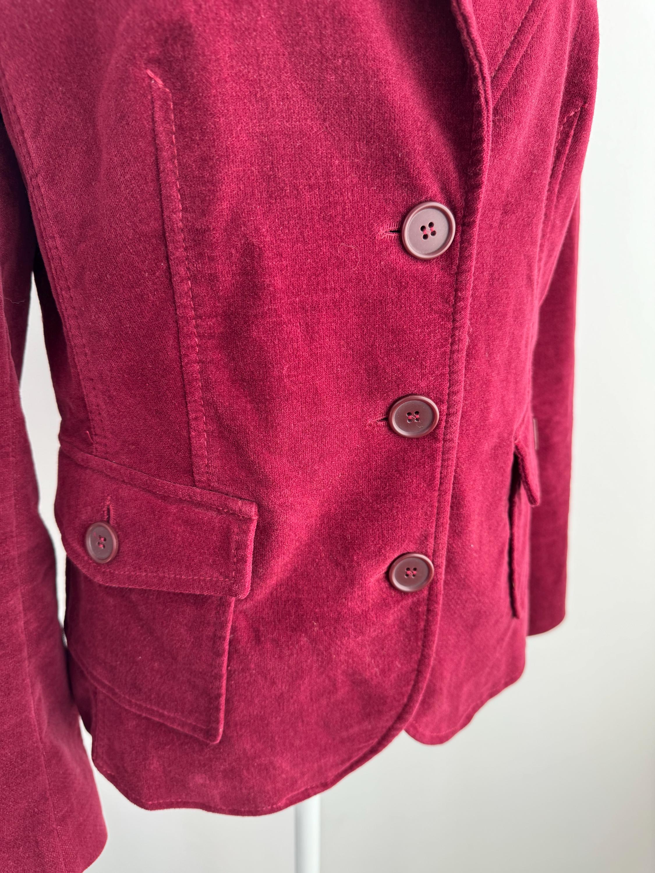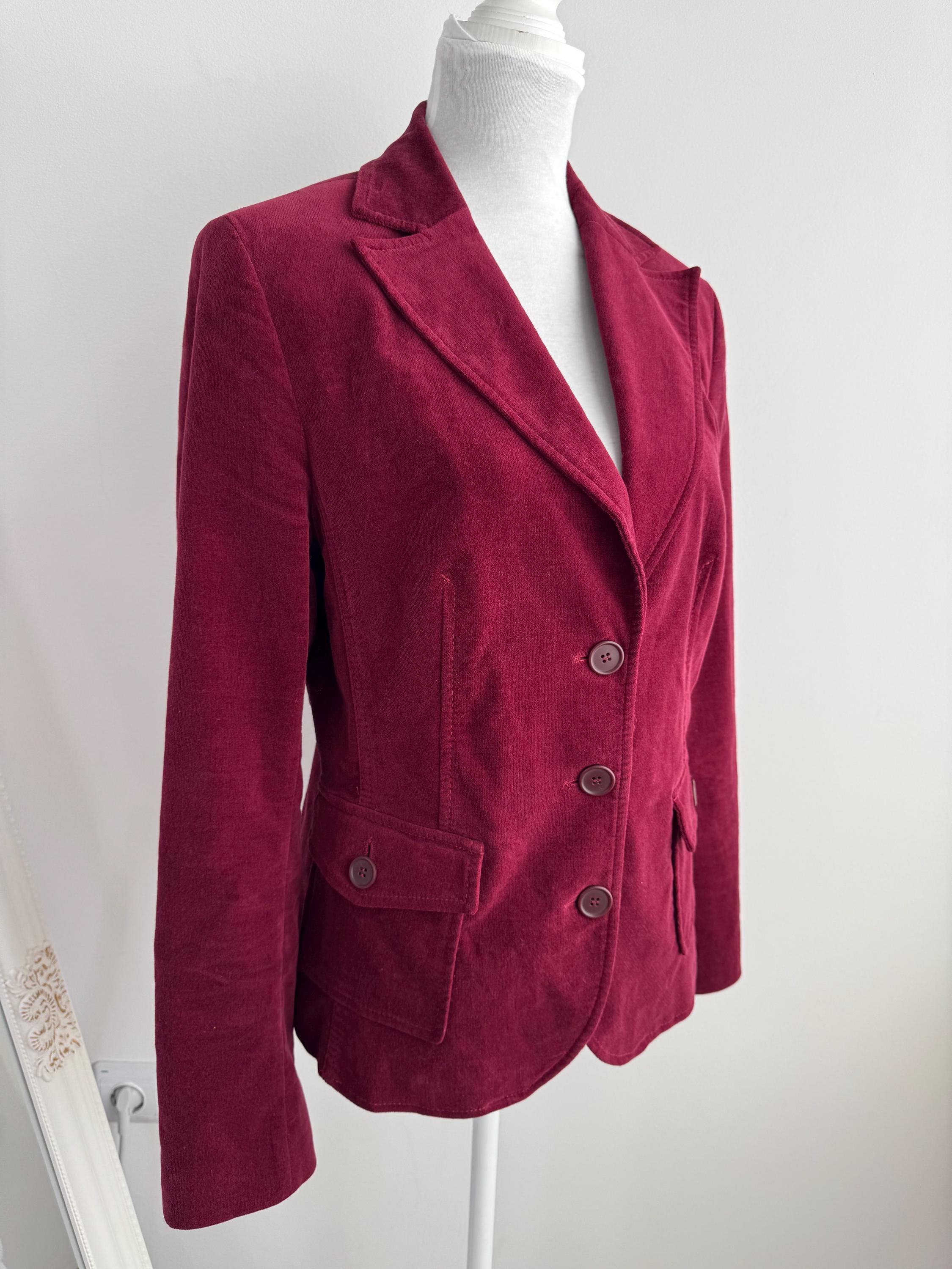 This is s vintage Y2K burgundy red corduroy blazer jacket for women by KappAhl in european size 40, which corresponds to size M. This elegant slim fit cotton blazer is made of soft velveteen corduroy fabric with three button closure and two pockets. This velveteen jacket has elegant slim fit silhouette and lining underneath. The size marked is EUR 40 which fits like size M. Please check the measurements below.