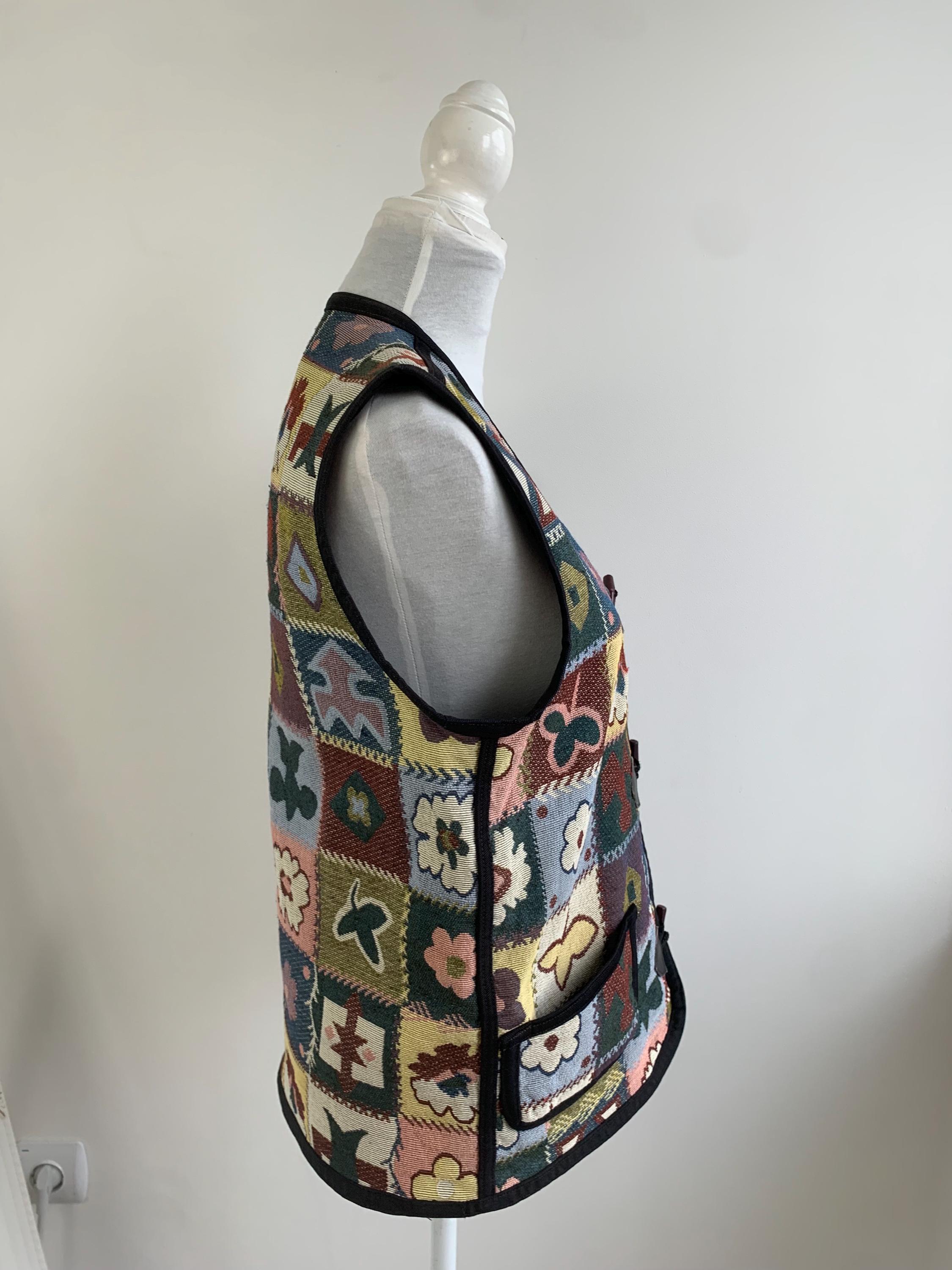 Whether you're looking for a standout Folk Art top for festivals, a unique layering piece for your transitional wardrobe, or a great item for costume designers, this vest is a sustainable and vibrant find. It’s a beautifully crafted piece that embodies the relaxed, eclectic fashion of the 90s.