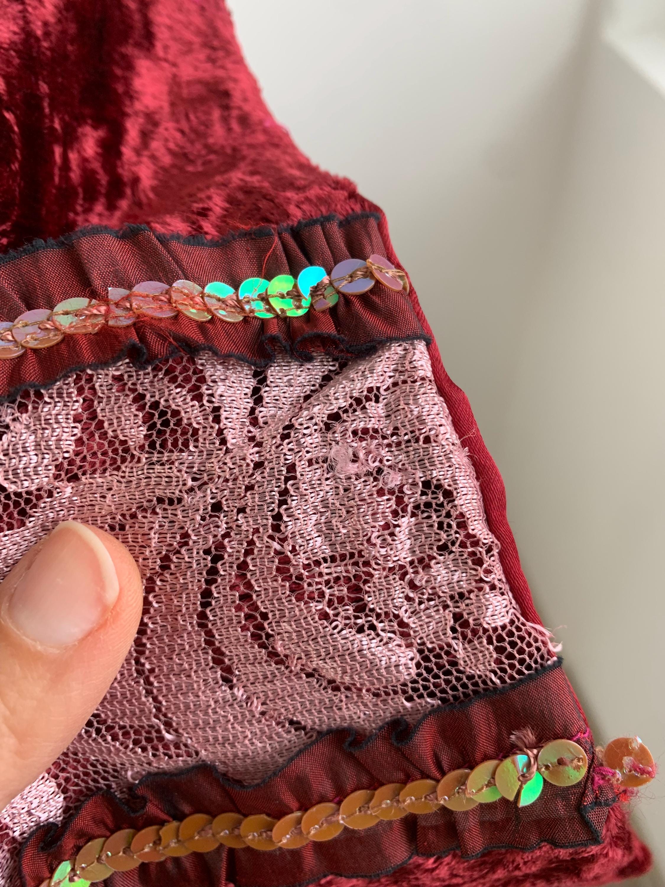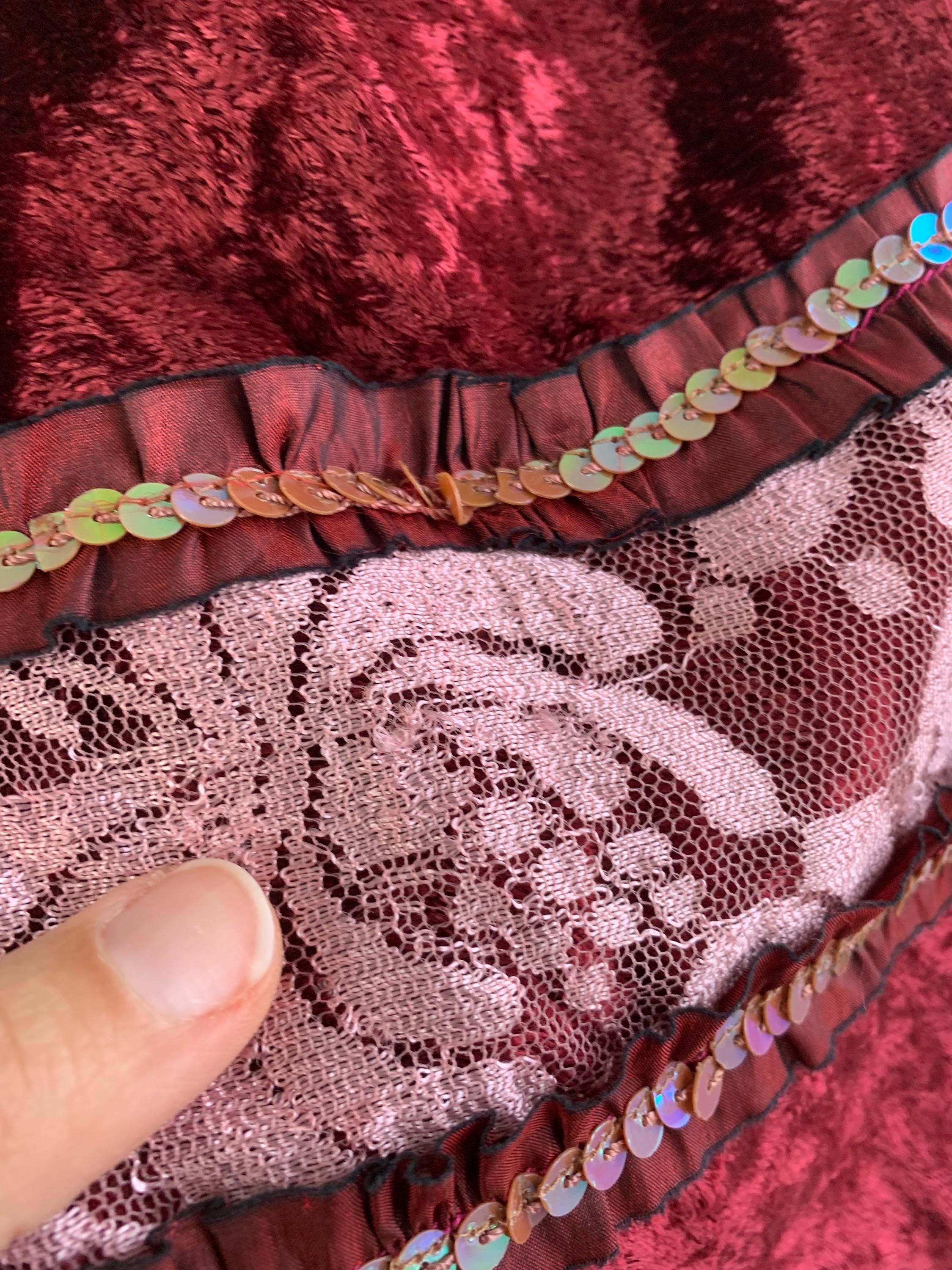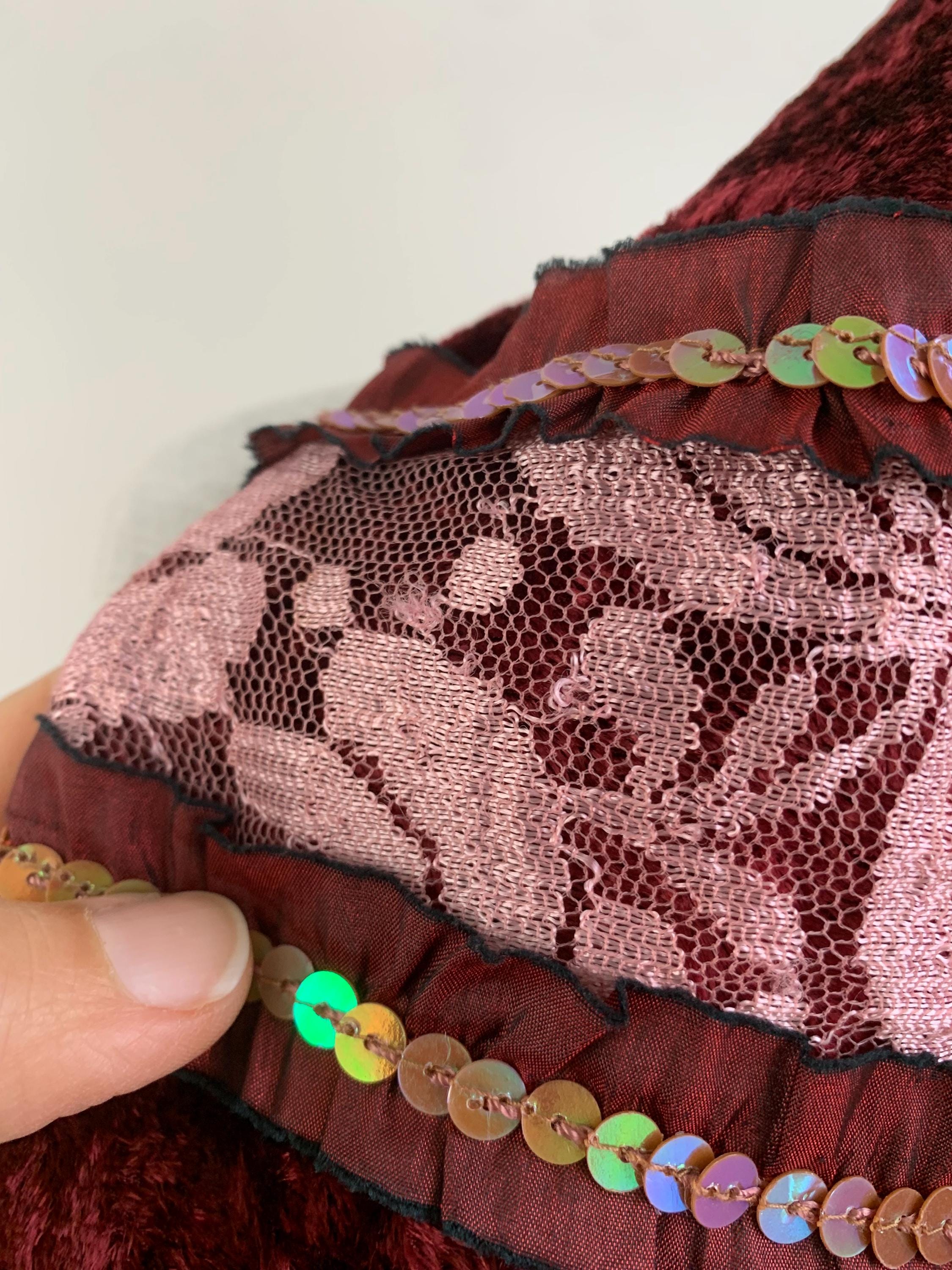 🧵 Material: Polyester Velvet, Lace, Sequins, Satin Lining