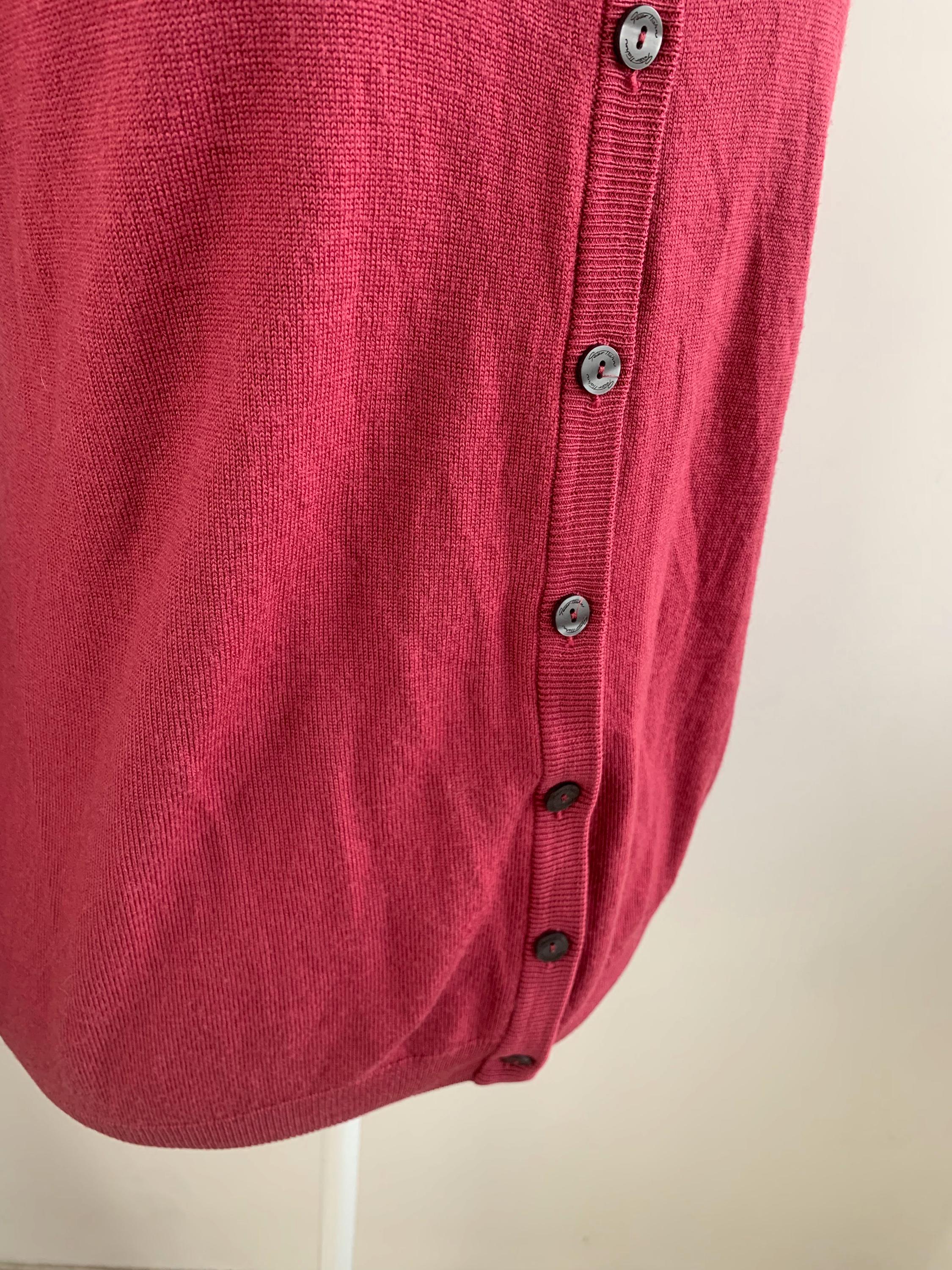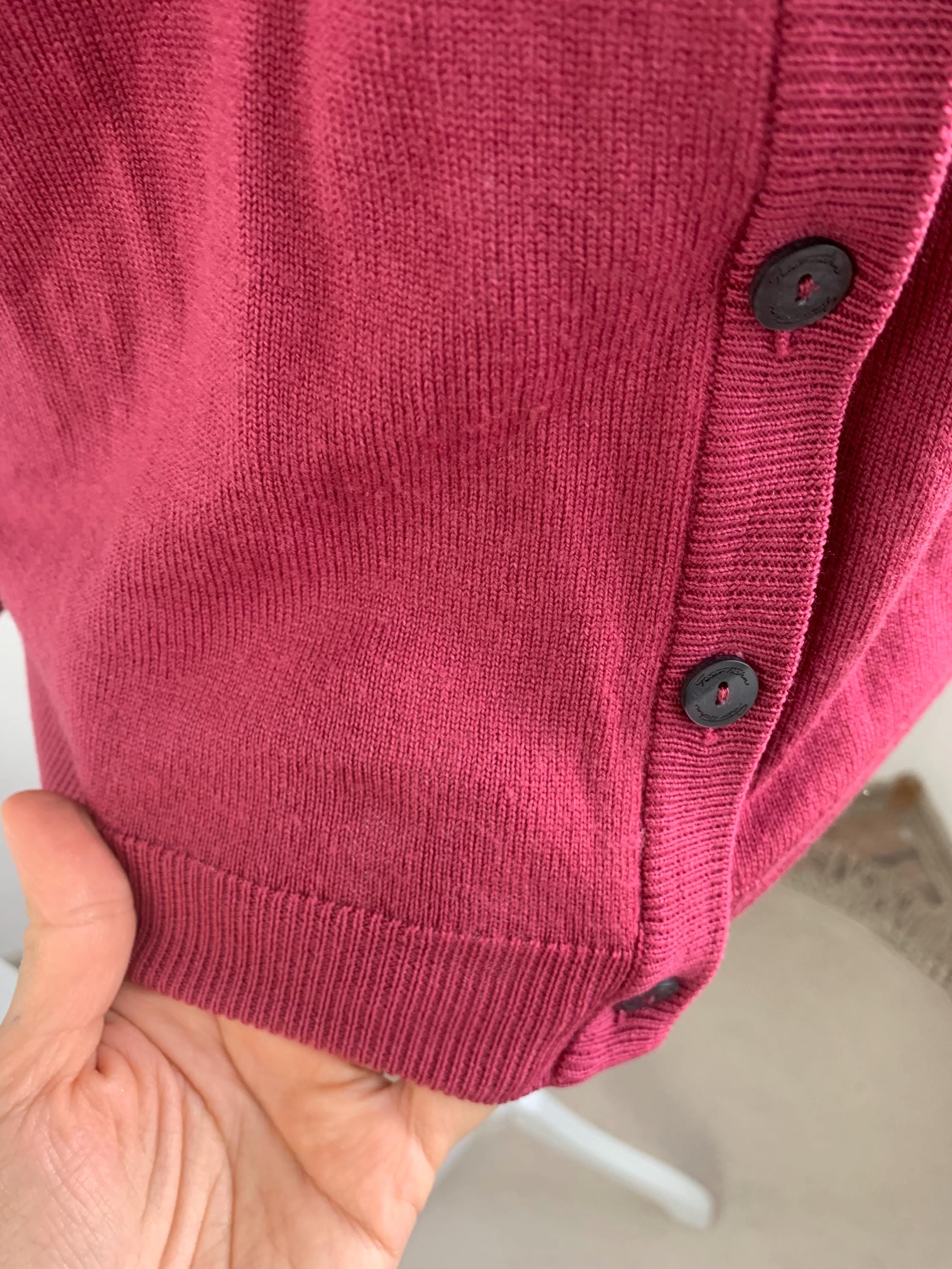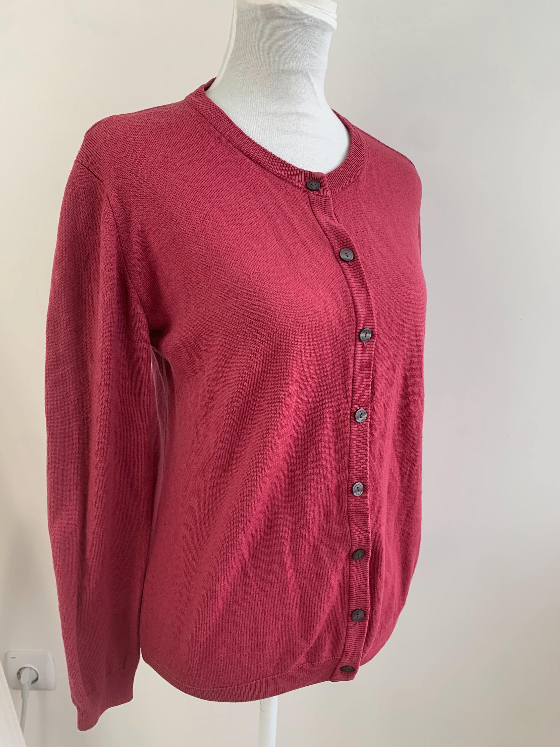 Wrap yourself in the luxurious comfort of this beautiful vintage Peter Hahn pure wool cardigan. Crafted from 100% pure Tasmanian wool—a fine, premium merino wool known for its softness and warmth without the bulk—this sweater is a timeless piece of knitwear. The rich color is a gorgeous, deep magenta or berry pink, perfect for adding a pop of color to your wardrobe.