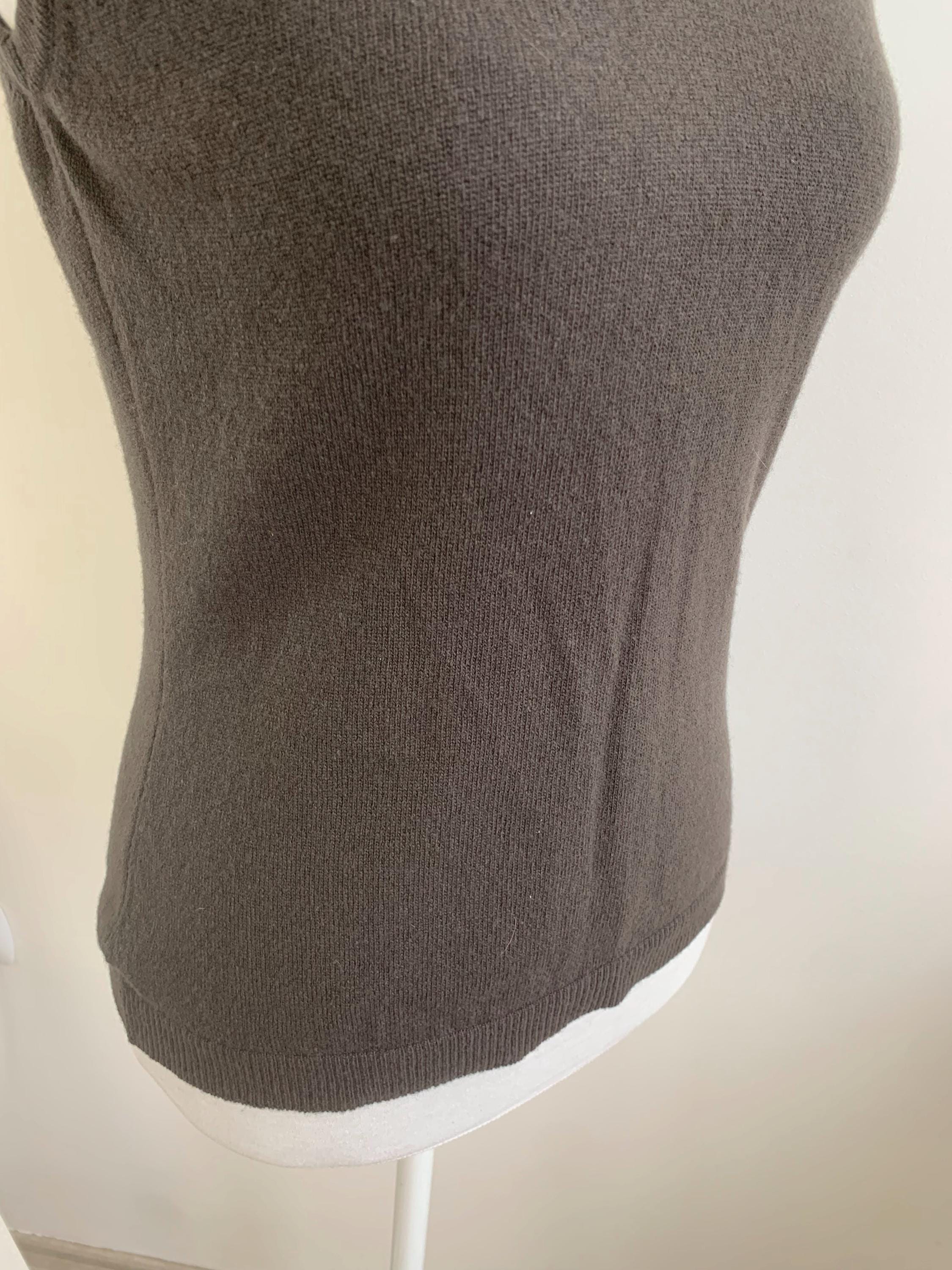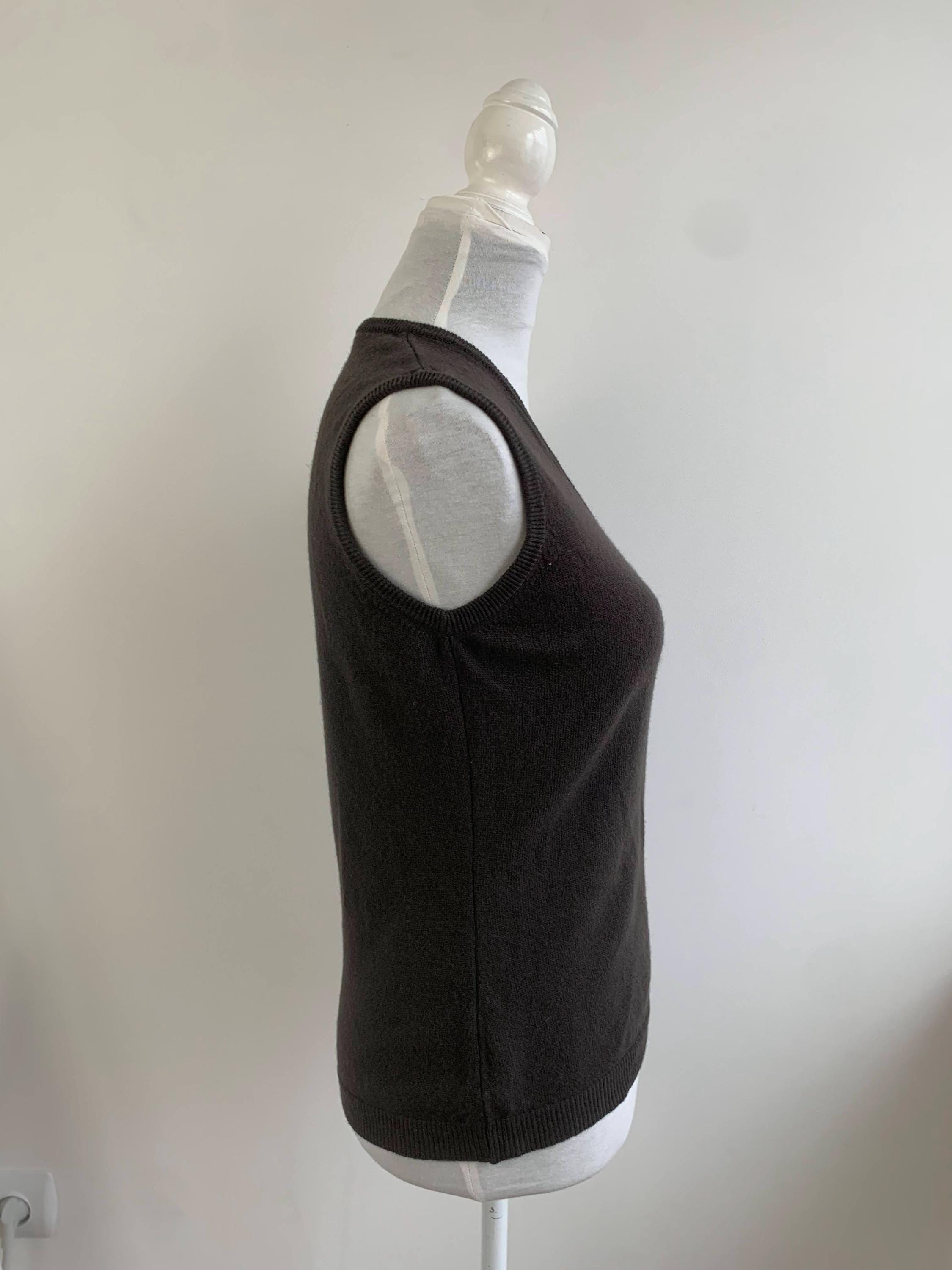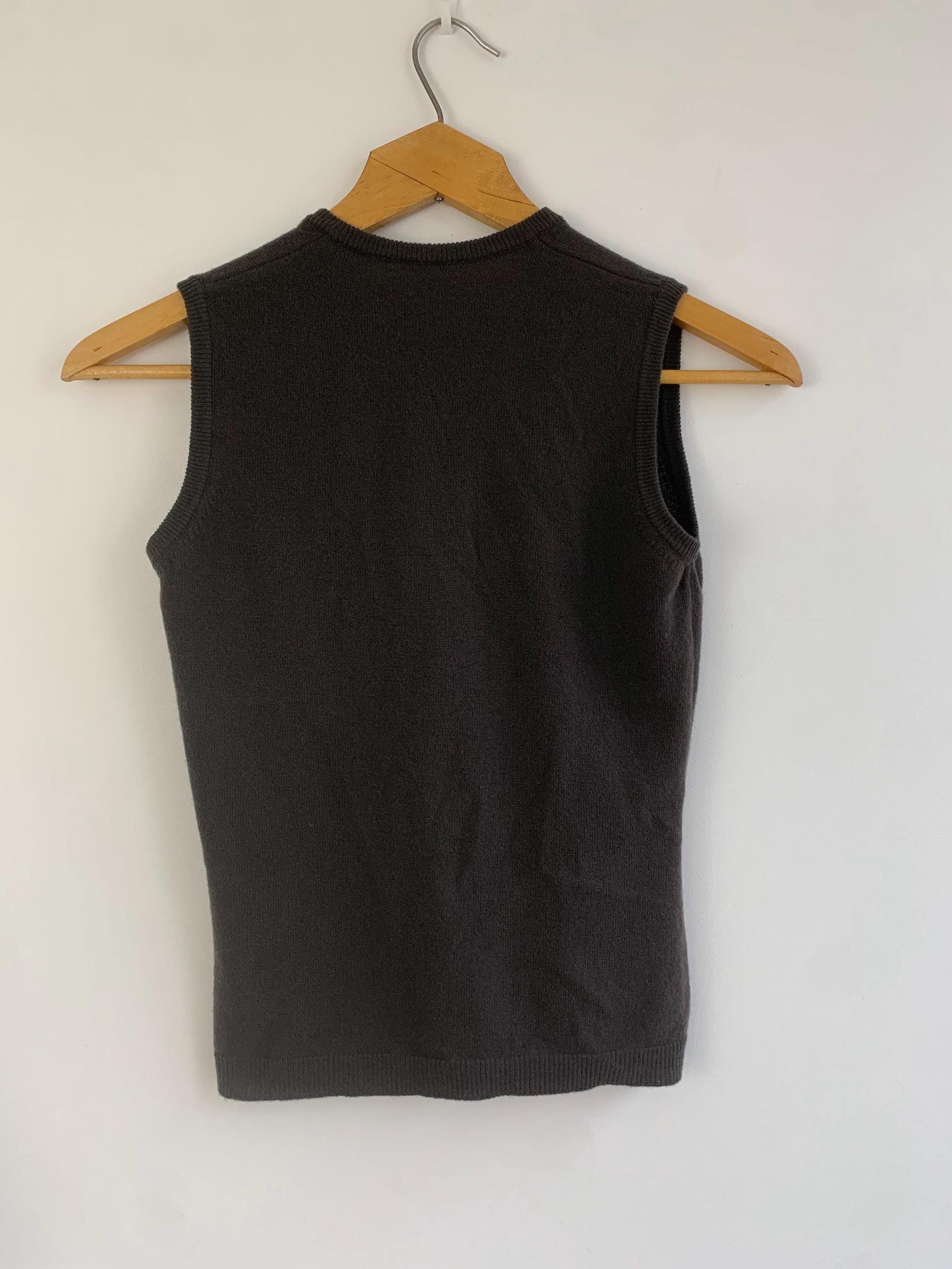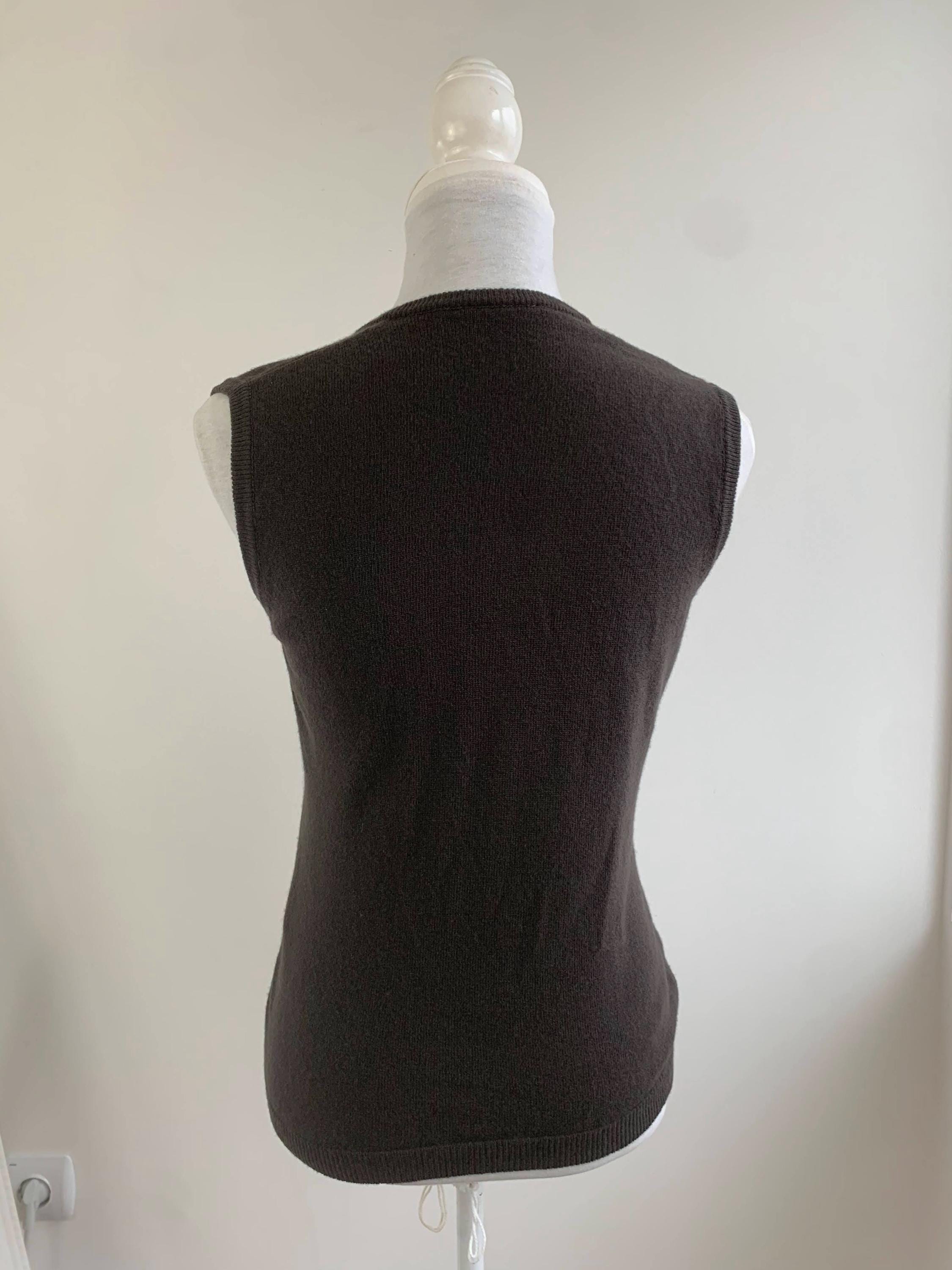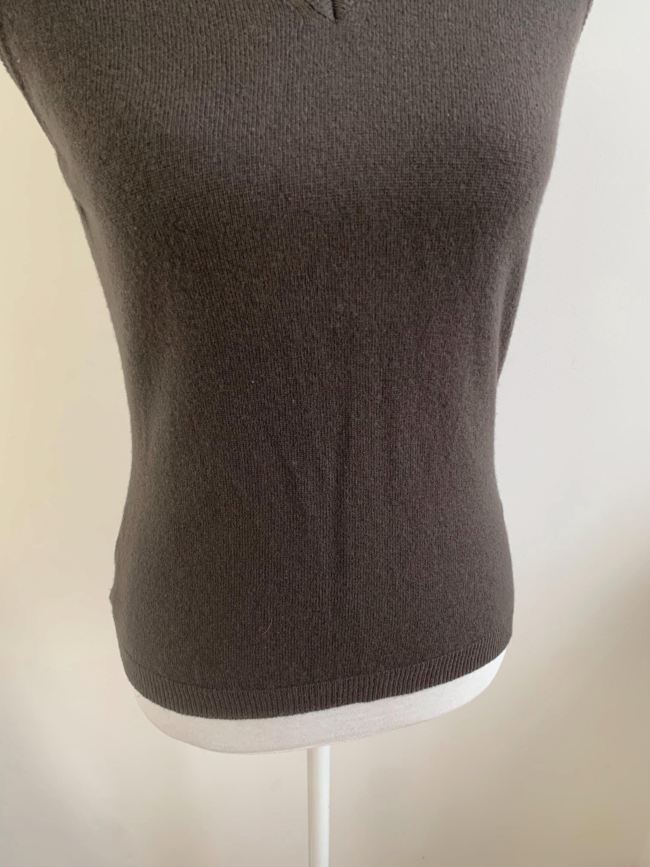 This classic dark brown sweater vest is a beautiful example of timeless 90s fashion from United Colors of Benetton in size S. Crafted from luxurious 100% wool, this piece is incredibly soft, lightweight, and perfect for layering through the transitional seasons. The deep, rich khaki brown color and minimalist V-neck design make it an exceptionally versatile wardrobe staple. This pure wool knit vest embodies the quintessential preppy and minimalist styles that are so popular today. Layer it over a crisp white button-down for a classic academic look, wear it alone as a chic sleeveless knit top, or pair it with wide-leg trousers for a contemporary silhouette. Its slim-fit, Italian styling offers a sophisticated, flattering look. This vintage Benetton piece is a high-quality, sustainable addition to any closet, ideal for those who appreciate classic 90s aesthetic and natural fibers.