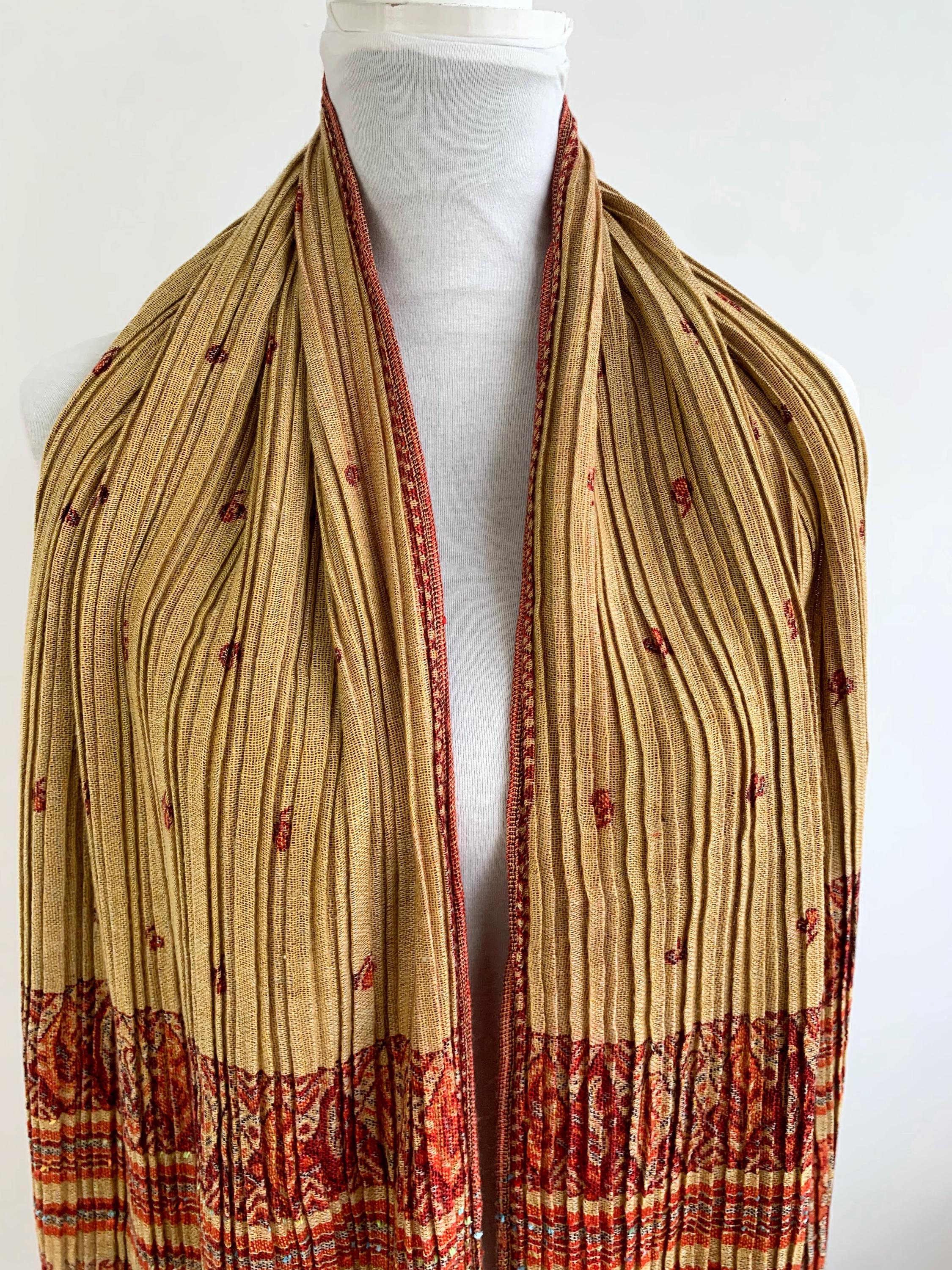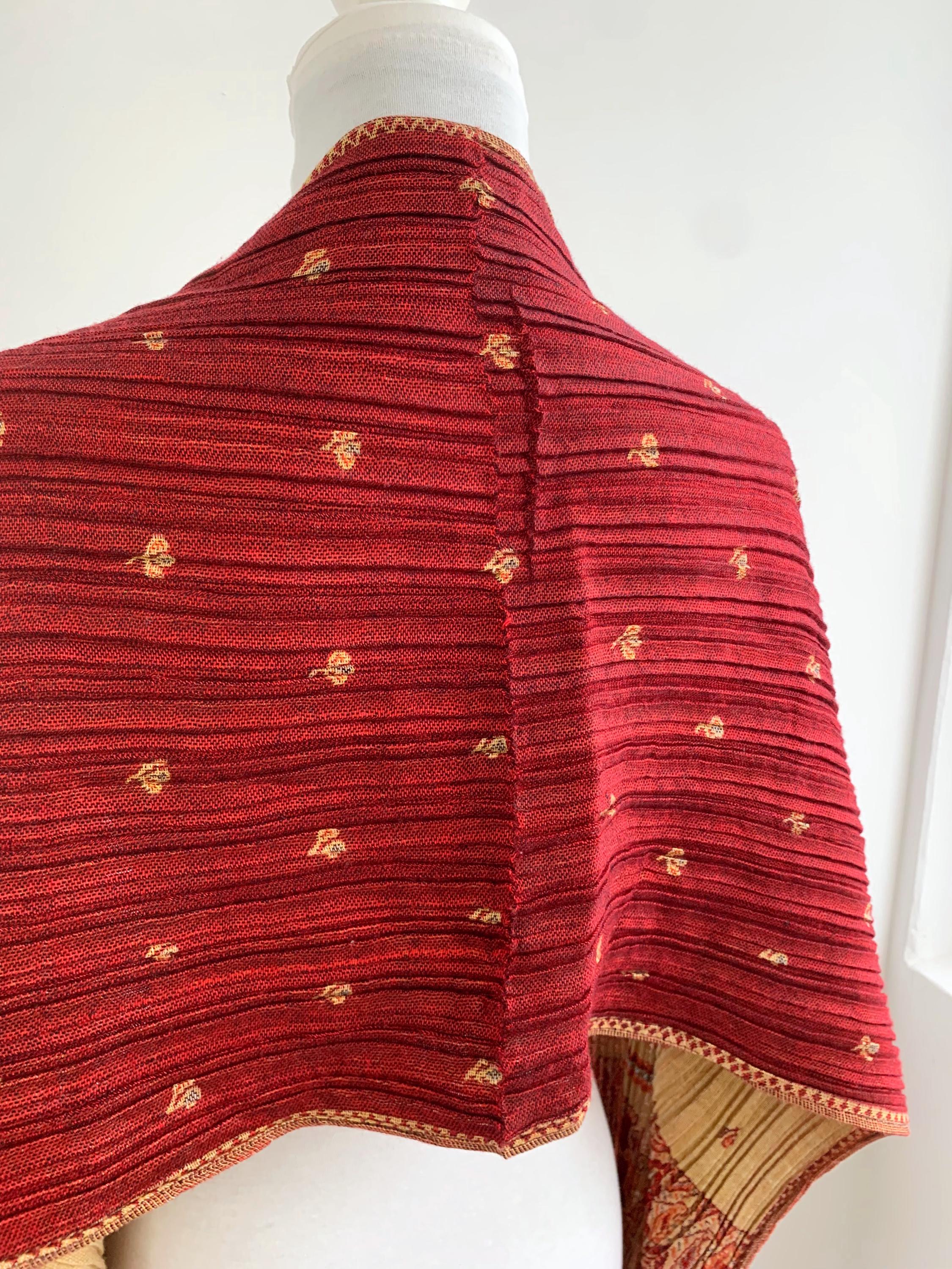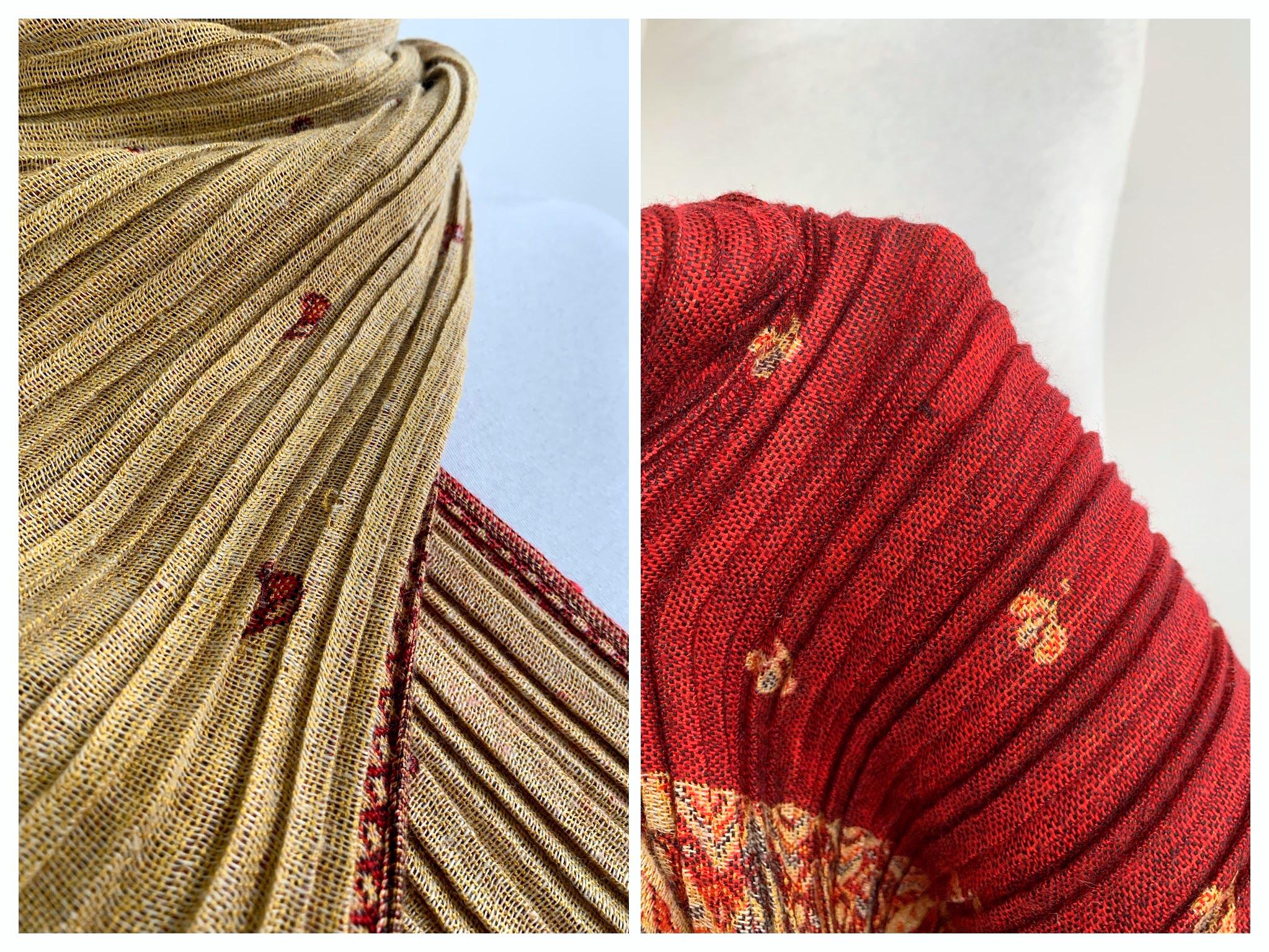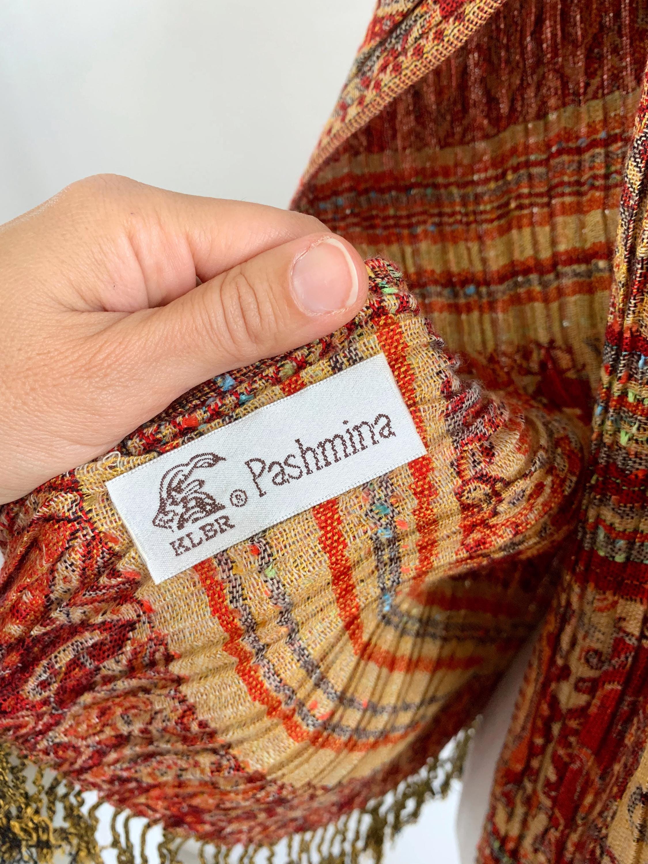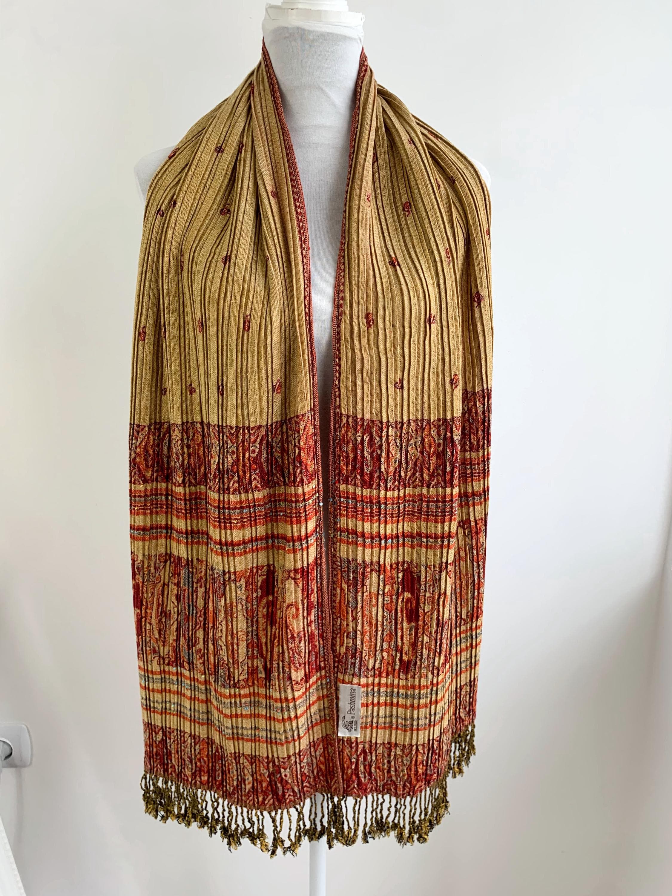 This exquisite vintage Y2K reversible pashmina shawl is a true statement piece, perfect for adding a touch of bohemian elegance and luxurious warmth to any outfit. The unique, finely pleated texture gives it a beautiful structure and drape. A Wonderful versatile accessory for all seasons.