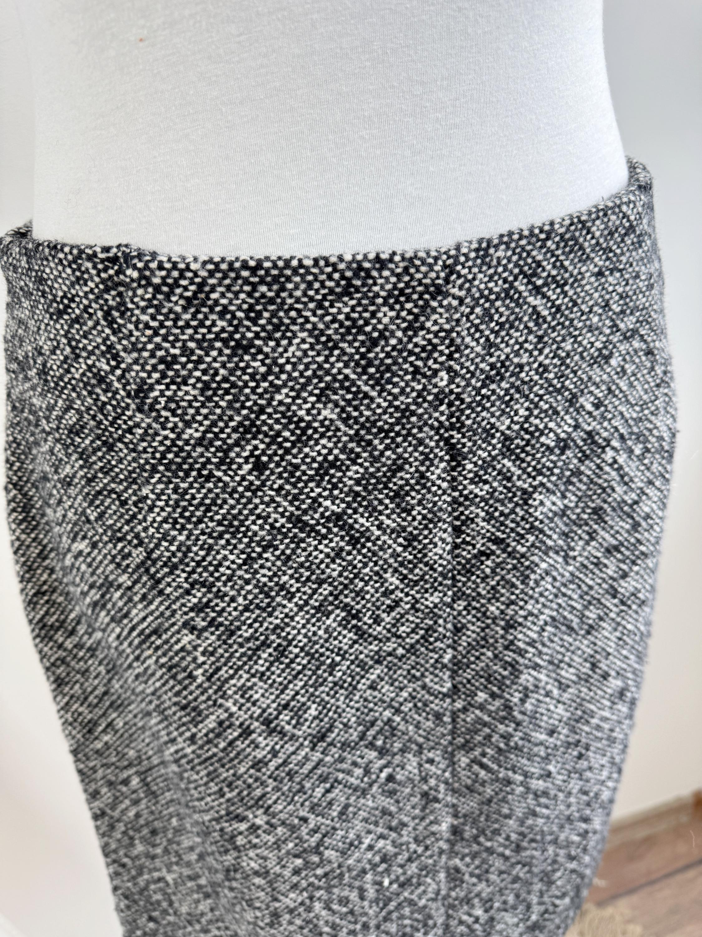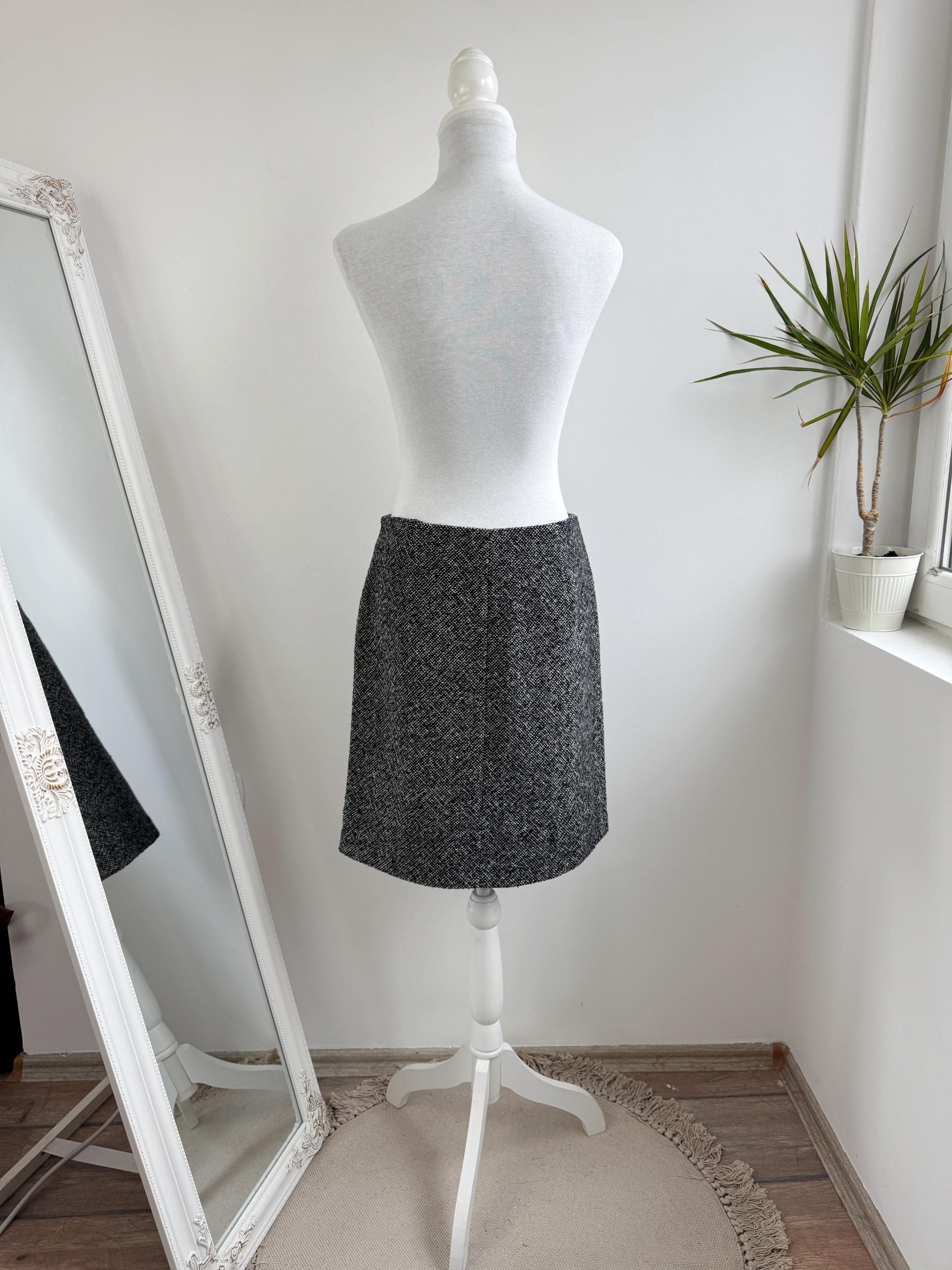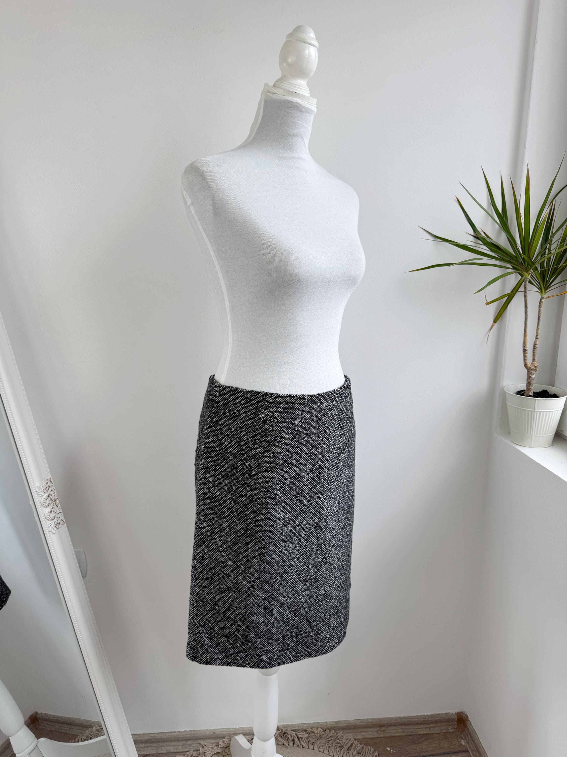 Step into timeless style with this vintage 90s Y2K Grey Tweed Skirt in size S/M! Crafted from a cozy blend of 80% wool and 20% polyamide, this knee-length classic pencil skirt is perfect for fall and winter. Its straight silhouette hugs your curves while keeping you warm and chic. Ideal for layering with your favorite sweaters or blouses, this versatile piece is a must-have for any fashion-forward wardrobe. It's the perfect addition to your vintage collection. Embrace nostalgia with a modern twist!