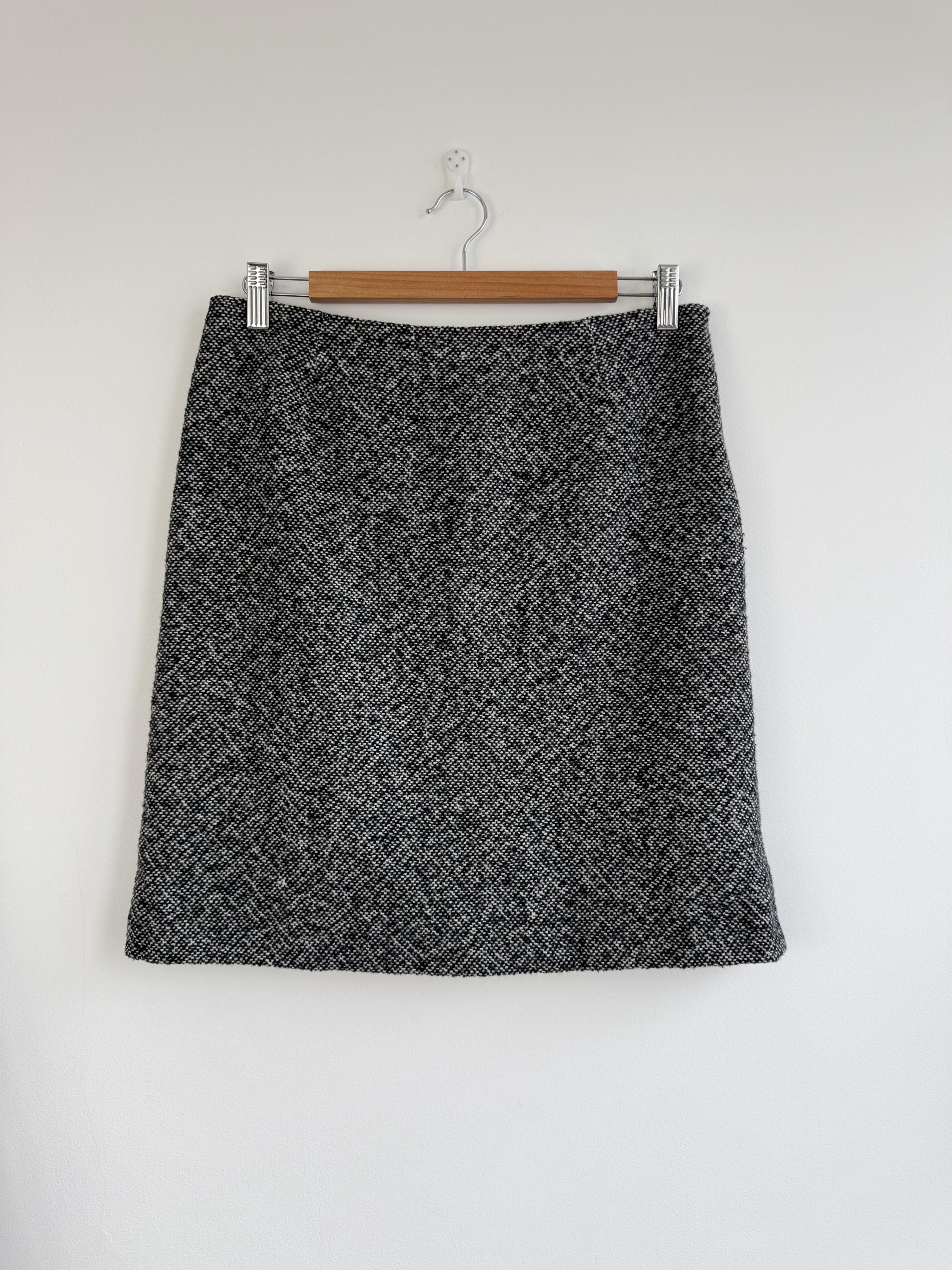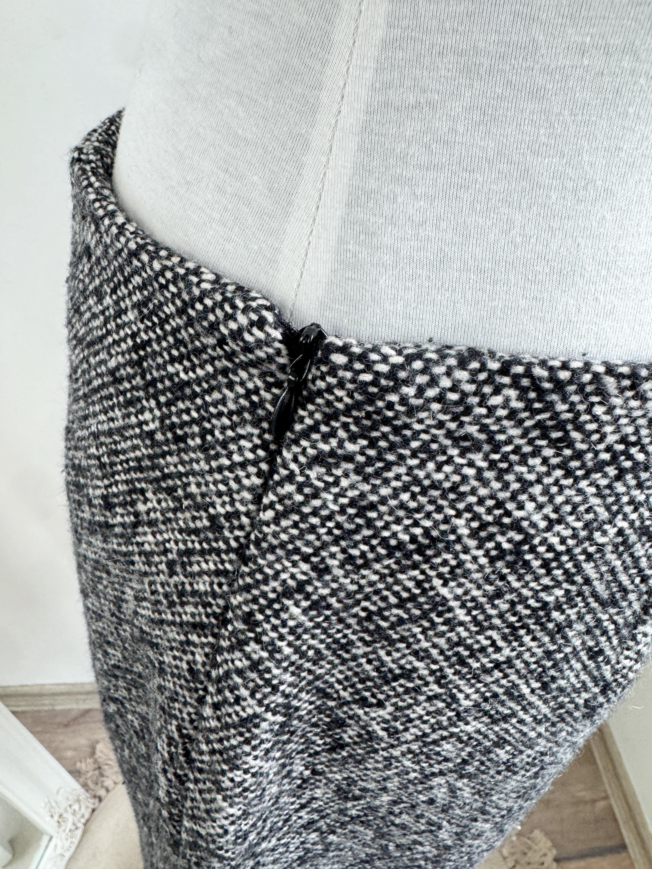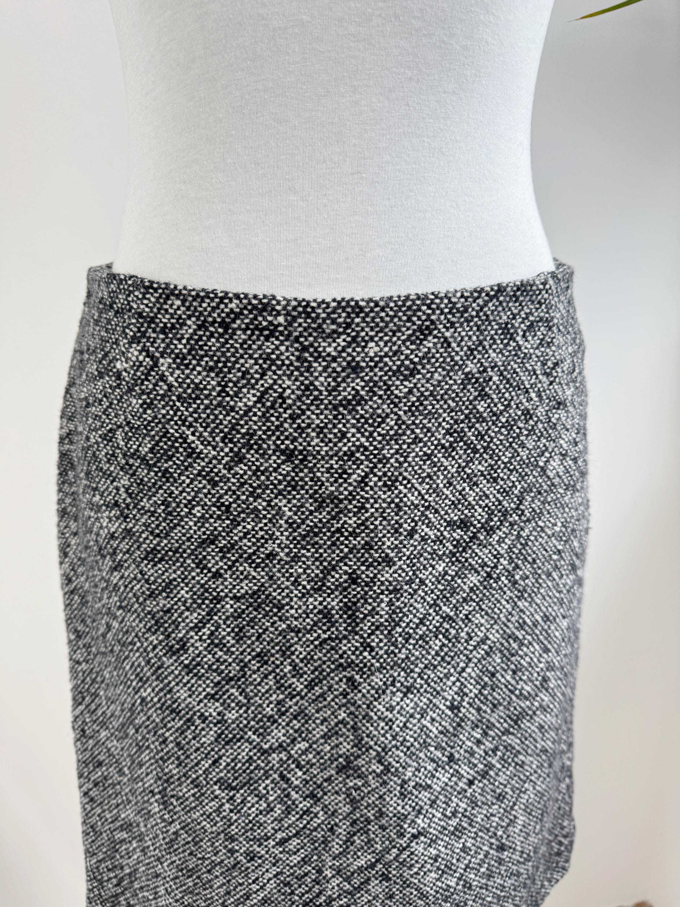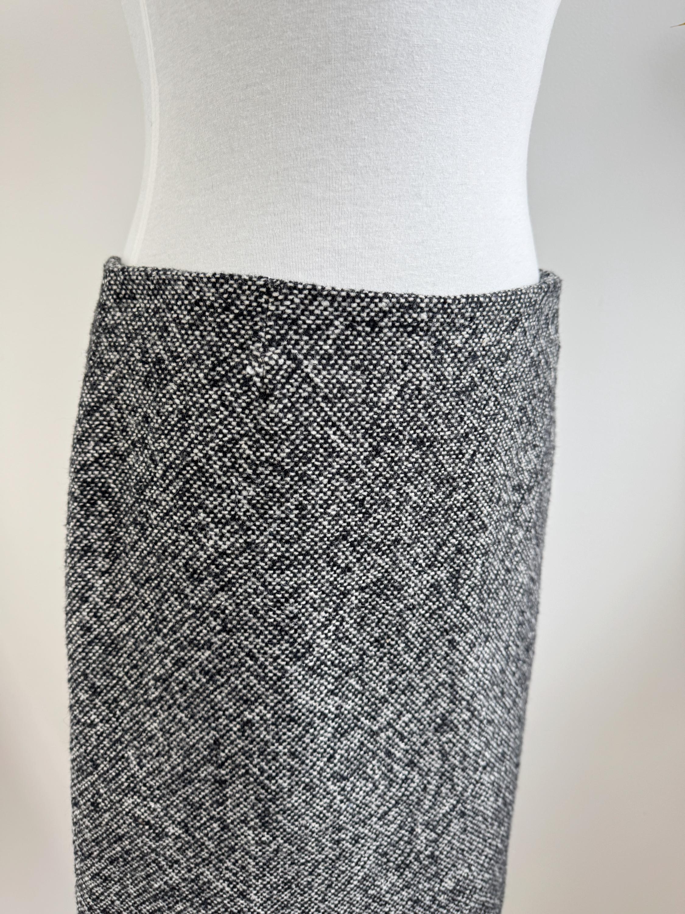 Step into timeless style with this vintage 90s Y2K Grey Tweed Skirt in size S/M! Crafted from a cozy blend of 80% wool and 20% polyamide, this knee-length classic pencil skirt is perfect for fall and winter. Its straight silhouette hugs your curves while keeping you warm and chic. Ideal for layering with your favorite sweaters or blouses, this versatile piece is a must-have for any fashion-forward wardrobe. It's the perfect addition to your vintage collection. Embrace nostalgia with a modern twist!