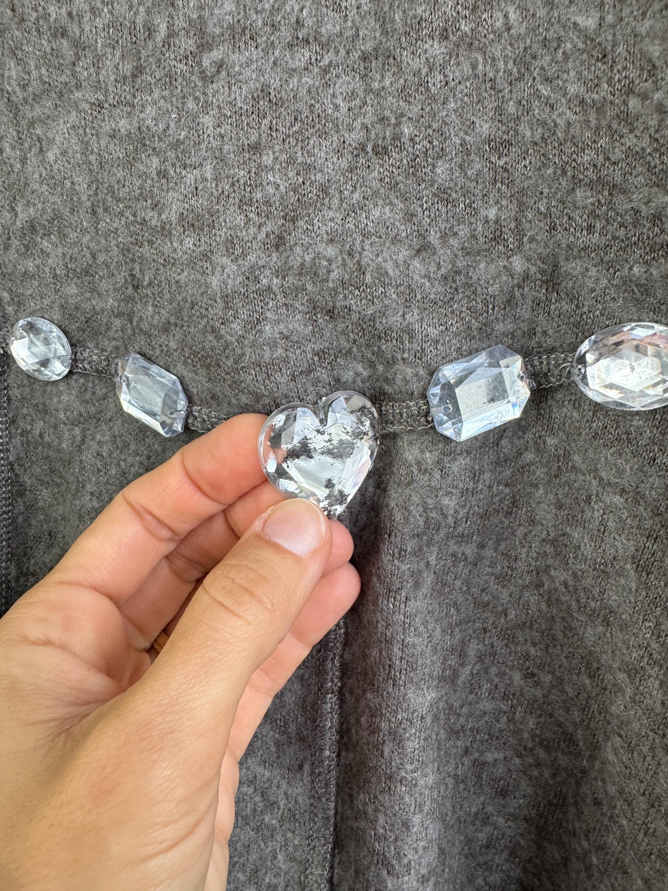 ✨ Condition: Excellent vintage condition with minor flaws. All embellishments and toggles are intact. The only thing I could spot is some discoloration of the back side of the heart shaped rhinestone at the back.