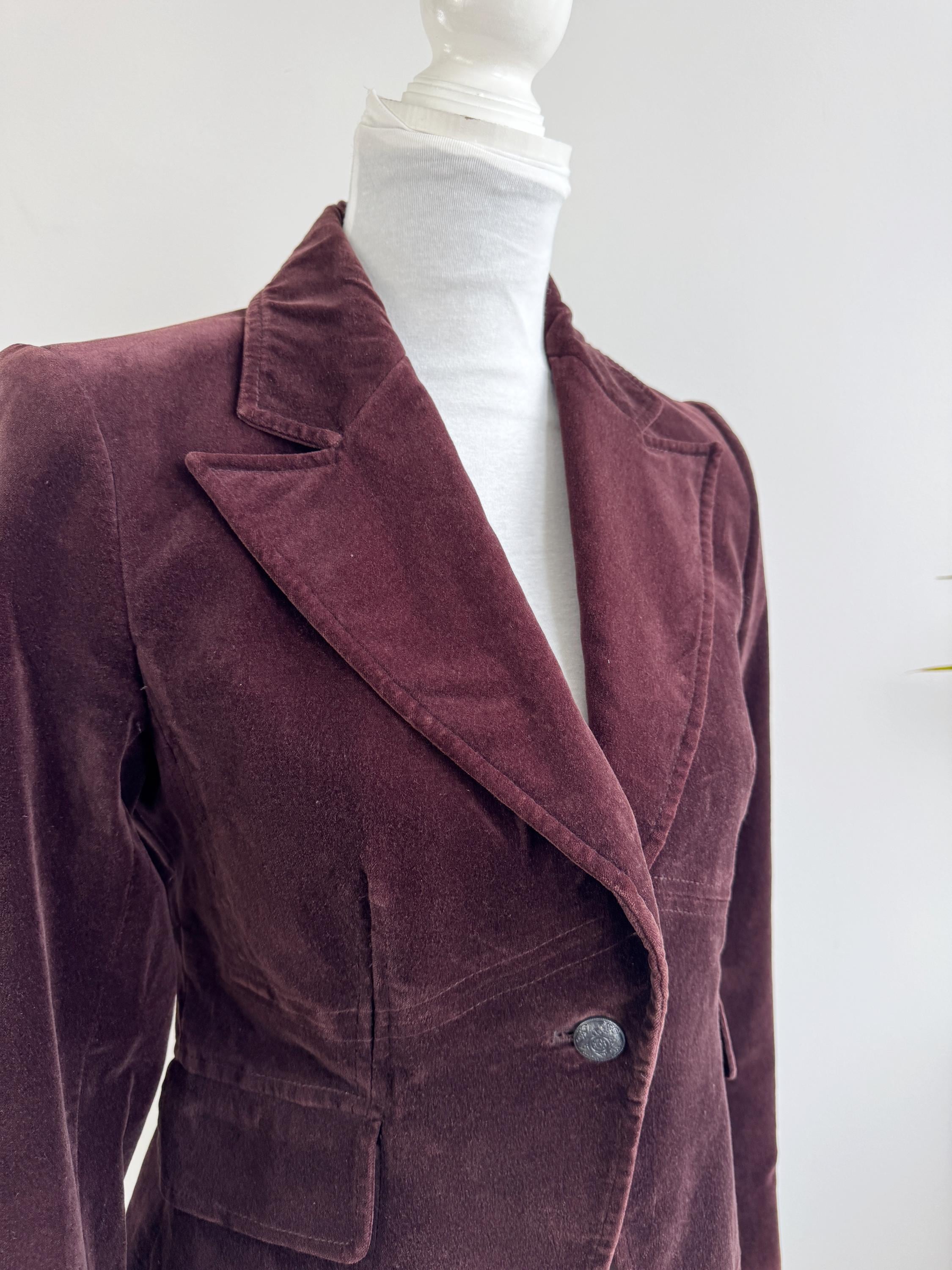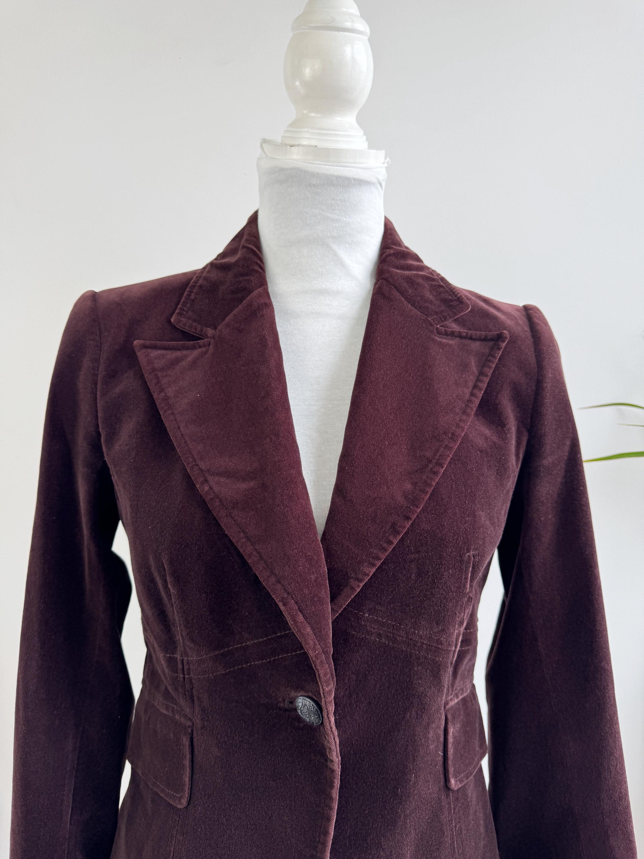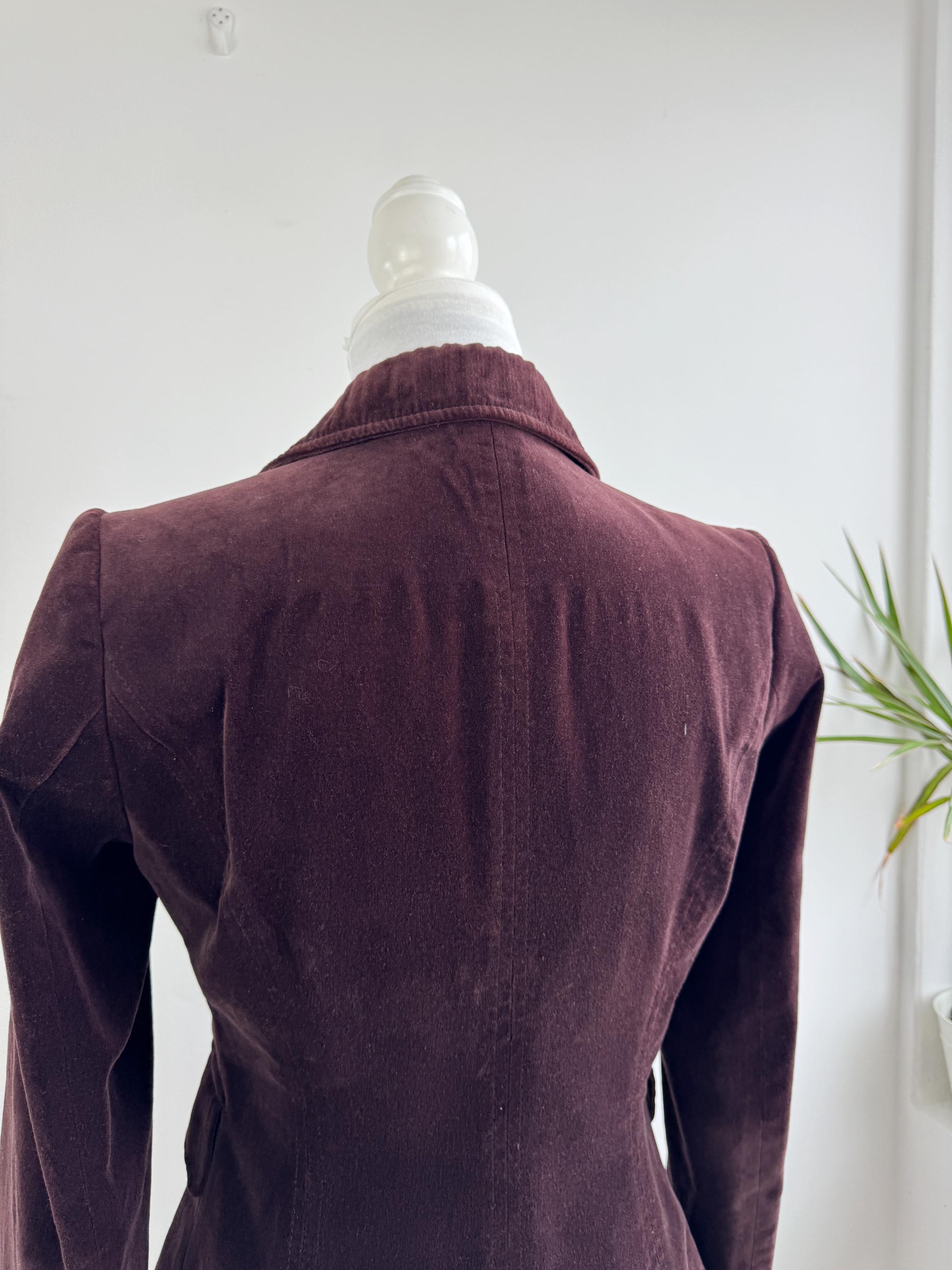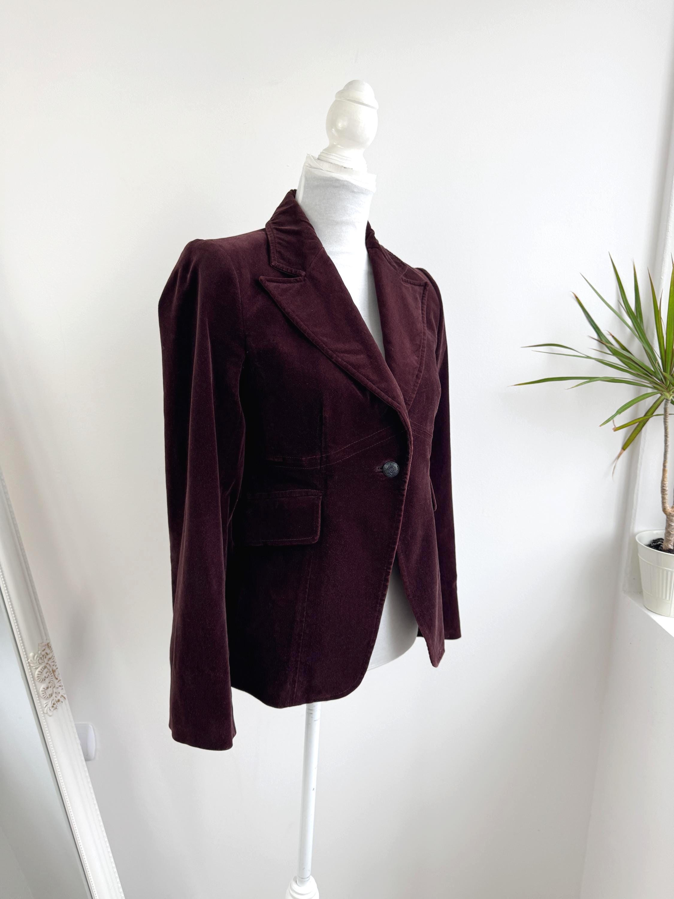 This is s vintage Y2K cotton corduroy blazer jacket for women by the Italian brand Stephanel in lovely dark brown color. This elegant slim fit cotton blazer is made of soft velveteen cotton fabric with single button closure and two flap over pockets. This brown velvet jacket has lining underneath. The size marked is Italy 42, EUR 38, US 6 it fits like size S. Please check the measurements below