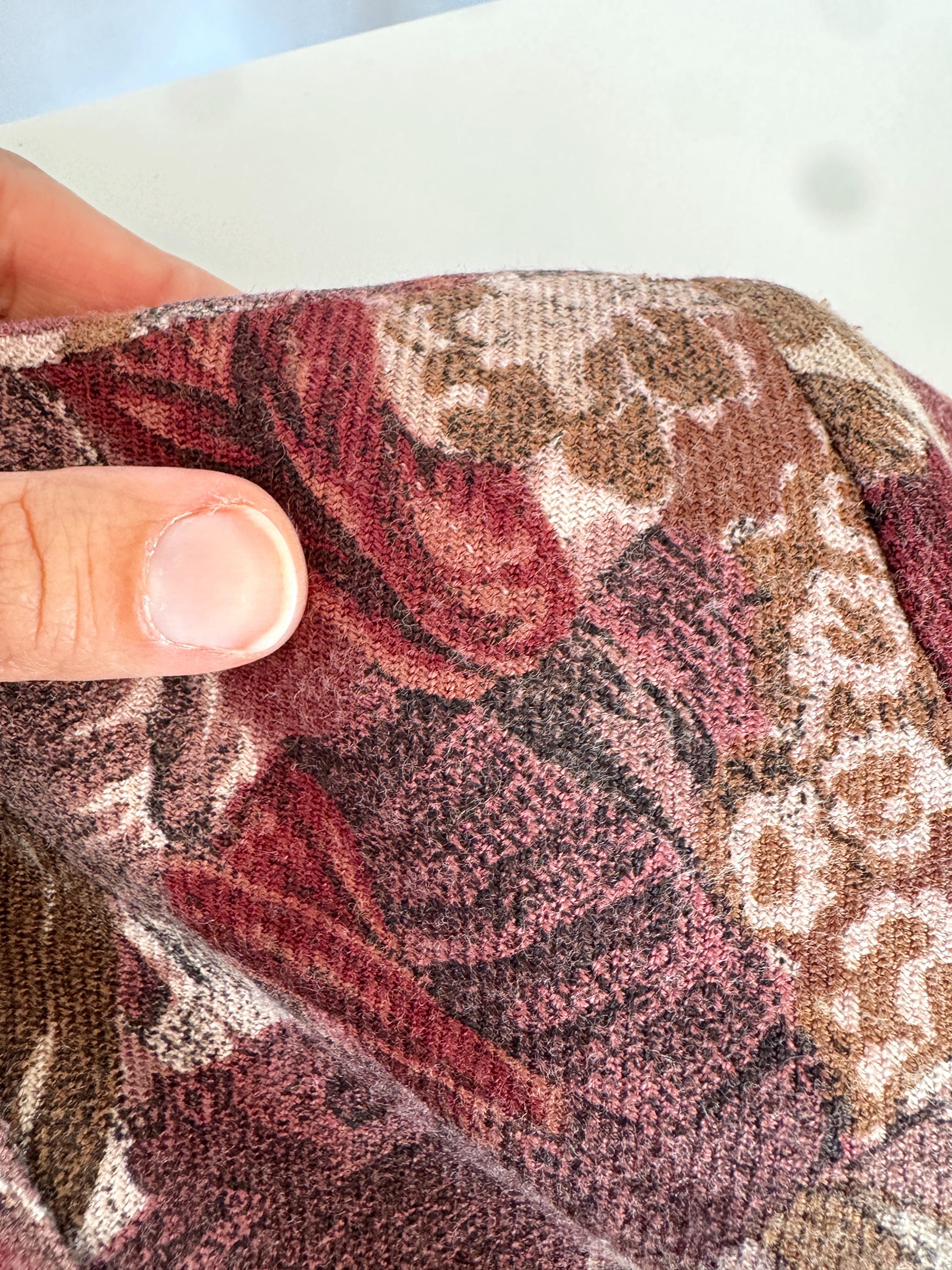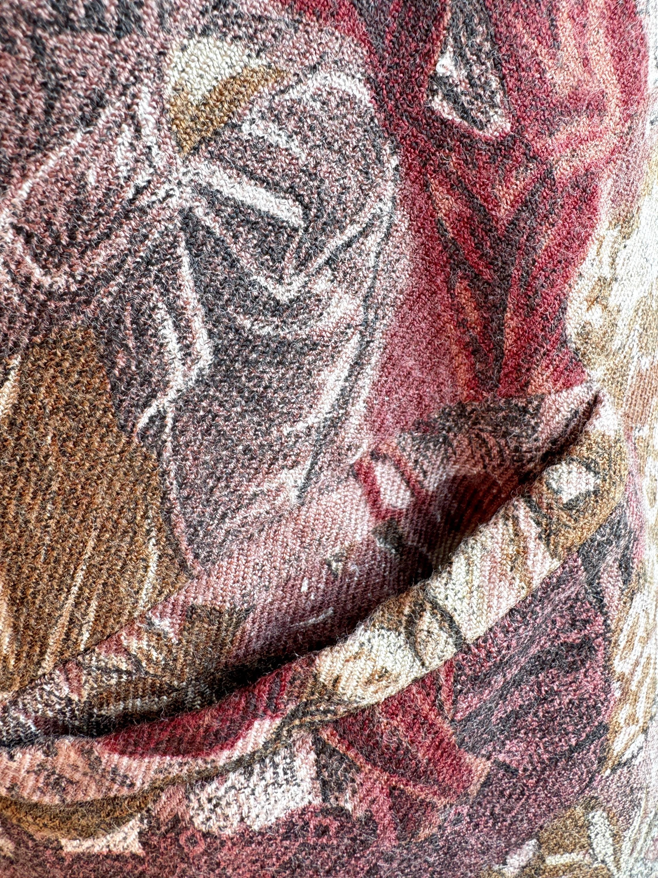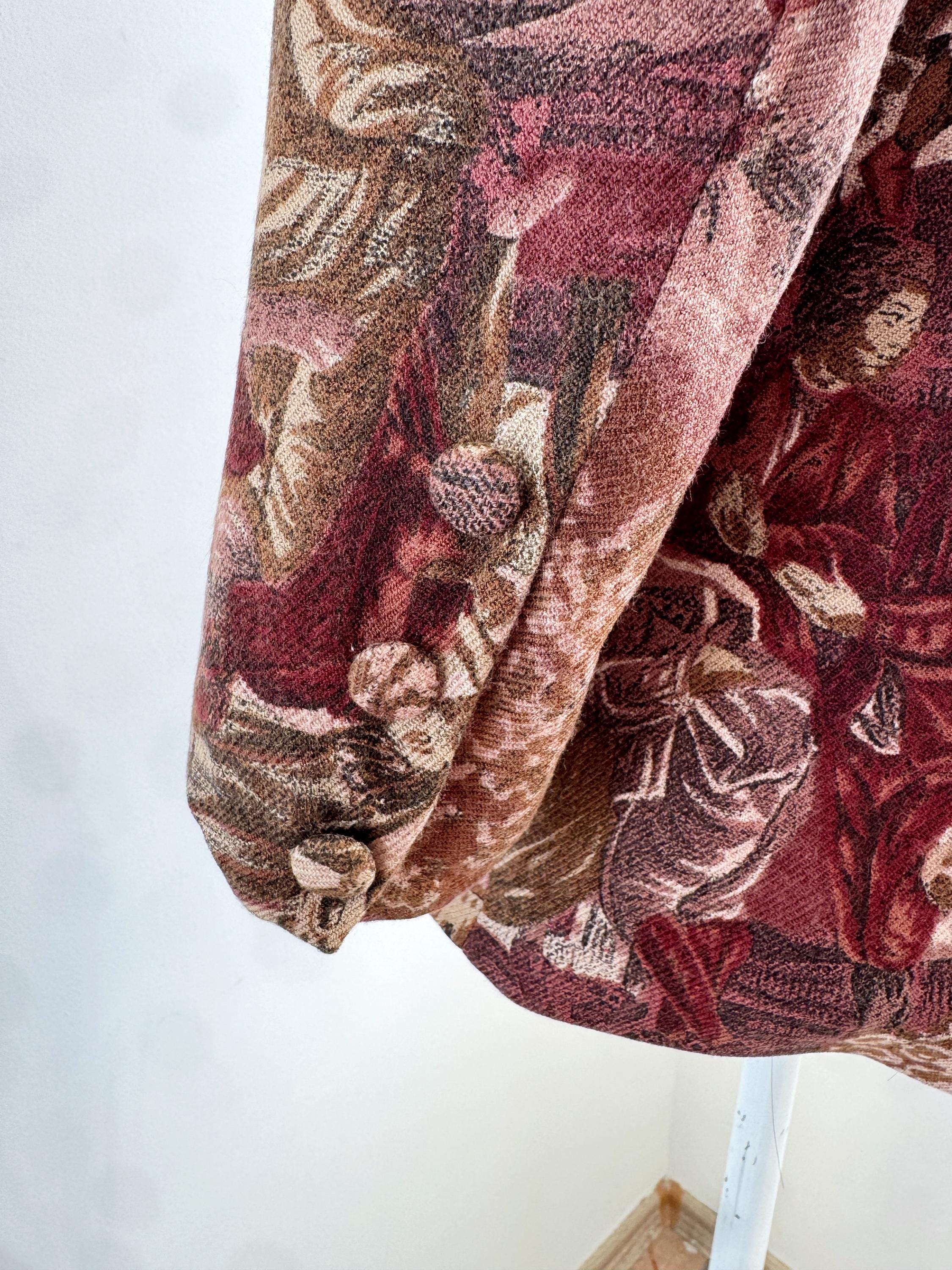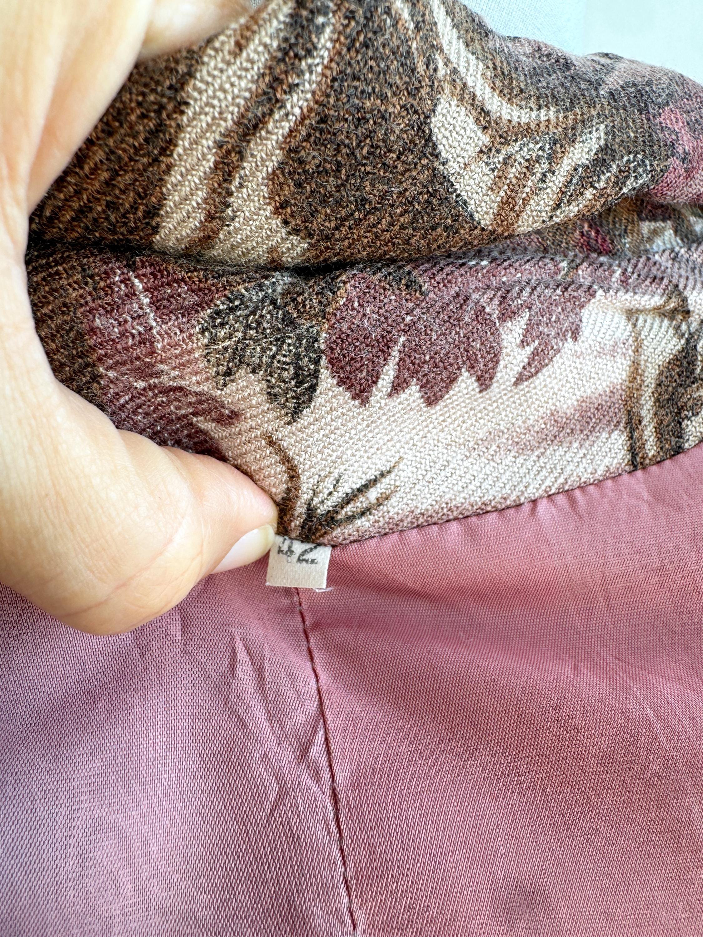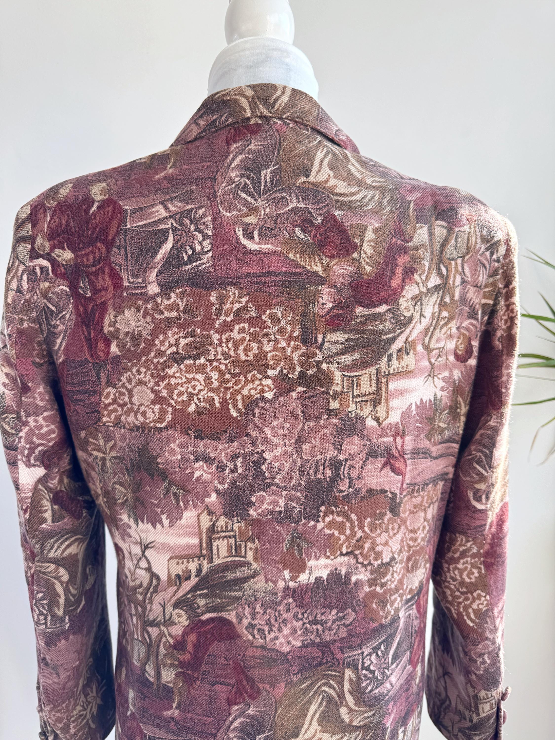 Vintage 90s Italian tapestry blazer with floral garden pastoral scene in shades of burgundy, pink, beige and brown. This gobelin blazer is made of 80% viscose and 20% wool fabric with synthetic lining. It has two pockets. Italian women's clothing size 42 is marked, 42 normally fits like S, however this blazer has an oversized fit. Please check the measurements below.