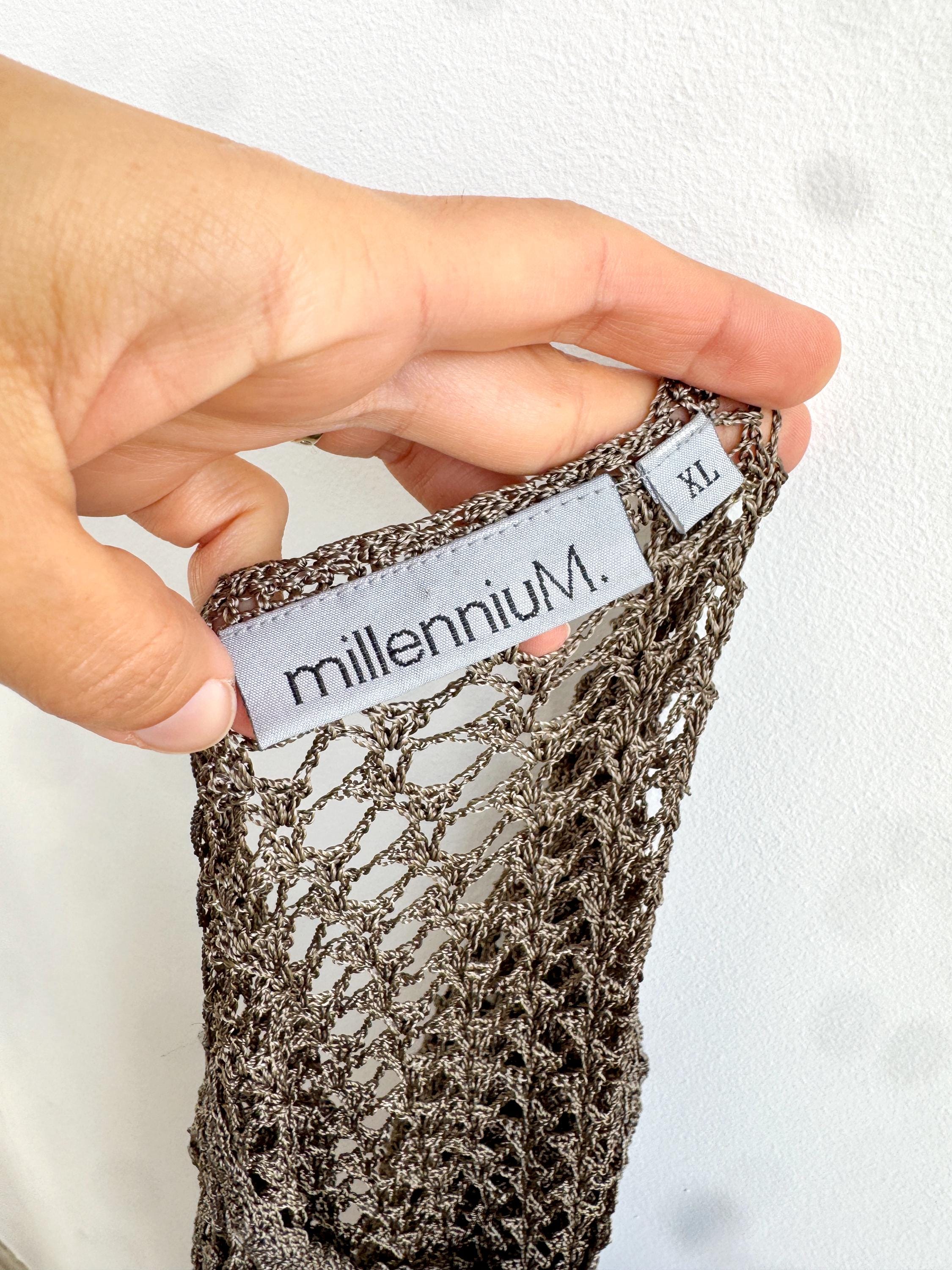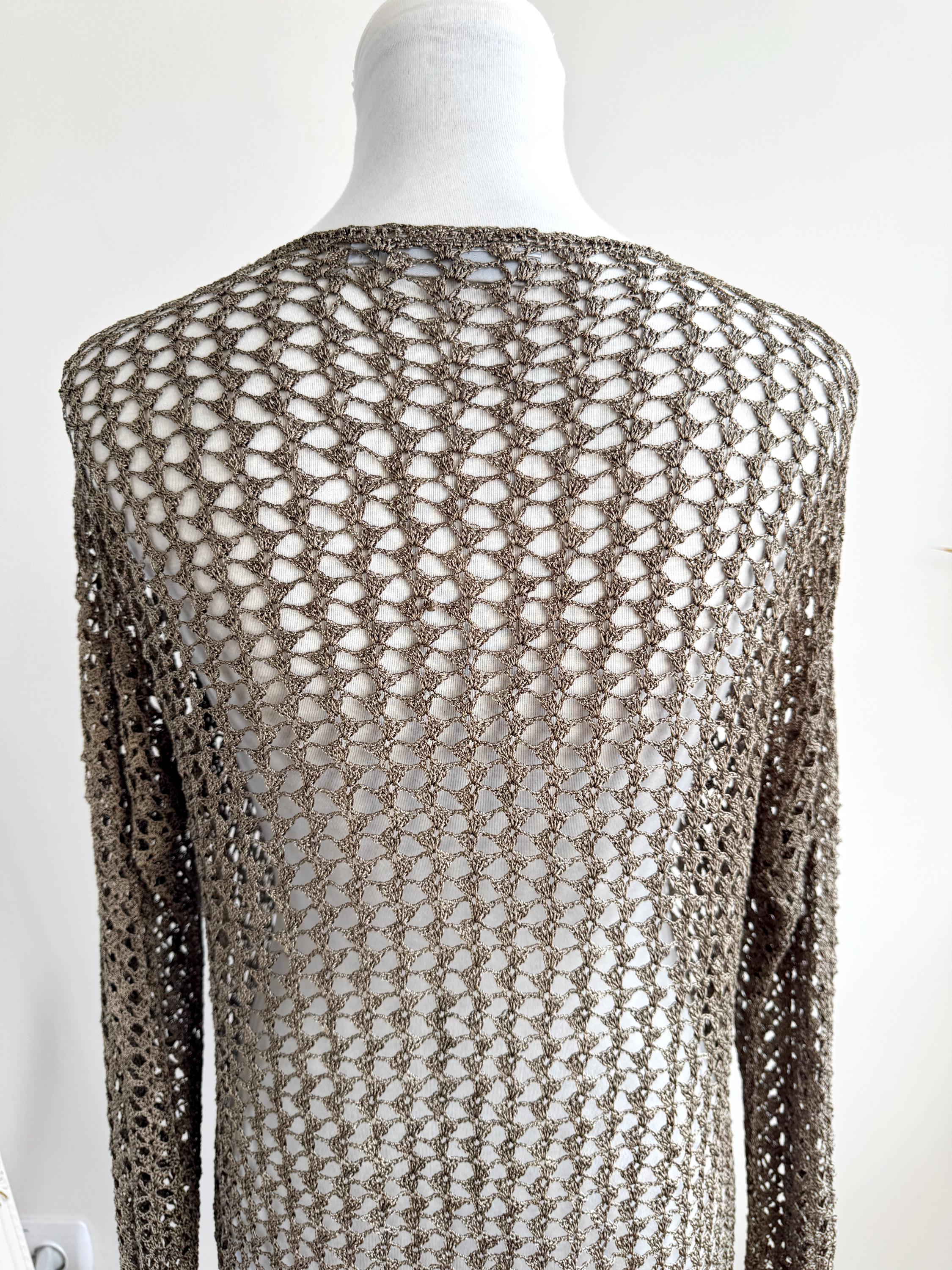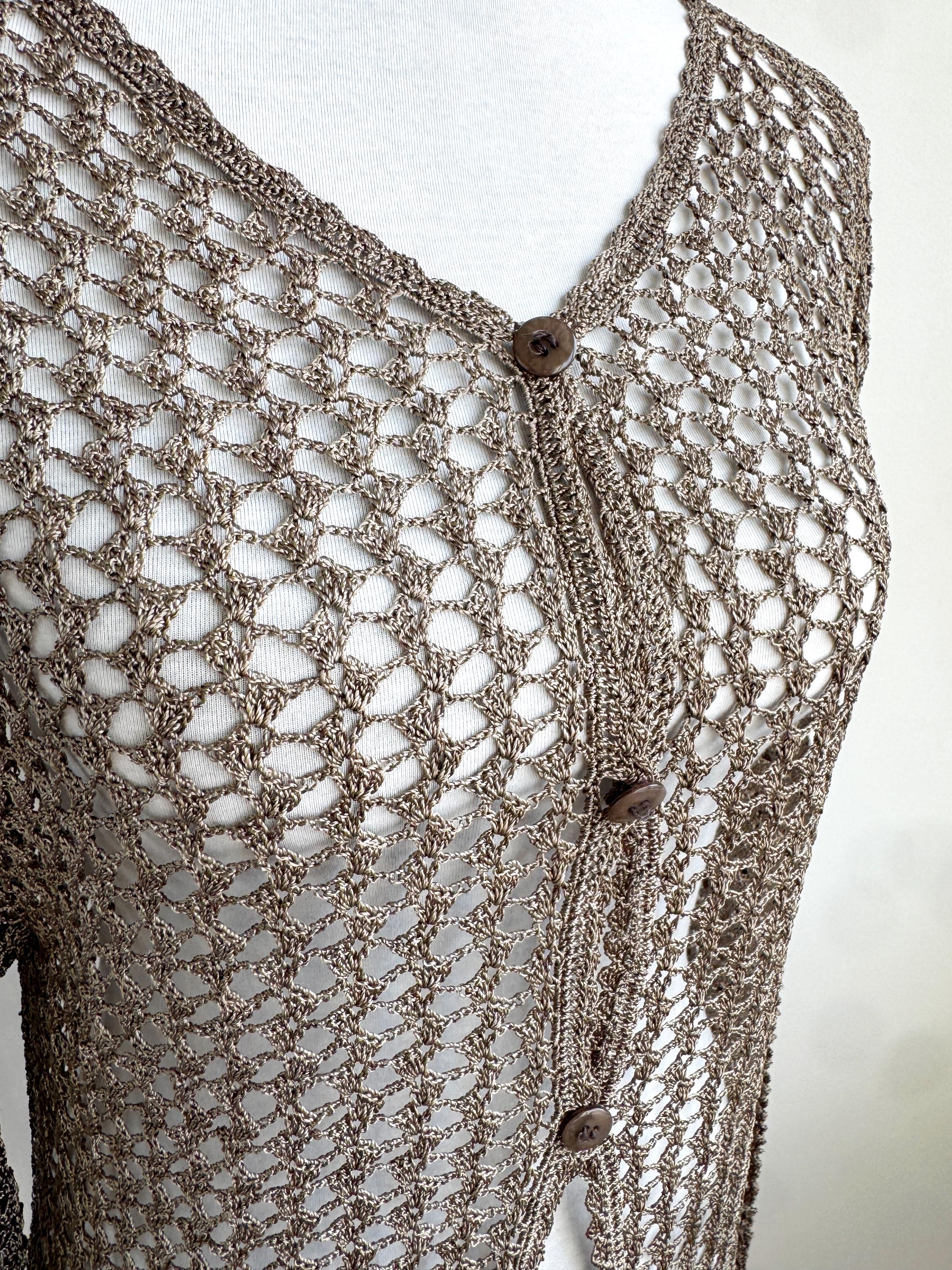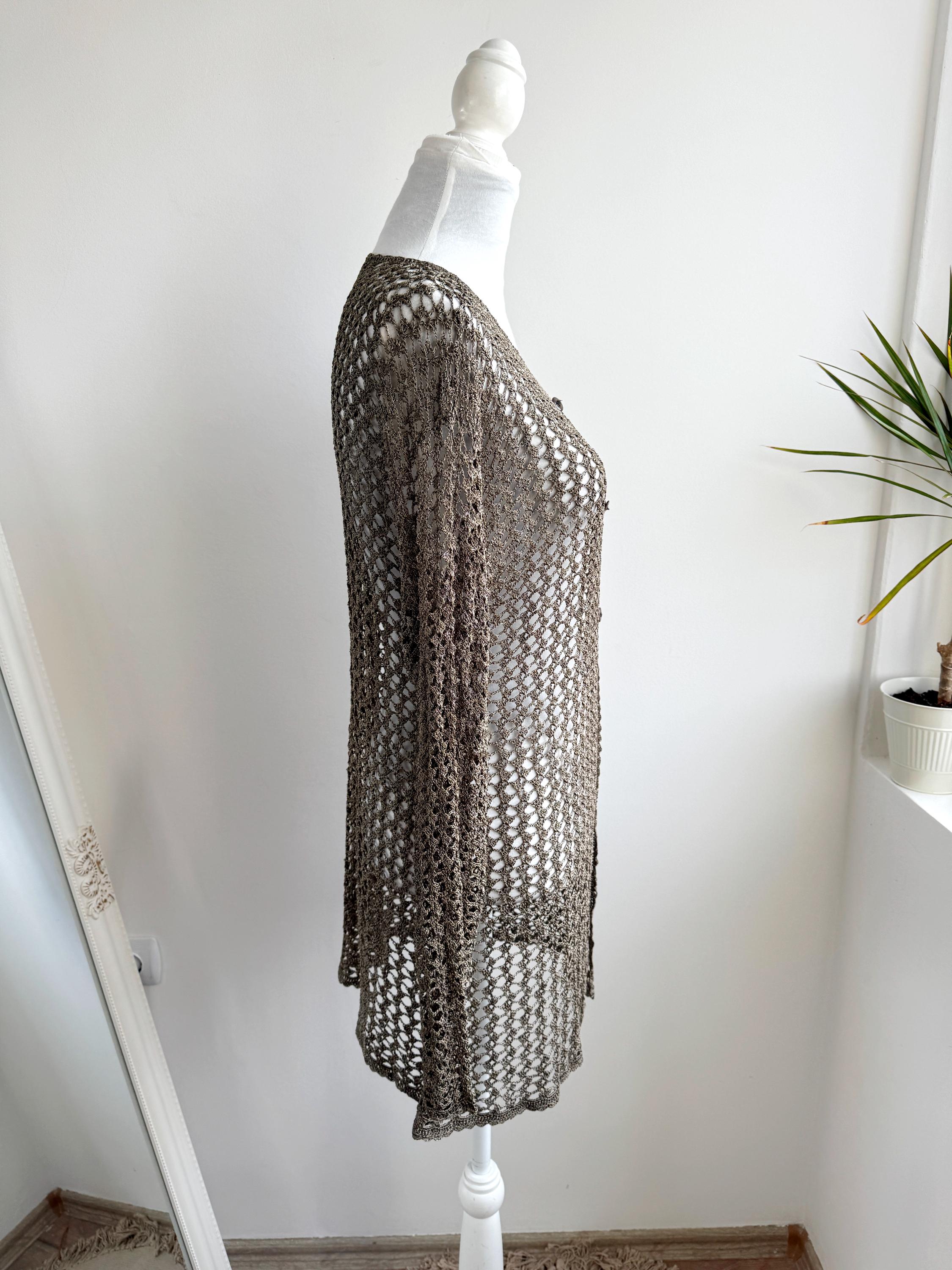 Beautiful vintage Y2K khaki crochet carding with long sleeves and button front closure by Millenium size XL made of 100% viscose fabric with beautiful silky shine.