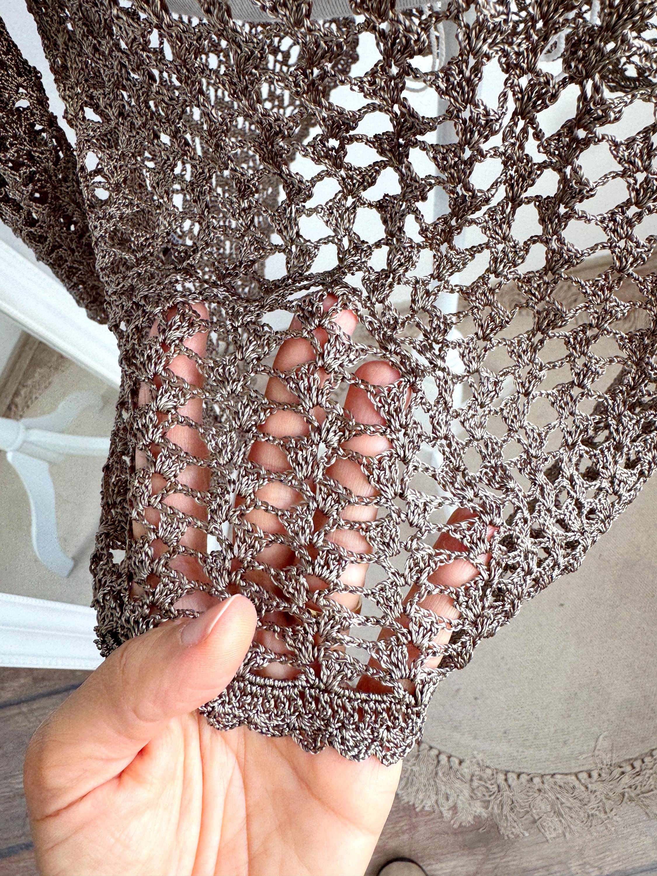 ✨ Condition: Excellent vintage condition. The crochet knit is fully intact with all buttons present. Shows minimal signs of wear - the only thing I spotted is a slight discoloration of the crochet thread at the back, as shown in the last photo.