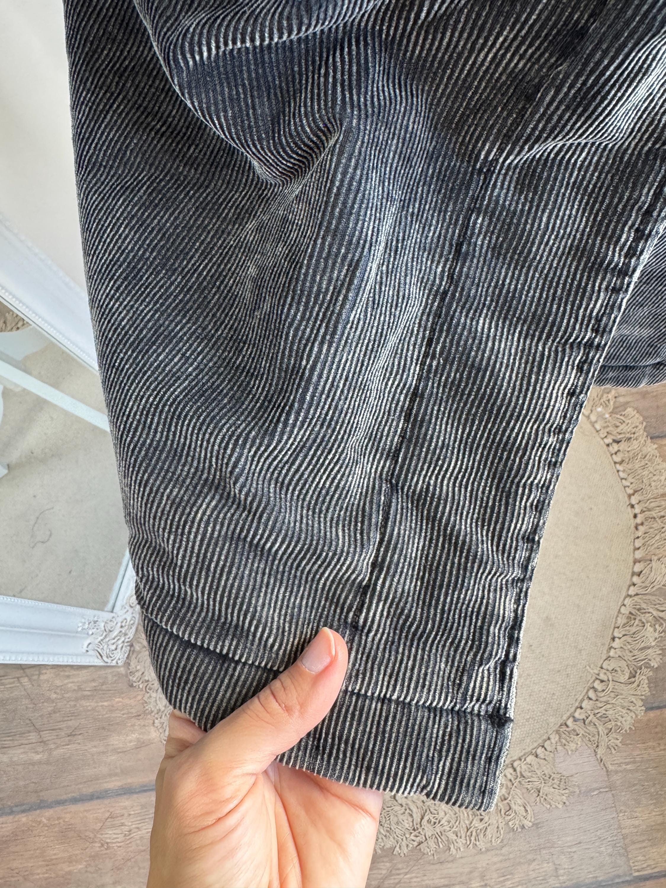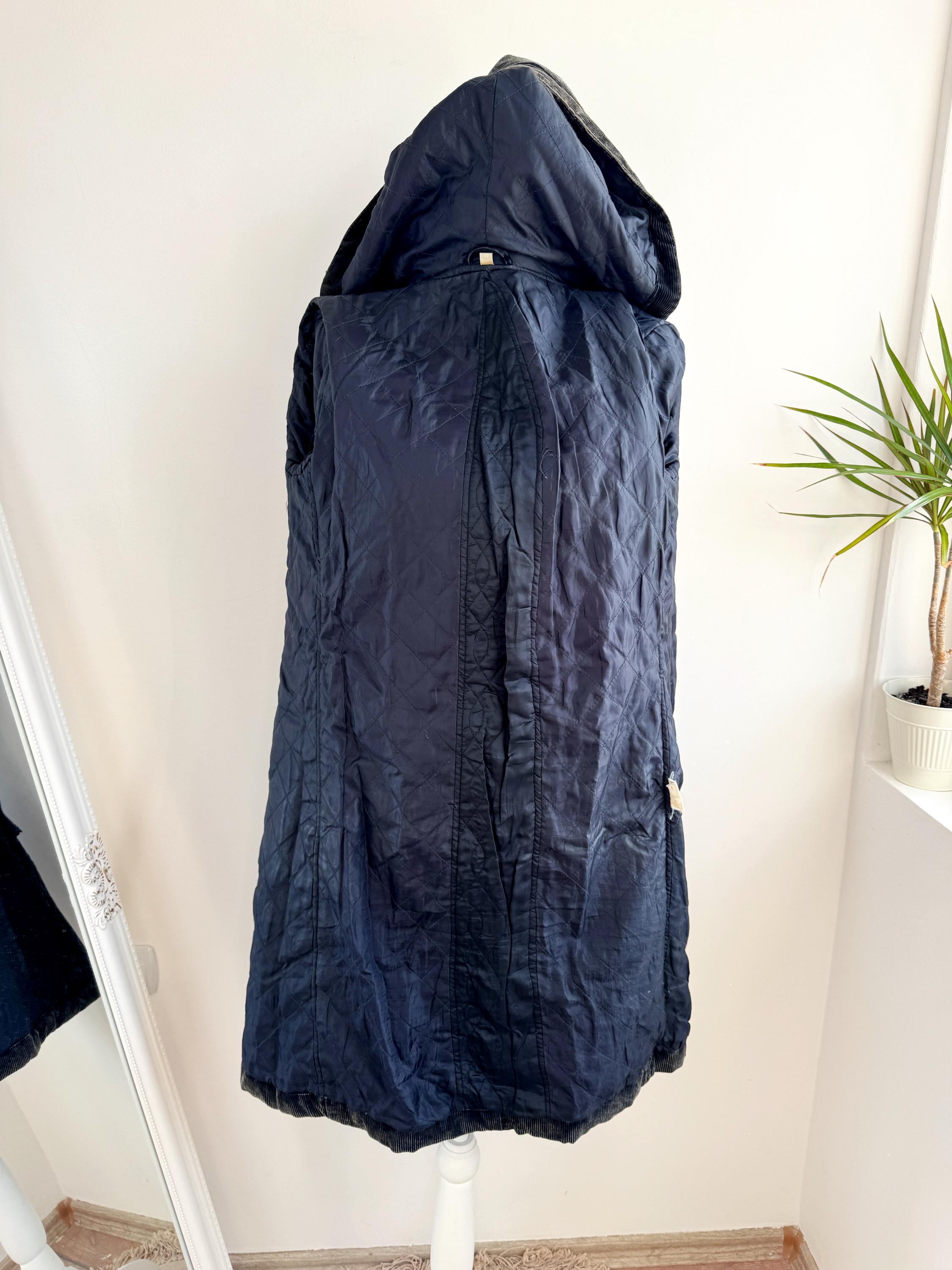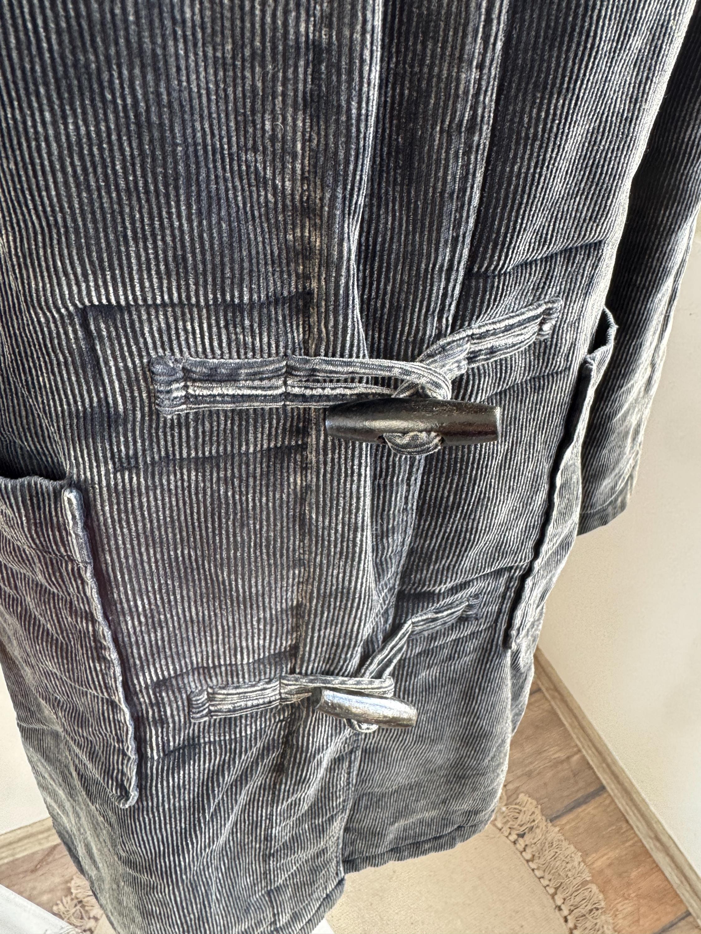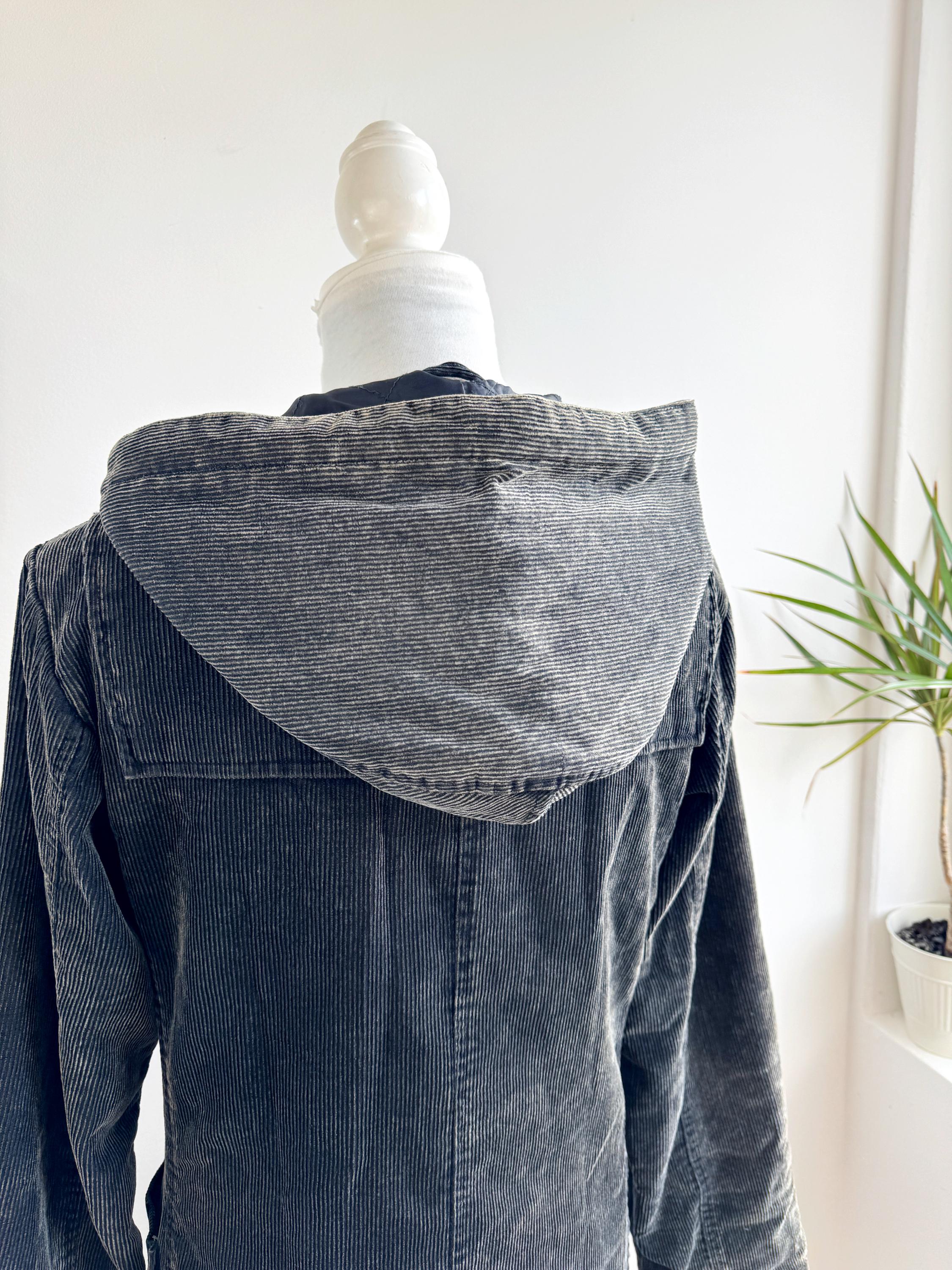 Vintage 90s washed black thin cord corduroy duffle jacket made of 100% cotton fabric with zipper and toggle closure and pockets, quilted lining for extra warmth size EUR 34, fits like S.