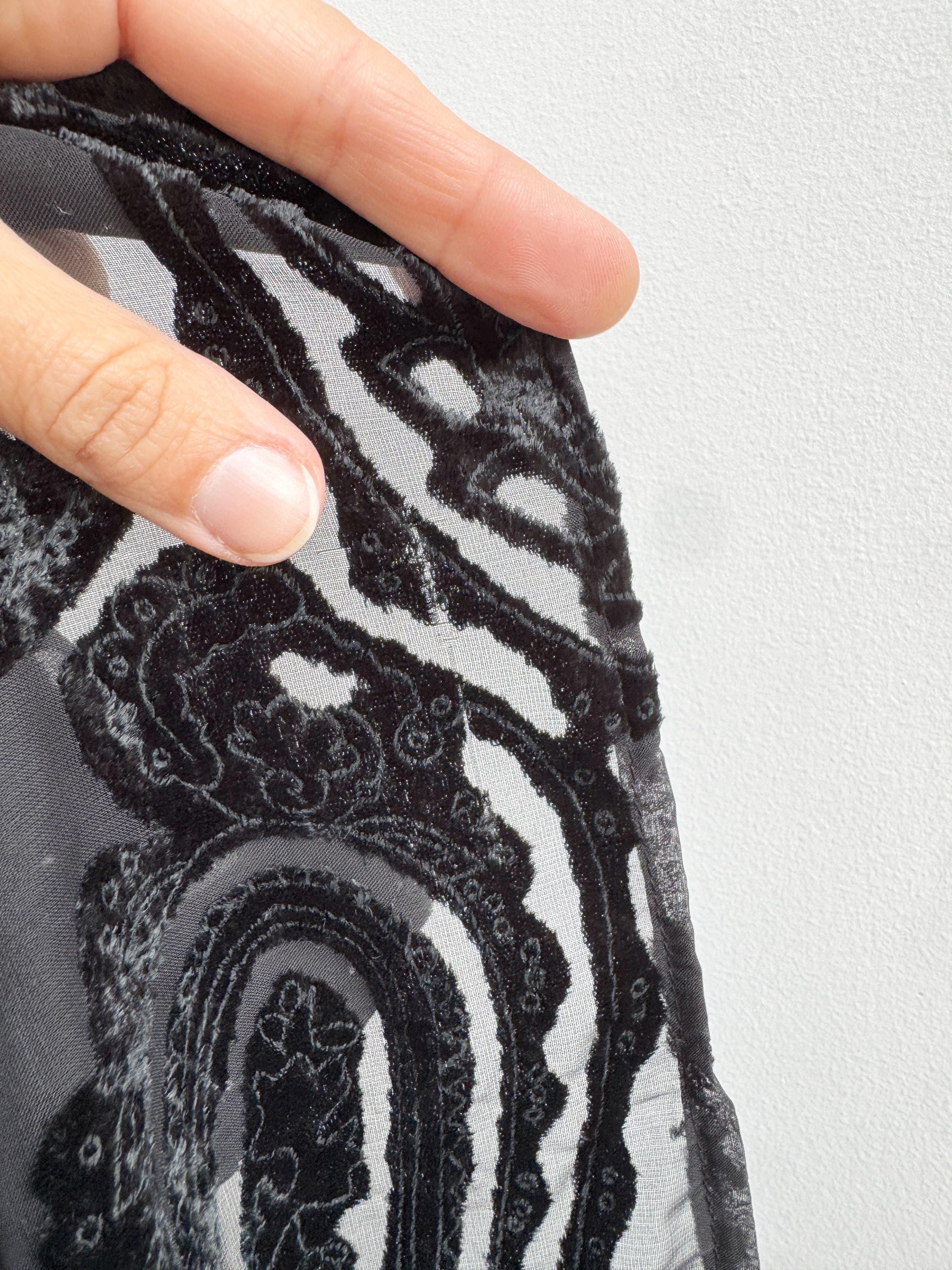 🧵 Material: Velvet flocking on a synthetic sheer fabric base (Burnout/Devoré technique).