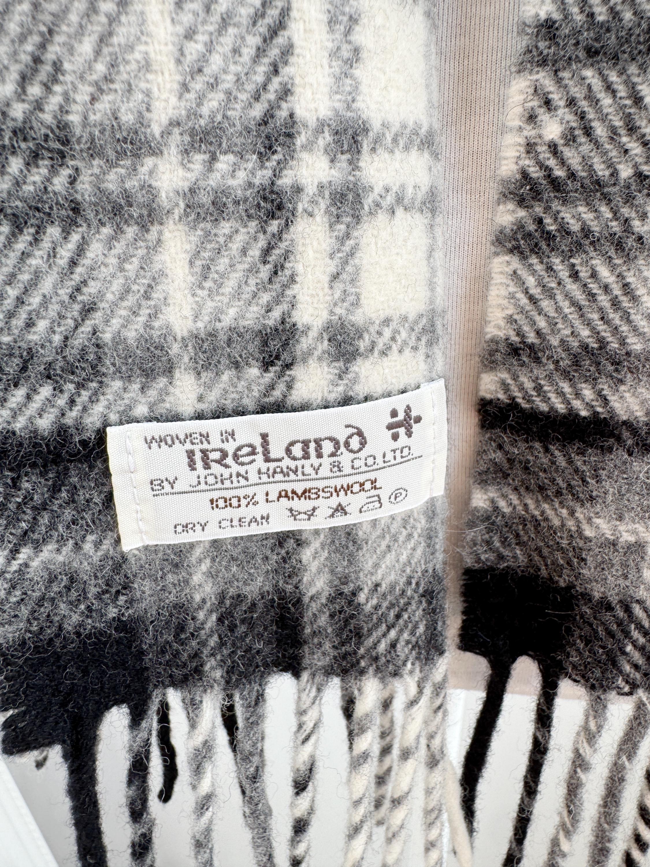 Stay warm in genuine Irish style with this luxurious vintage John Hanly & Co 100% lambswool scarf. Woven in Ireland by the renowned John Hanly & Co. Ltd., this scarf offers exceptional warmth and softness, crafted from 100% pure lambswool.